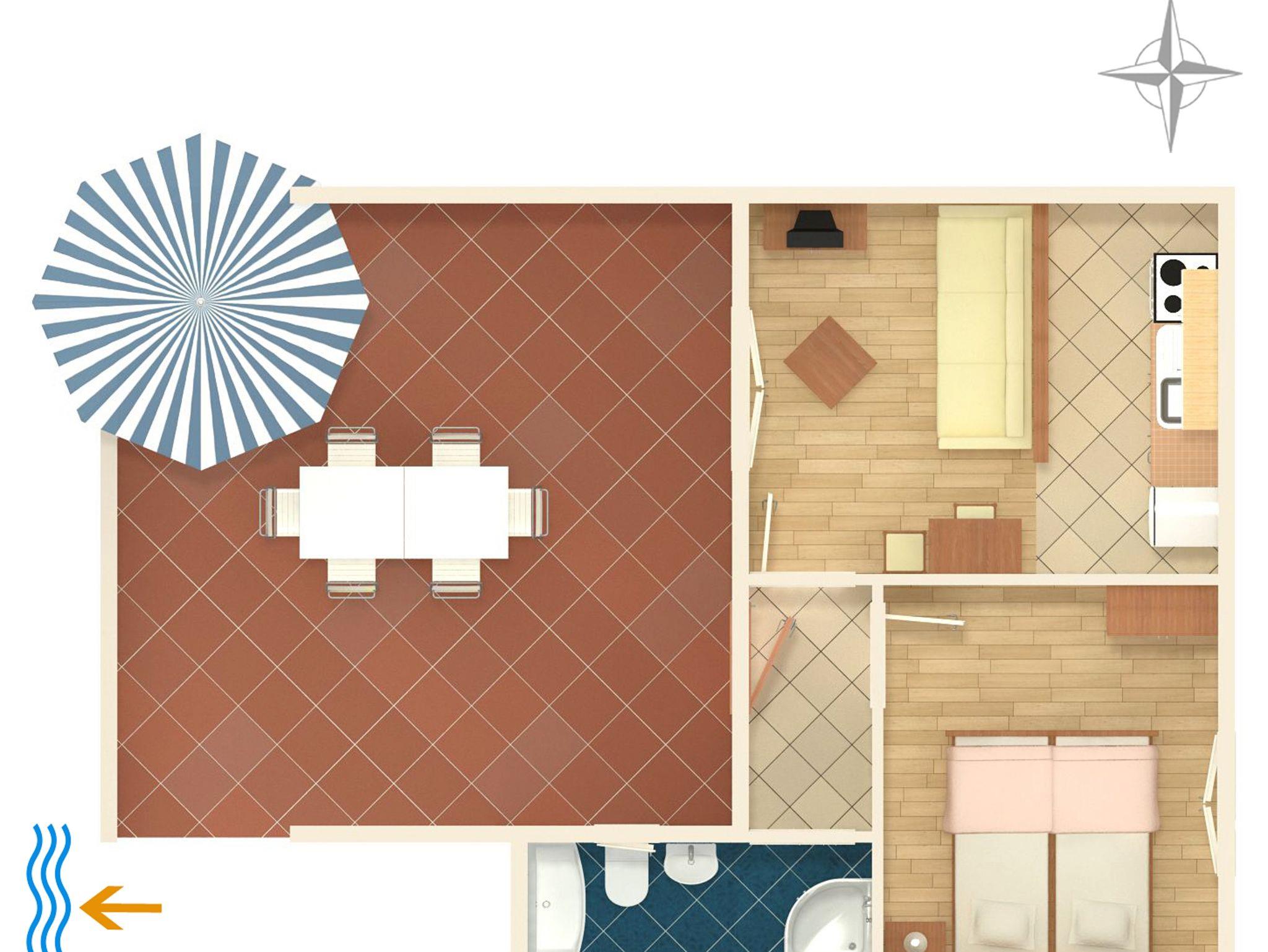 Ferienwohnung bietet Platz für 3 Gäste. Die Betten sind in Schlafzimmern, die es 1 gibt, und in Wohnzimmer, innerhalb einer Gesamtfläche von 27m2, angeordnet. Die Gäste haben eine eigene Terrasse zur Verfügung, auf der sie in warmen Sommernächten genießen können. Das Apartment bietet Meerblick. Es ist erlaubt, Speisen auf dem Gemeinschafts-Grill vorzubereiten. In der Unterkunftseinheit besteht die Möglichkeit des Mitbringens von Haustieren gegen Aufpreis. IM PREIS INBEGRIFFEN: Kurtaxe, Endreinigung, Parkplatz, Internet, Bügeleisen, Bügelbrett, Föhn, tragbarer Grill. UNVERBINDLICHE ZUSÄTZLICHE KOSTEN: Klimatisierung (7,00 € pro Nacht), Haustiere (7,00 € pro Nacht). Die Verfügbarkeit zusätzlicher Dienstleistungen in Ihrem reservierten Termin und die Preise derselben (falls nicht aufgeführt) müssen im Voraus überprüft werden. Zusätzliche Dienstleistungen die in der Zahlungsaufforderung nicht aufgeführt sind werden direkt beim Vermieter bezahlt, angenommen der Gast nutzt auch diese. Ermäßigung auf den Grundpreis: Gratistag 14=13 (bei einem Aufenthalt von 14 Tagen oder mehr erhalten Sie einen Gratistag für den Aufenthalt bis 31.12.26).