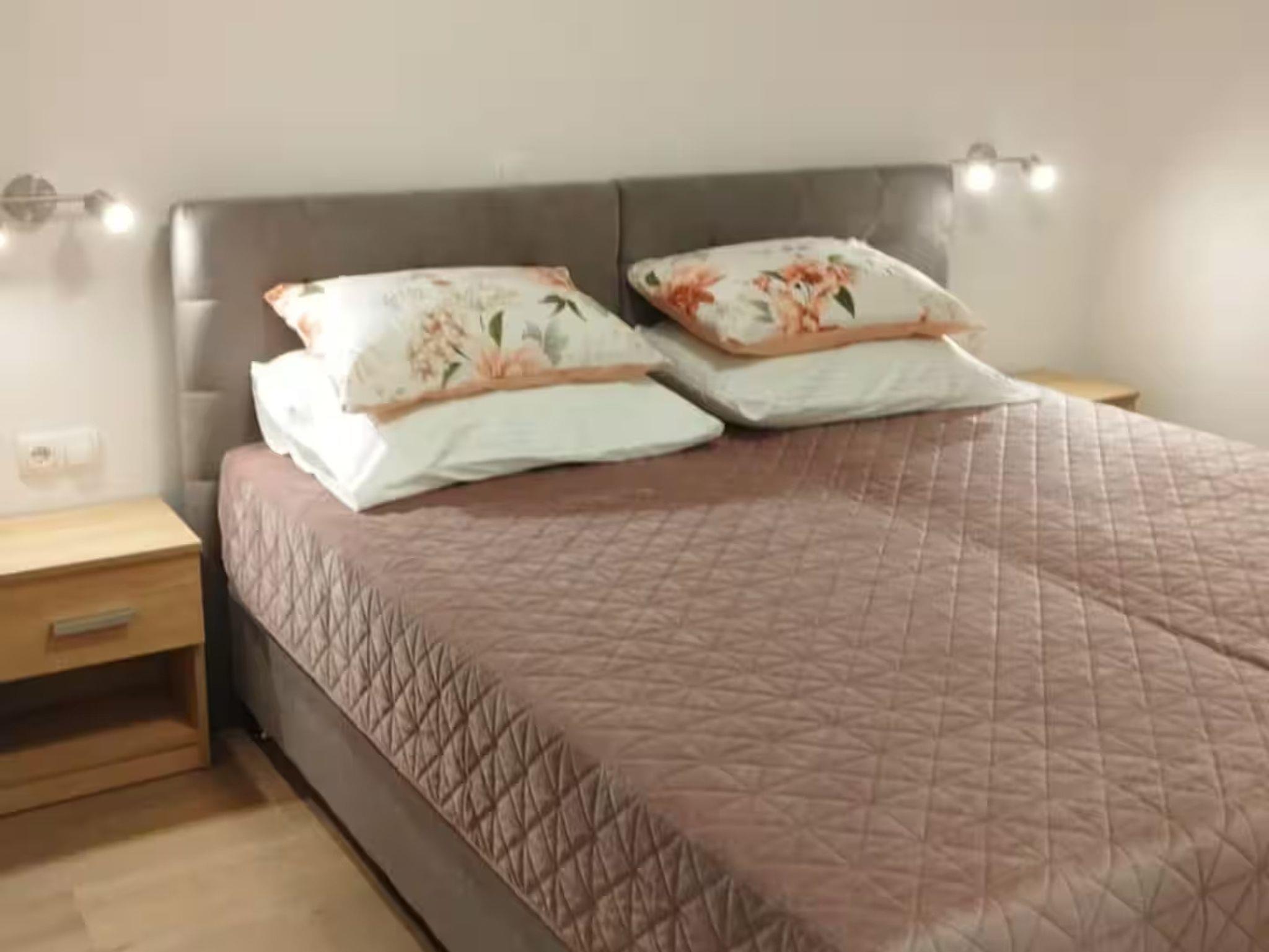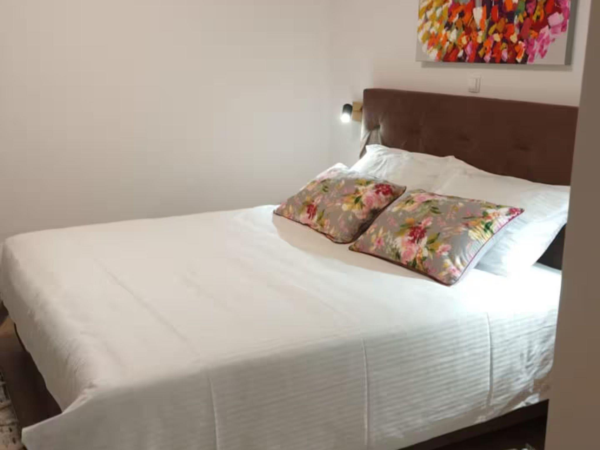 Ferienwohnung bietet Platz für 6 Gäste. Die Betten sind in Schlafzimmern, die es 2 gibt, und in Wohnzimmer, innerhalb einer Gesamtfläche von 71m2, angeordnet. Es ist erlaubt, Speisen auf dem Gemeinschafts-Grill vorzubereiten. Die reservierte Unterkunftseinheit hat keinen Balkon und keine Terrasse. IM PREIS INBEGRIFFEN: Kurtaxe, Endreinigung, Klimatisierung, Parkplatz, Internet, Kinderbett, Bügeleisen, Bügelbrett, Föhn. VERBINDLICHE ZUSÄTZLICHE KOSTEN: Aufzahlung für Kurzaufenthalte (prozentualer Zuschlag pro Nächtigungsanzahl: 30% - 1, 20% - 2, 10% - 3). UNVERBINDLICHE ZUSÄTZLICHE KOSTEN: Zusatzbett (30,00 € pro Nacht). Die Verfügbarkeit zusätzlicher Dienstleistungen in Ihrem reservierten Termin und die Preise derselben (falls nicht aufgeführt) müssen im Voraus überprüft werden. Zusätzliche Dienstleistungen die in der Zahlungsaufforderung nicht aufgeführt sind werden direkt beim Vermieter bezahlt, angenommen der Gast nutzt auch diese.