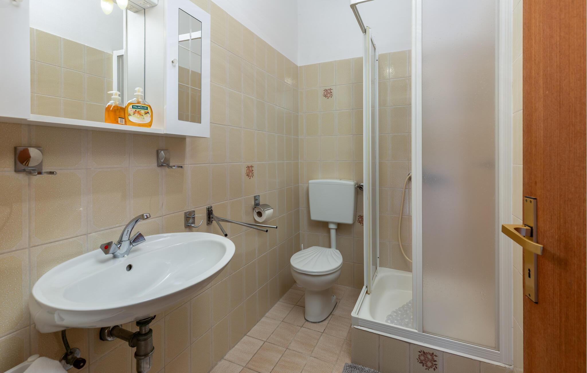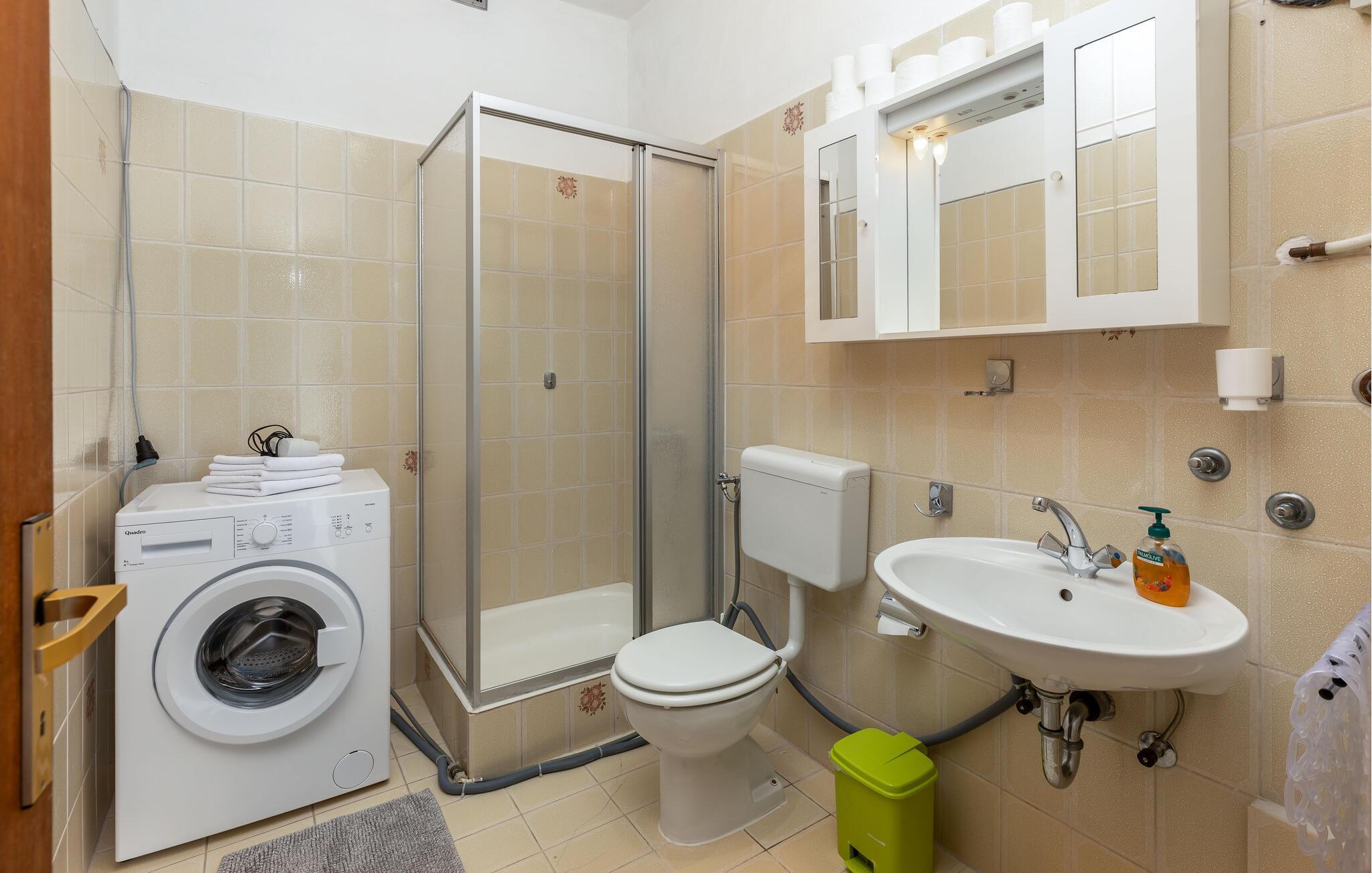 Denne idylliske leiligheten på øya Rab er det ideelle tilfluktsstedet for en pause fra hverdagen. En lys stue med spisebord og et funksjonelt kjøkken inviterer deg til å føle deg som hjemme. Enten du lytter til favorittmusikken din, prater med venner og familie eller tilbereder deilige måltider sammen, kan du bestemme tempoet på dagen her.