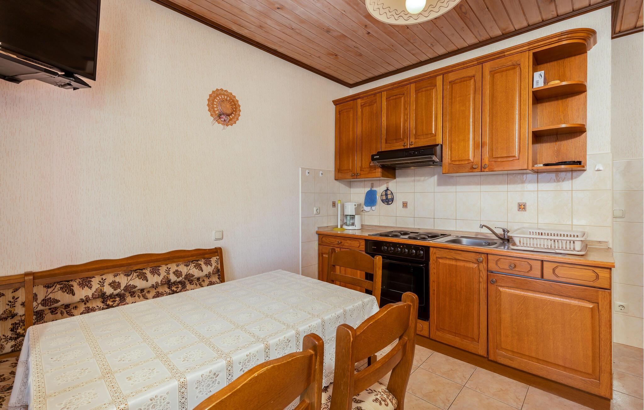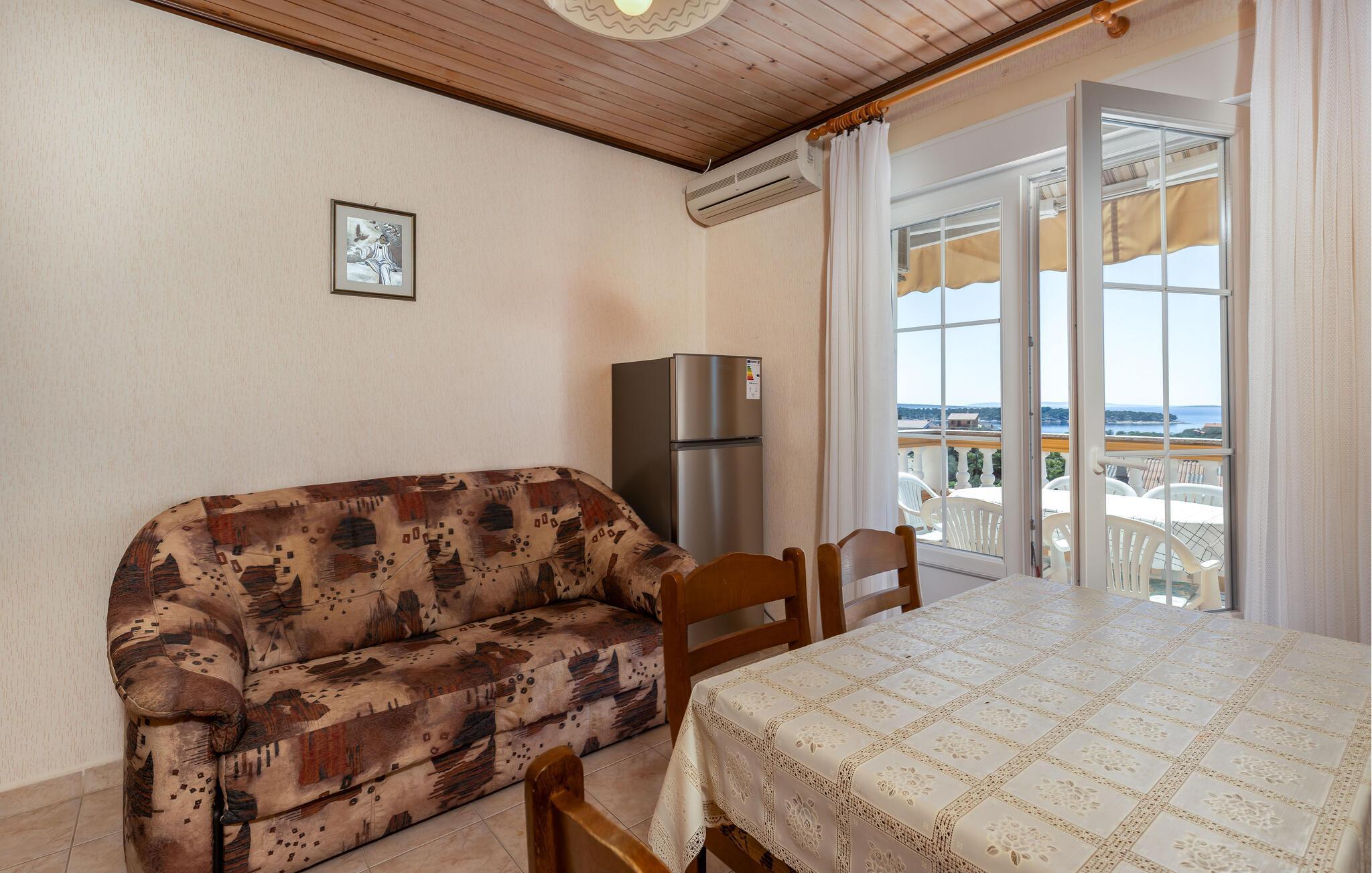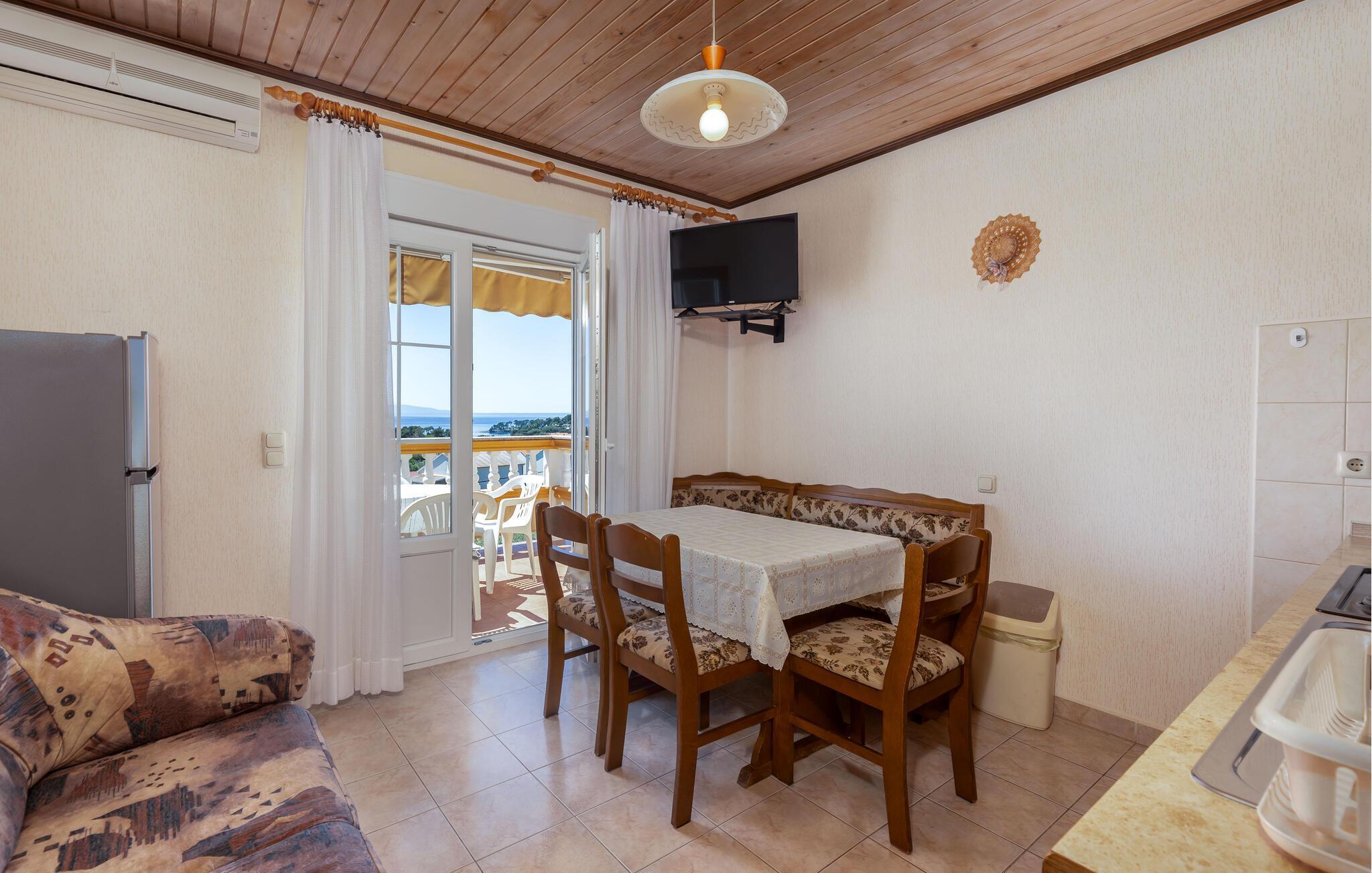 Denne pent møblerte ferieleiligheten i andre etasje i et velholdt familiehus er det ideelle stedet for en avslappende ferie på øya Rab. Den imponerer med sin utsikt, rolige beliggenhet og nærhet til kysten og naturen. Tilbring oppholdet ditt i denne klassiske ferieleiligheten med åpen kjøkkenløsning og koselig spiseplass. Tilbered måltidene dine i den vakre kjøkkenkroken og nyt havutsikten fra spisebordet. Slapp av i sofaen eller se en god film etter en begivenhetsrik dag.