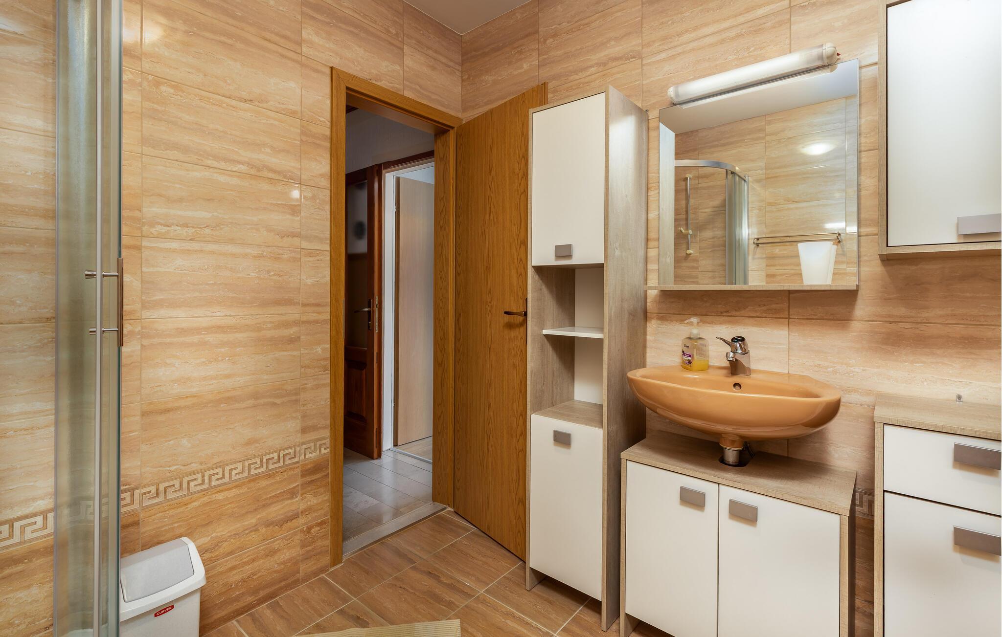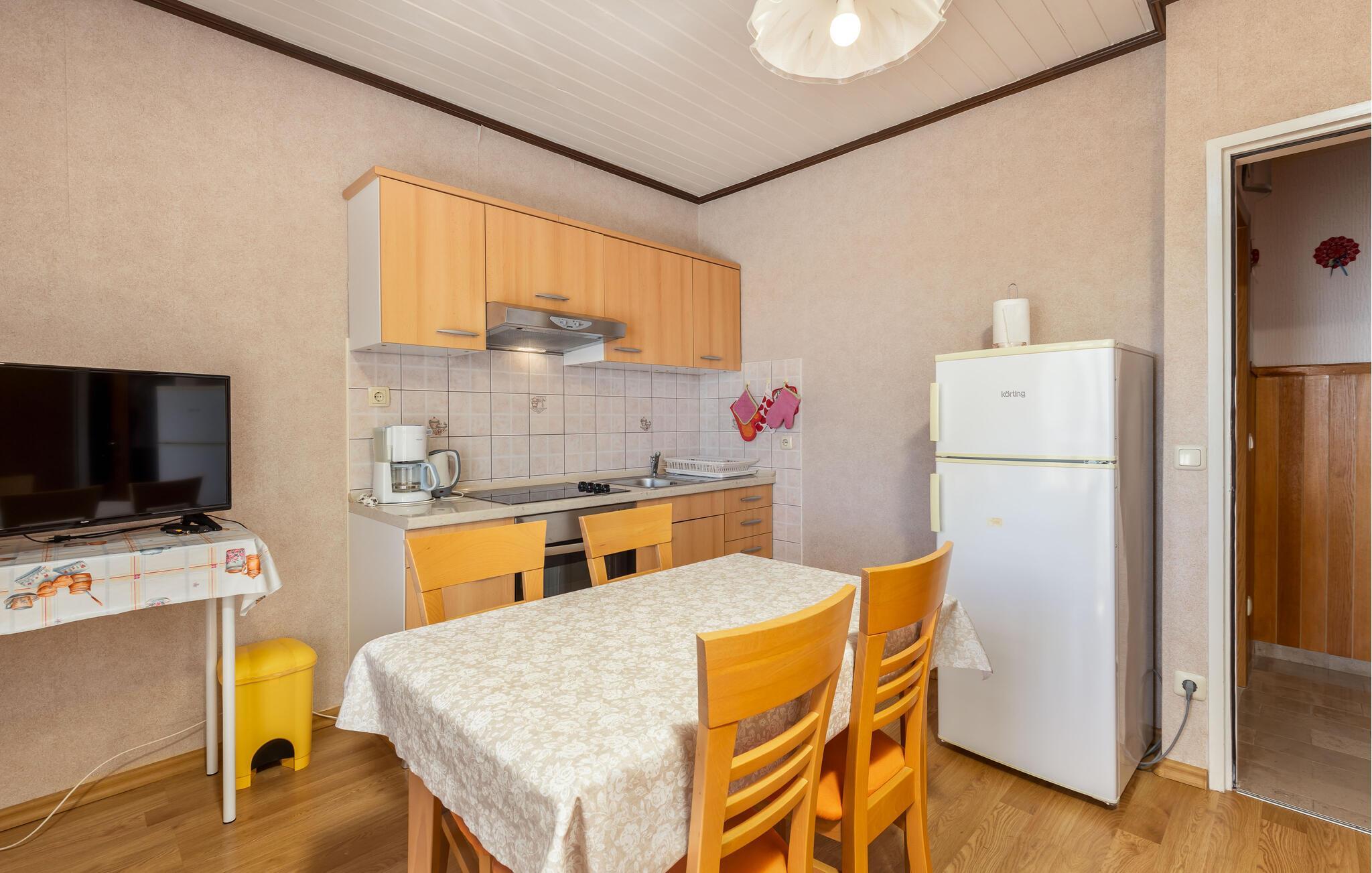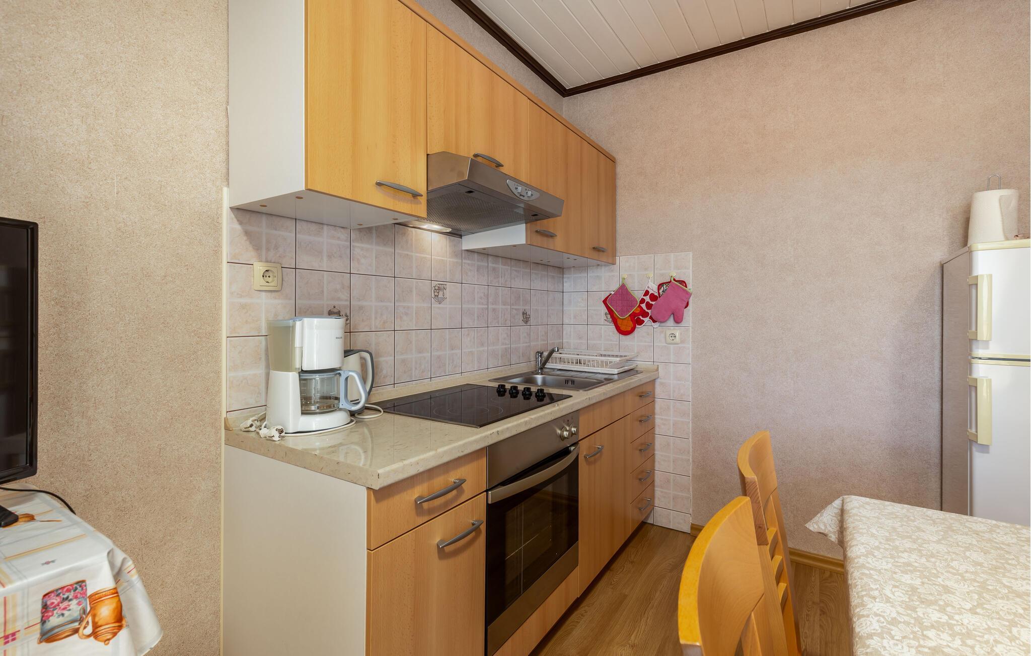 Denne vennlig møblerte ferieleiligheten i andre etasje i et velholdt familiehus er det ideelle stedet for en avslappende ferie for to på øya Rab. Den imponerer med sin utsikt, rolige beliggenhet og nærhet til kysten og naturen. Tilbring oppholdet i denne klassiske ferieleiligheten med åpen kjøkkenløsning og koselig spiseplass. Tilbered måltidene dine i den vakre kjøkkenkroken og nyt havutsikten fra spisebordet eller se en god film etter en begivenhetsrik dag.