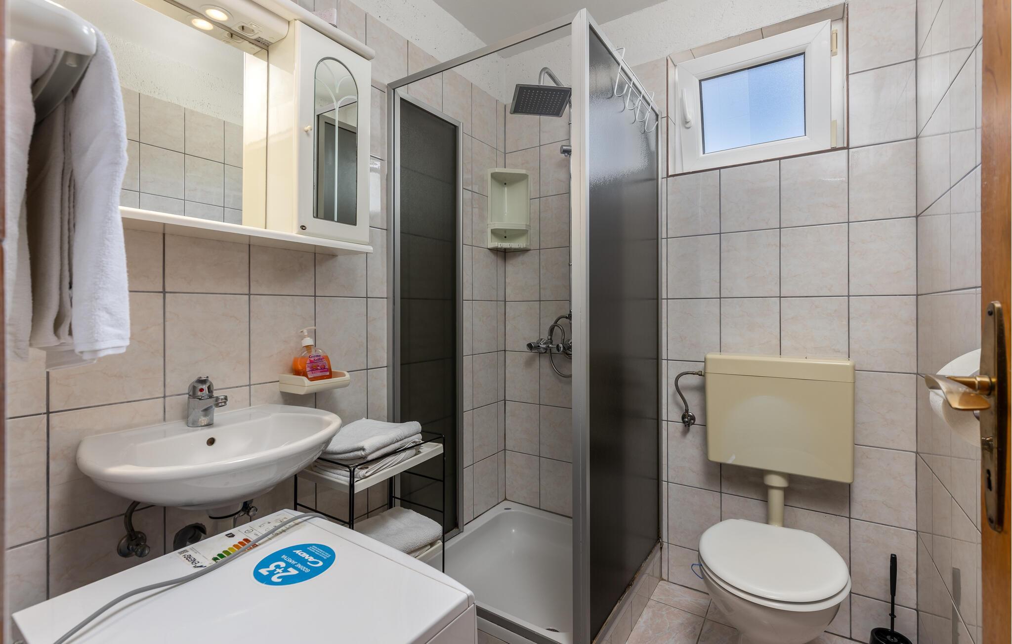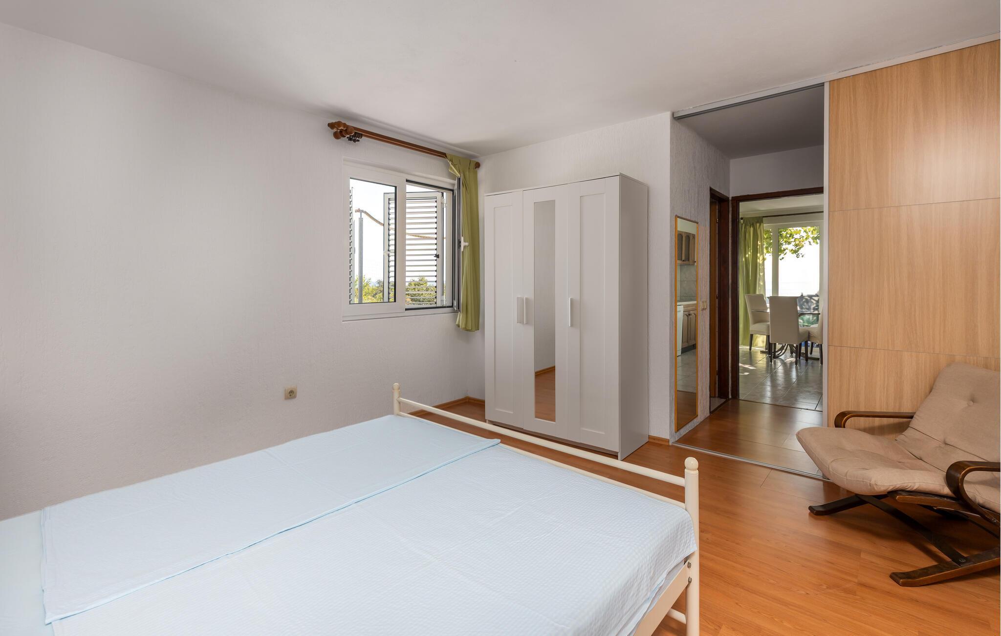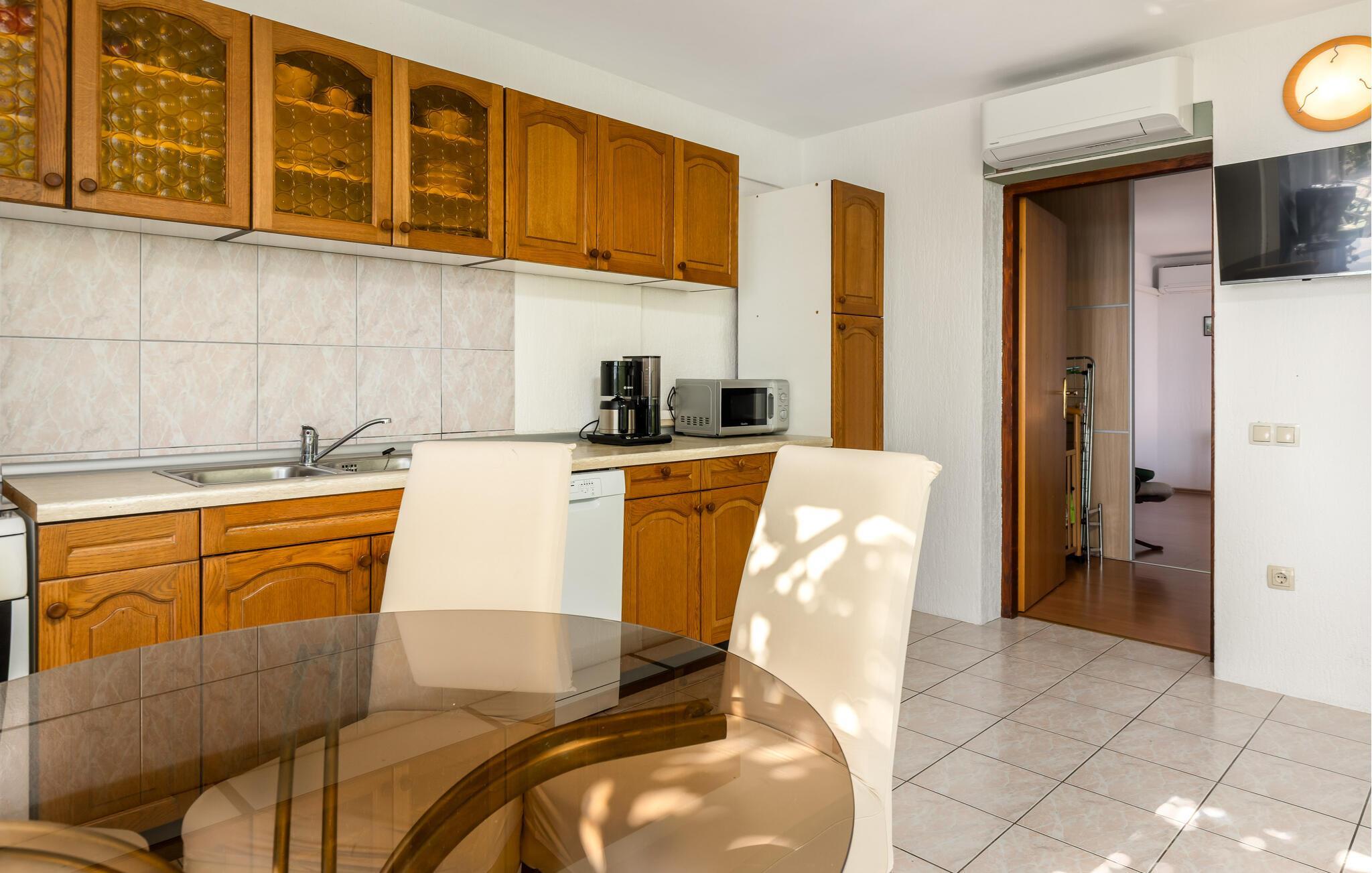 Denne leiligheten ligger pittoresk til på øya Rab, og er perfekt for et avbrekk fra hverdagen. Slapp av med en kopp kaffe i den vakre stuen, hvor det strømmer inn mye lys gjennom de store vinduene. Legg planer for dagen som kommer, eller lag en av favorittmåltidene dine på det praktiske kjøkkenet.