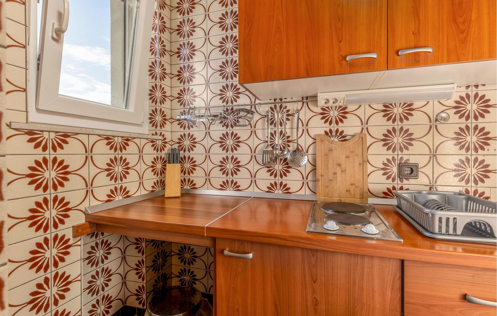 Senk deg ned i det avslappede livet ved Middelhavet og sett deg godt til rette i denne lille, koselige ferieleiligheten med utsikt over vannet. Føl harmonien og samværet mens du tilbereder favorittrettene dine på det velutstyrte kjøkkenet, og planlegg utfluktene dine i den varme atmosfæren i det åpne kjøkkenet. Ta avslappende siestaer, la havbrisen strømme gjennom rommene og slapp av om kvelden med en god bok eller et brettspill.