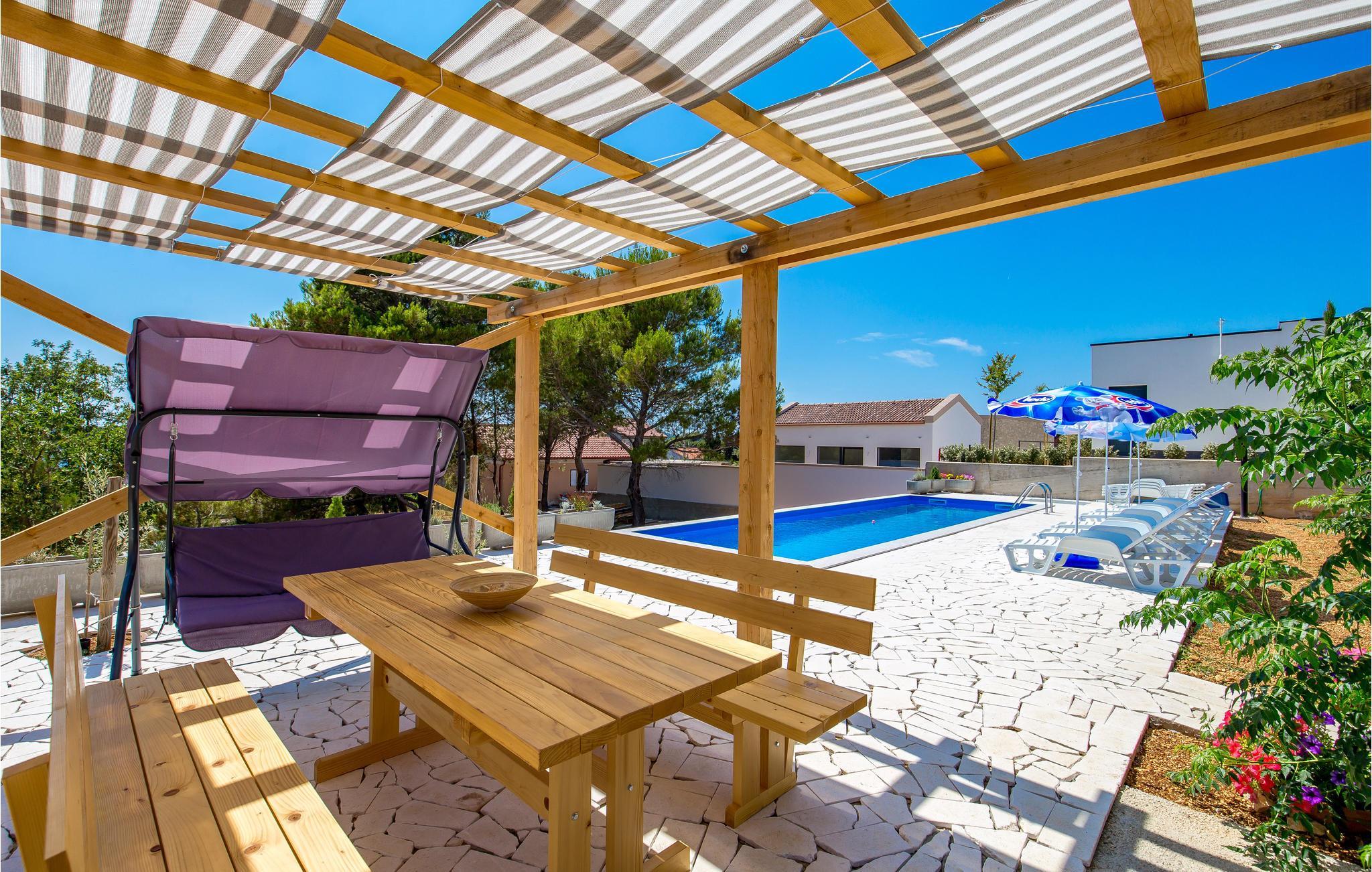 I uteområdene gir trær og den felles paviljongen med grill behagelig skygge, her kan du slappe av fantastisk og, når temperaturene tillater det igjen, tilberede deilige måltider. Utendørsbassenget lover moro og forfriskning for store og små, men du er heller ikke langt fra stranden, så du kan bestemme hver dag om du har lyst på saltvann eller å plaske rundt i bassenget.