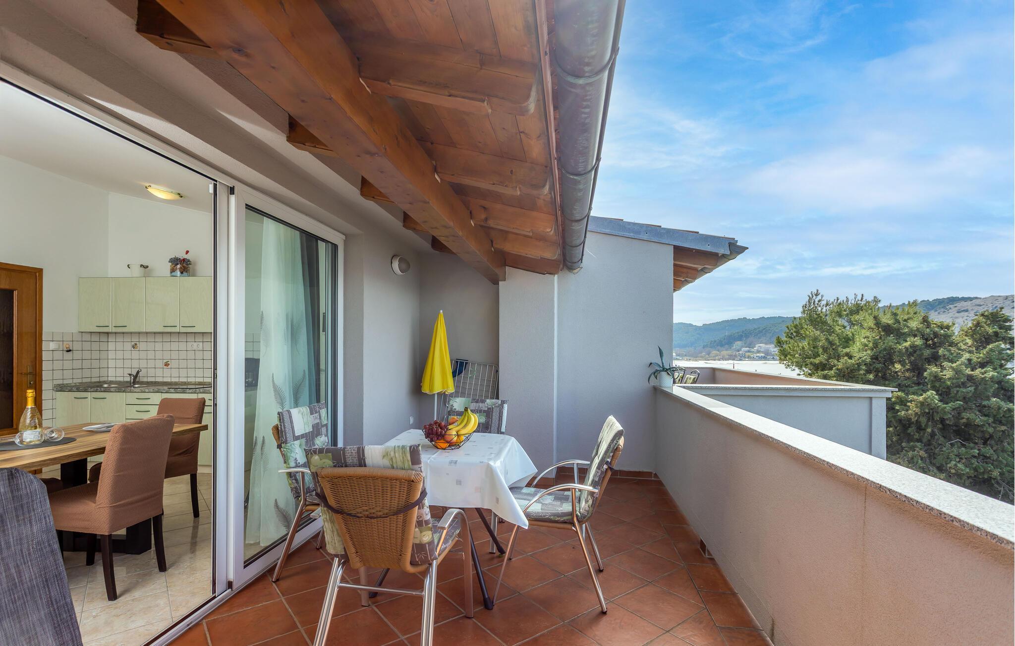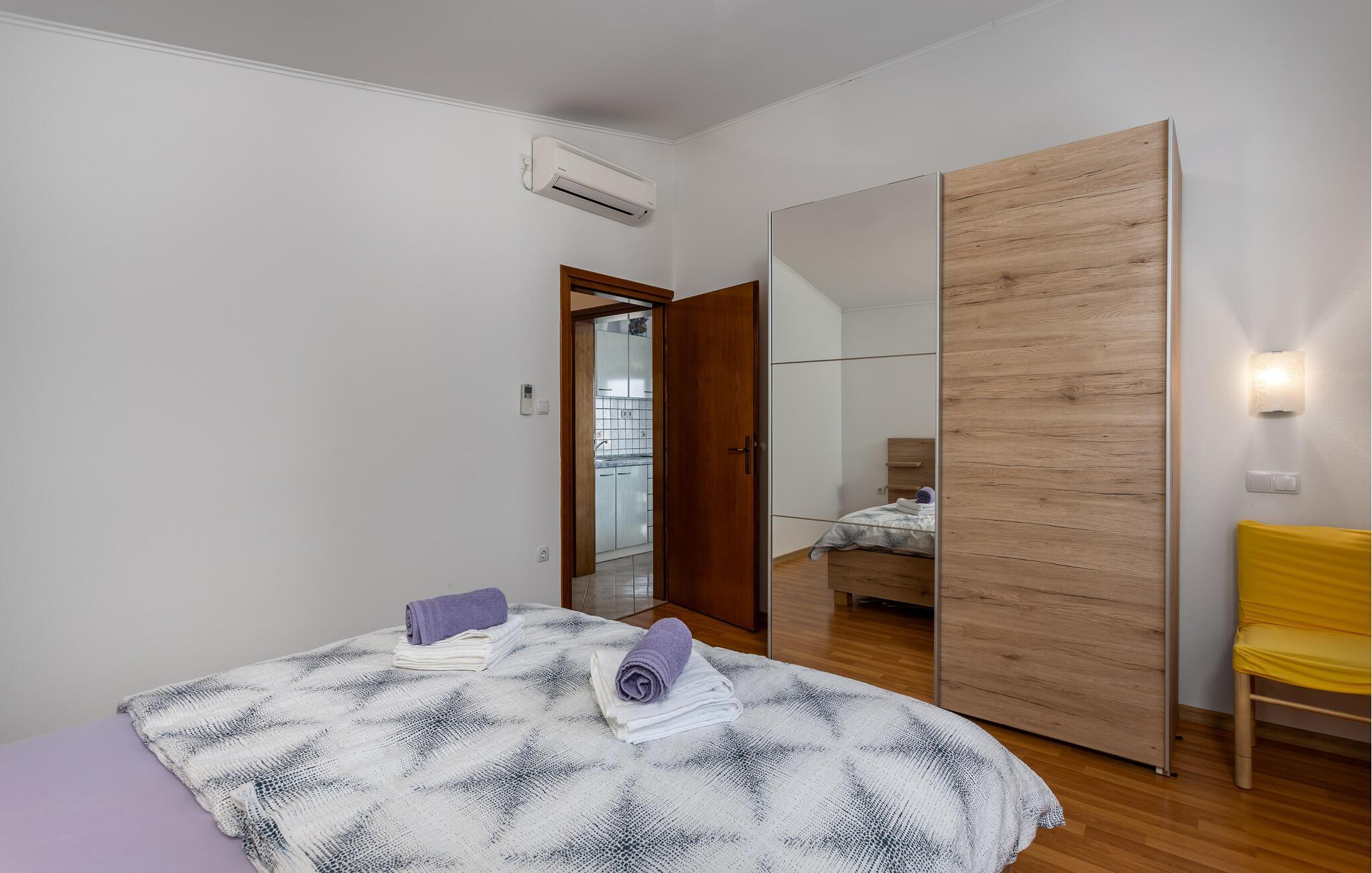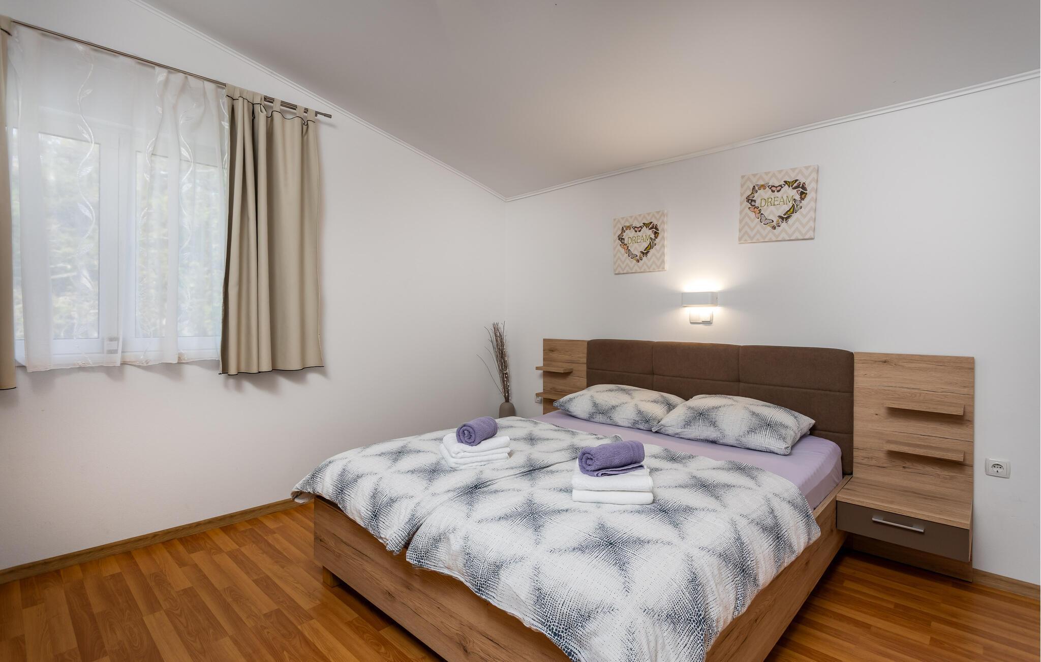 Denne velholdte ferieleiligheten inviterer deg til en avslappende ferie ved Adriaterhavskysten rett ved stranden. Tilbered måltidene dine på det åpne kjøkkenet og nyt dem i den stilfullt møblerte stuen. La den friske havbrisen strømme gjennom rommene, og sett deg godt til rette i den koselige sofaen om kvelden.