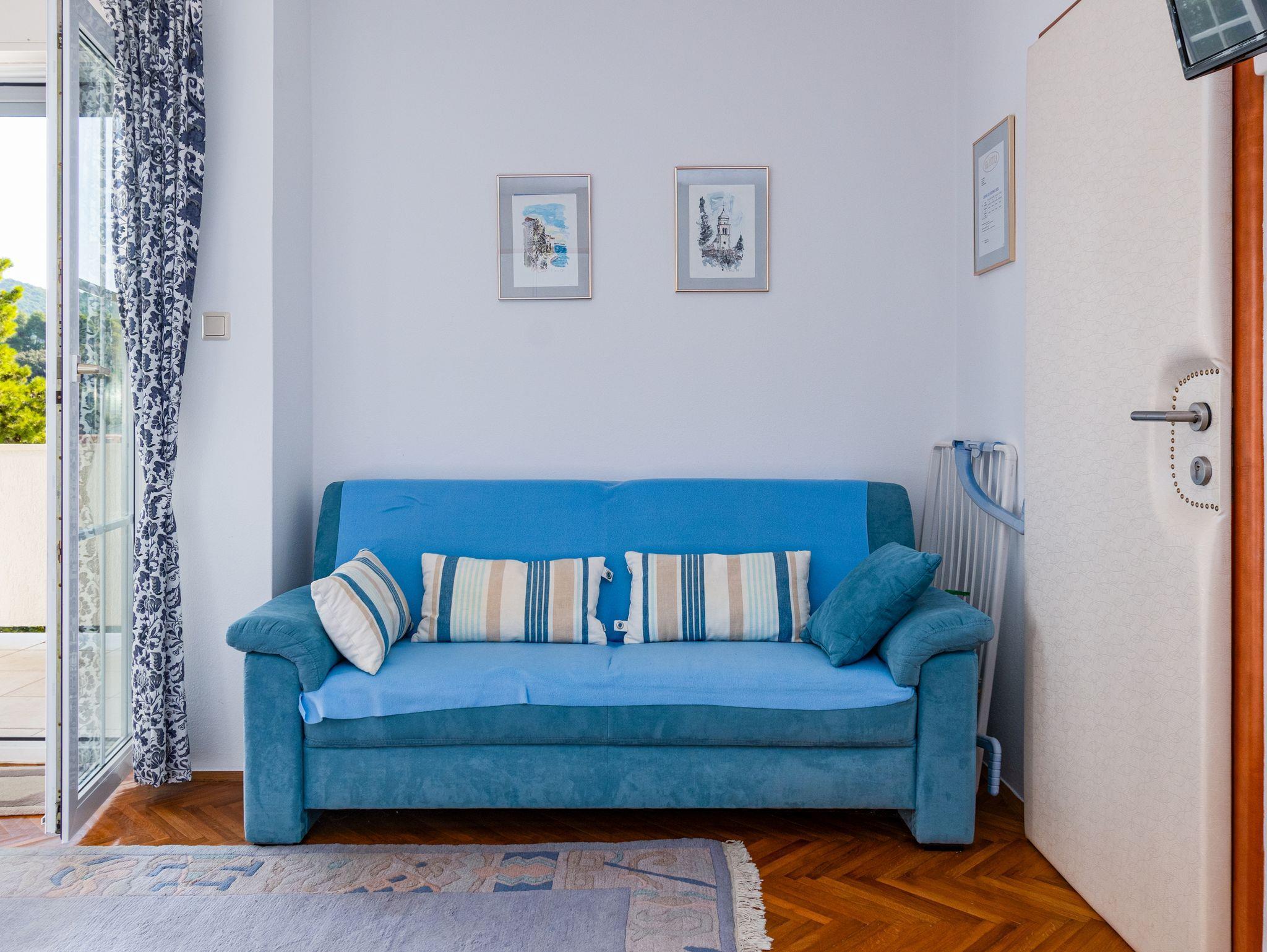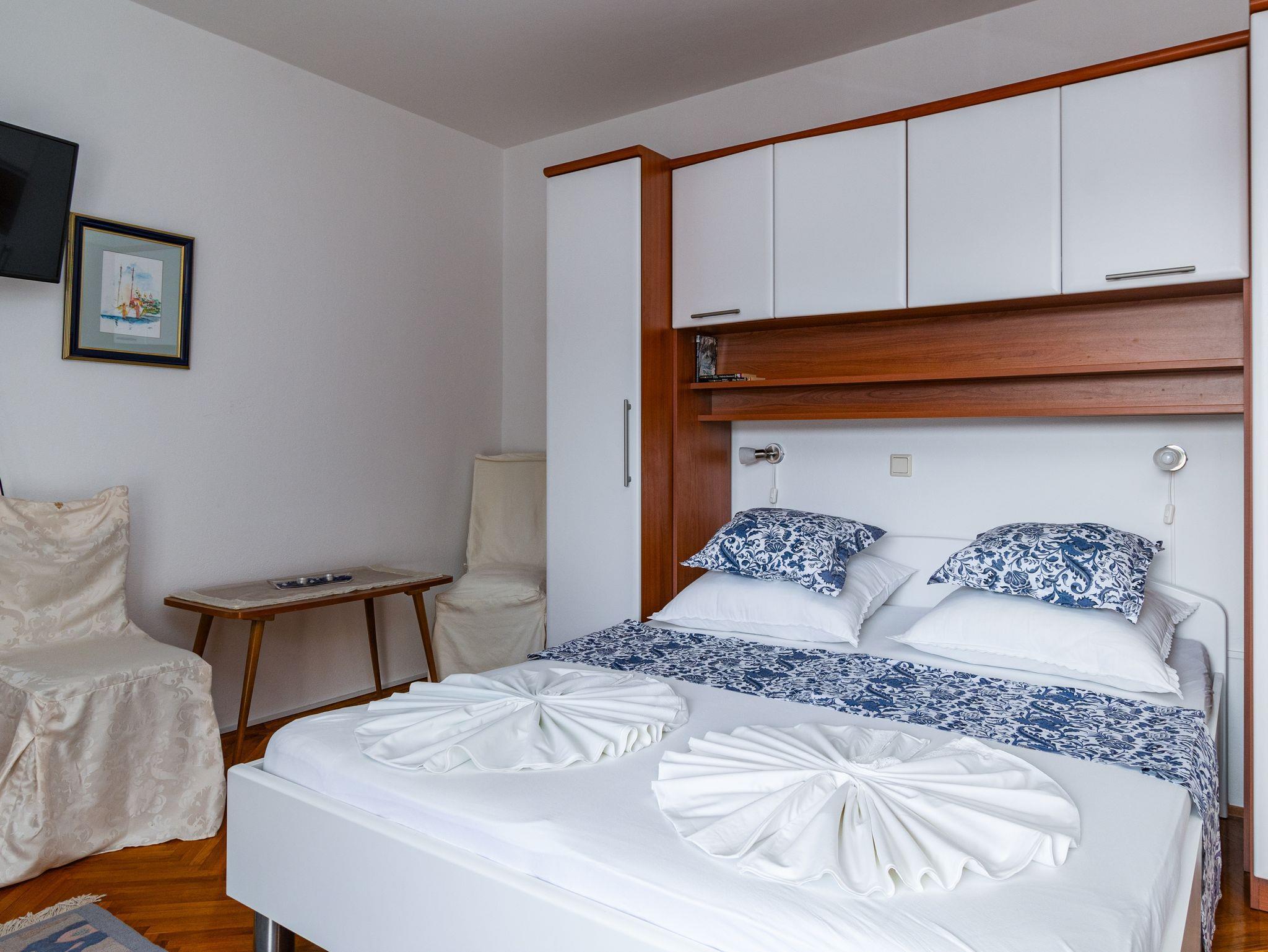 Ferienwohnung bietet Platz für 2 Gäste. Die Betten sind in Schlafzimmern, die es 1 gibt, innerhalb einer Gesamtfläche von 34m2, angeordnet. Die Gäste haben eine eigene Terrasse zur Verfügung, auf der sie in warmen Sommernächten genießen können. Das Apartment bietet Meerblick. Es ist erlaubt, Speisen auf dem Gemeinschafts-Grill vorzubereiten. IM PREIS INBEGRIFFEN: Kurtaxe, Endreinigung, Klimatisierung, Zentralheizung, Parkplatz, Internet, Bügeleisen, Föhn. Die Verfügbarkeit zusätzlicher Dienstleistungen in Ihrem reservierten Termin und die Preise derselben (falls nicht aufgeführt) müssen im Voraus überprüft werden. Zusätzliche Dienstleistungen die in der Zahlungsaufforderung nicht aufgeführt sind werden direkt beim Vermieter bezahlt, angenommen der Gast nutzt auch diese.
