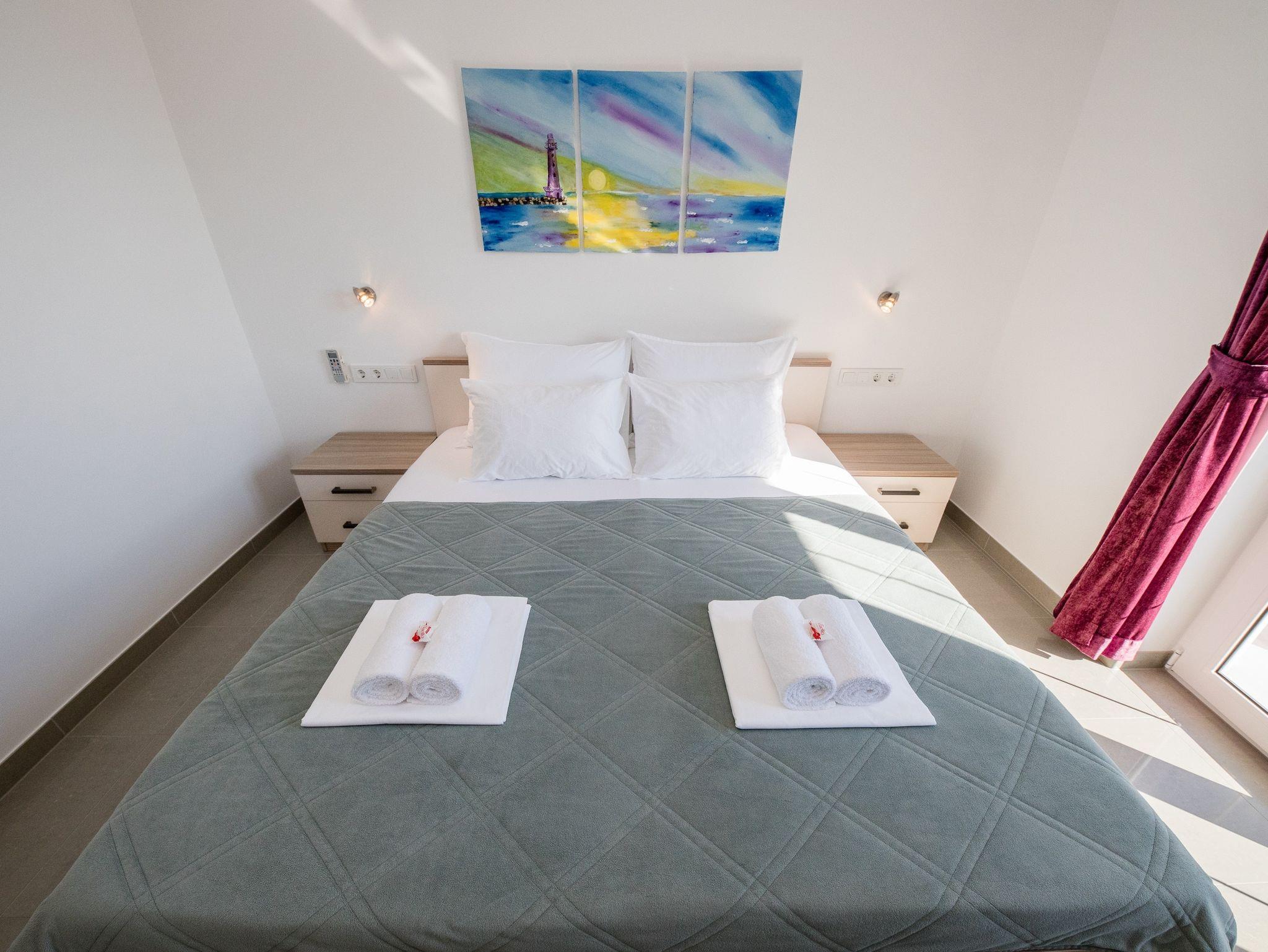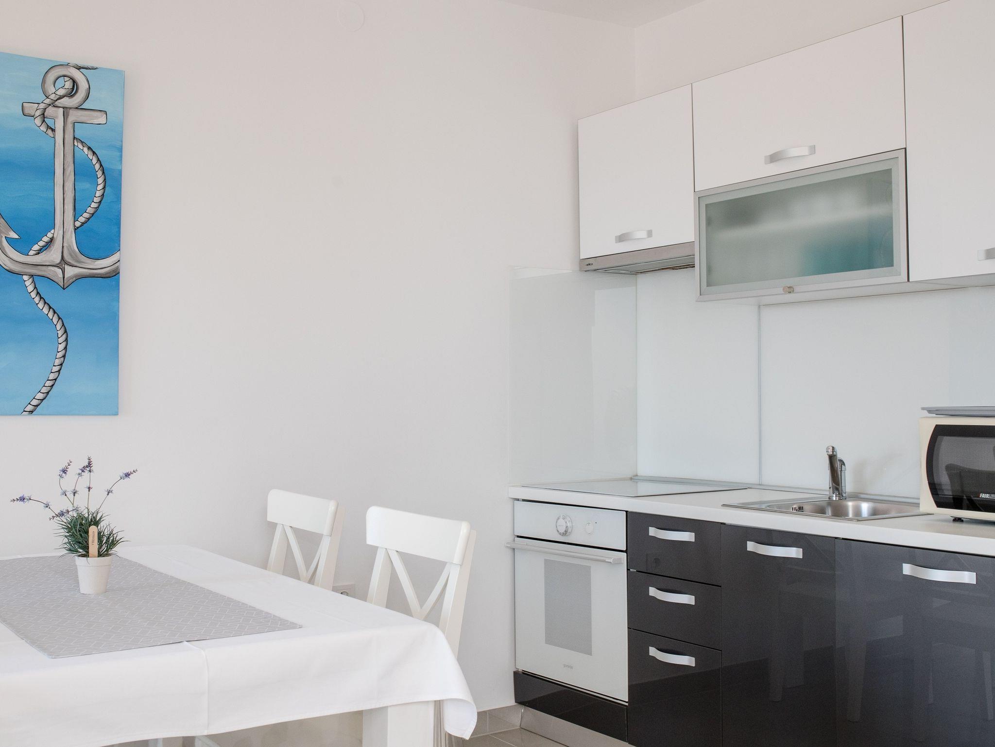 Ferienwohnung bietet Platz für 4 Gäste. Die Betten sind in Schlafzimmern, die es 1 gibt, und in Wohnzimmer, innerhalb einer Gesamtfläche von 27m2, angeordnet. Die Gäste haben einen eigenen Balkon zur Verfügung, auf der sie in warmen Sommernächten genießen können. Das Apartment bietet Meerblick. Es ist erlaubt, Speisen auf dem Gemeinschafts-Grill vorzubereiten. IM PREIS INBEGRIFFEN: Kurtaxe, Endreinigung, Klimatisierung, Parkplatz, Internet. VERBINDLICHE ZUSÄTZLICHE KOSTEN: Aufzahlung für Kurzaufenthalte (prozentualer Zuschlag pro Nächtigungsanzahl: 30% - 1, 20% - 2, 10% - 3). UNVERBINDLICHE ZUSÄTZLICHE KOSTEN: Bootsanlegeplatz (25,00 € pro Nacht). Die Verfügbarkeit zusätzlicher Dienstleistungen in Ihrem reservierten Termin und die Preise derselben (falls nicht aufgeführt) müssen im Voraus überprüft werden. Zusätzliche Dienstleistungen die in der Zahlungsaufforderung nicht aufgeführt sind werden direkt beim Vermieter bezahlt, angenommen der Gast nutzt auch diese.