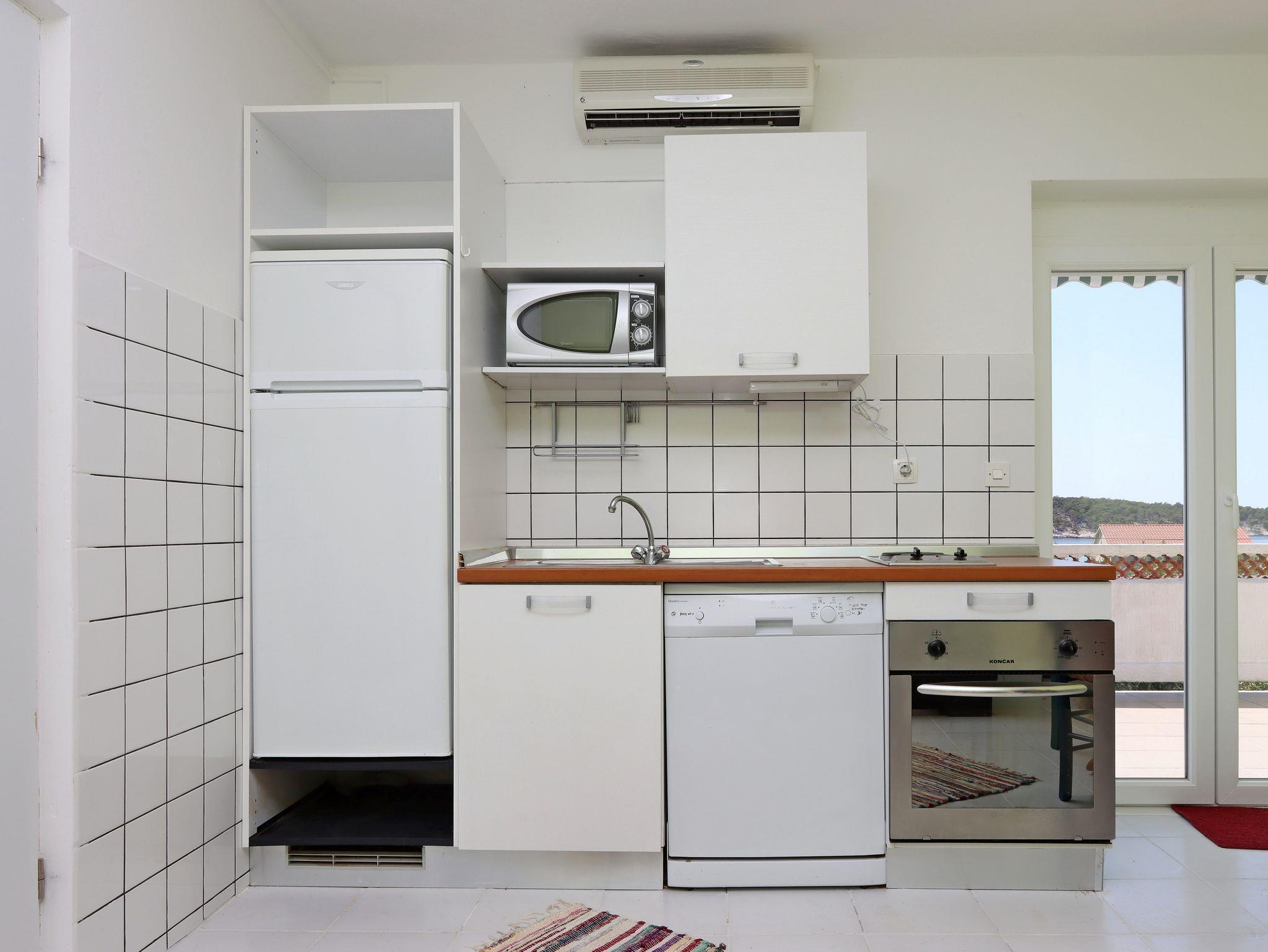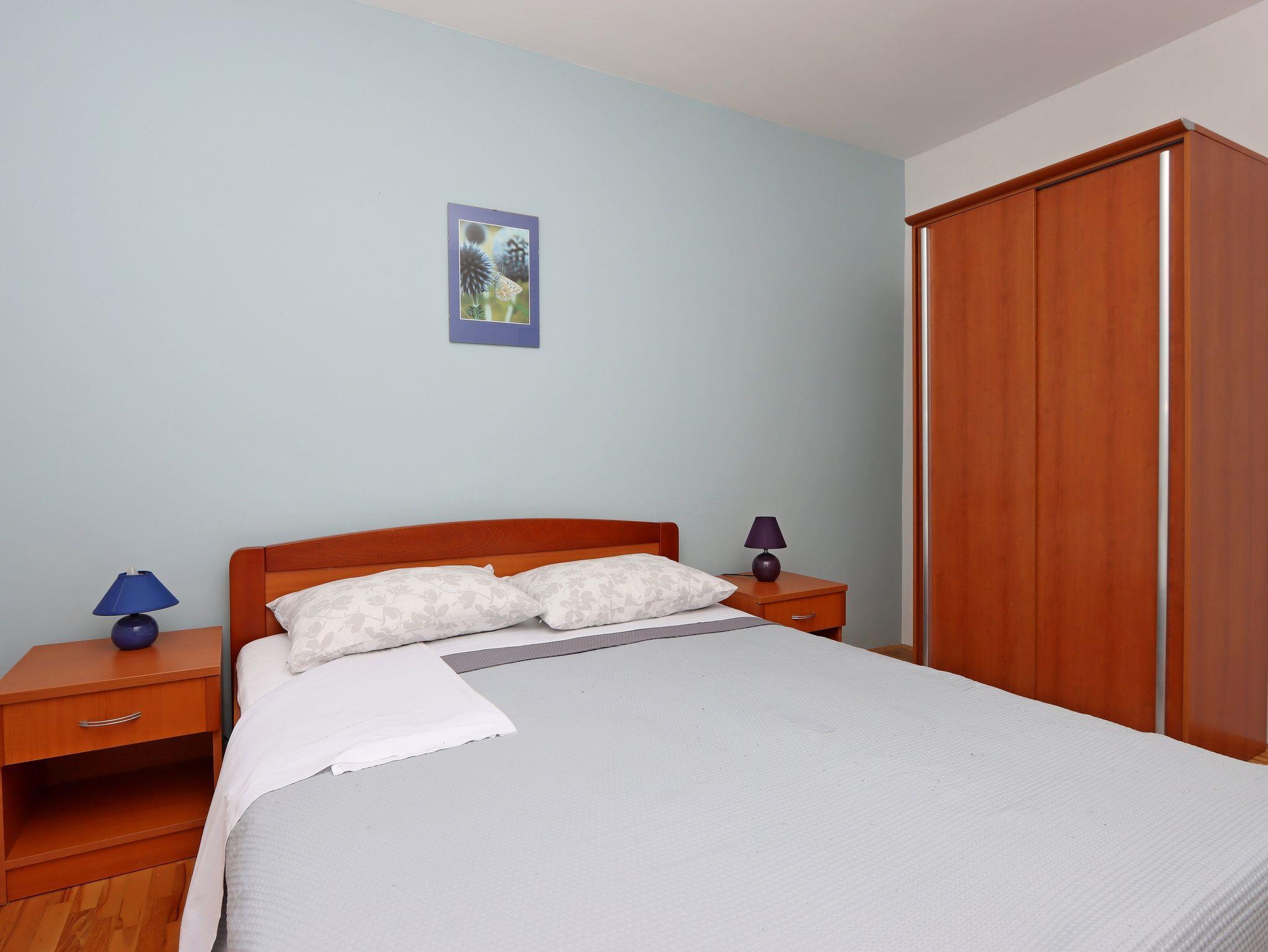 Ferienwohnung bietet Platz für 4 Gäste. Die Betten sind in Schlafzimmern, die es 2 gibt, innerhalb einer Gesamtfläche von 40m2, angeordnet. Die Gäste haben eine eigene Terrasse zur Verfügung, auf der sie in warmen Sommernächten genießen können. Das Apartment bietet Meerblick. Es ist erlaubt, Speisen auf dem Gemeinschafts-Grill vorzubereiten. In der Unterkunftseinheit besteht die Möglichkeit des Mitbringens von Haustieren gegen Aufpreis. IM PREIS INBEGRIFFEN: Kurtaxe, Endreinigung, Klimatisierung, Parkplatz, Internet, Bügeleisen, Föhn, Sonnenschirm. VERBINDLICHE ZUSÄTZLICHE KOSTEN: Aufzahlung für Kurzaufenthalte (prozentualer Zuschlag pro Nächtigungsanzahl: 30% - 1, 20% - 2, 10% - 3). UNVERBINDLICHE ZUSÄTZLICHE KOSTEN: Bootsanlegeplatz (5,00 € pro Nacht), Haustiere (7,00 € pro Nacht), Zusatzbett (5,00 € pro Nacht), 1 Bett für Kinder (5,00 € Person/Tag). Die Verfügbarkeit zusätzlicher Dienstleistungen in Ihrem reservierten Termin und die Preise derselben (falls nicht aufgeführt) müssen im Voraus überprüft werden. Zusätzliche Dienstleistungen die in der Zahlungsaufforderung nicht aufgeführt sind werden direkt beim Vermieter bezahlt, angenommen der Gast nutzt auch diese.