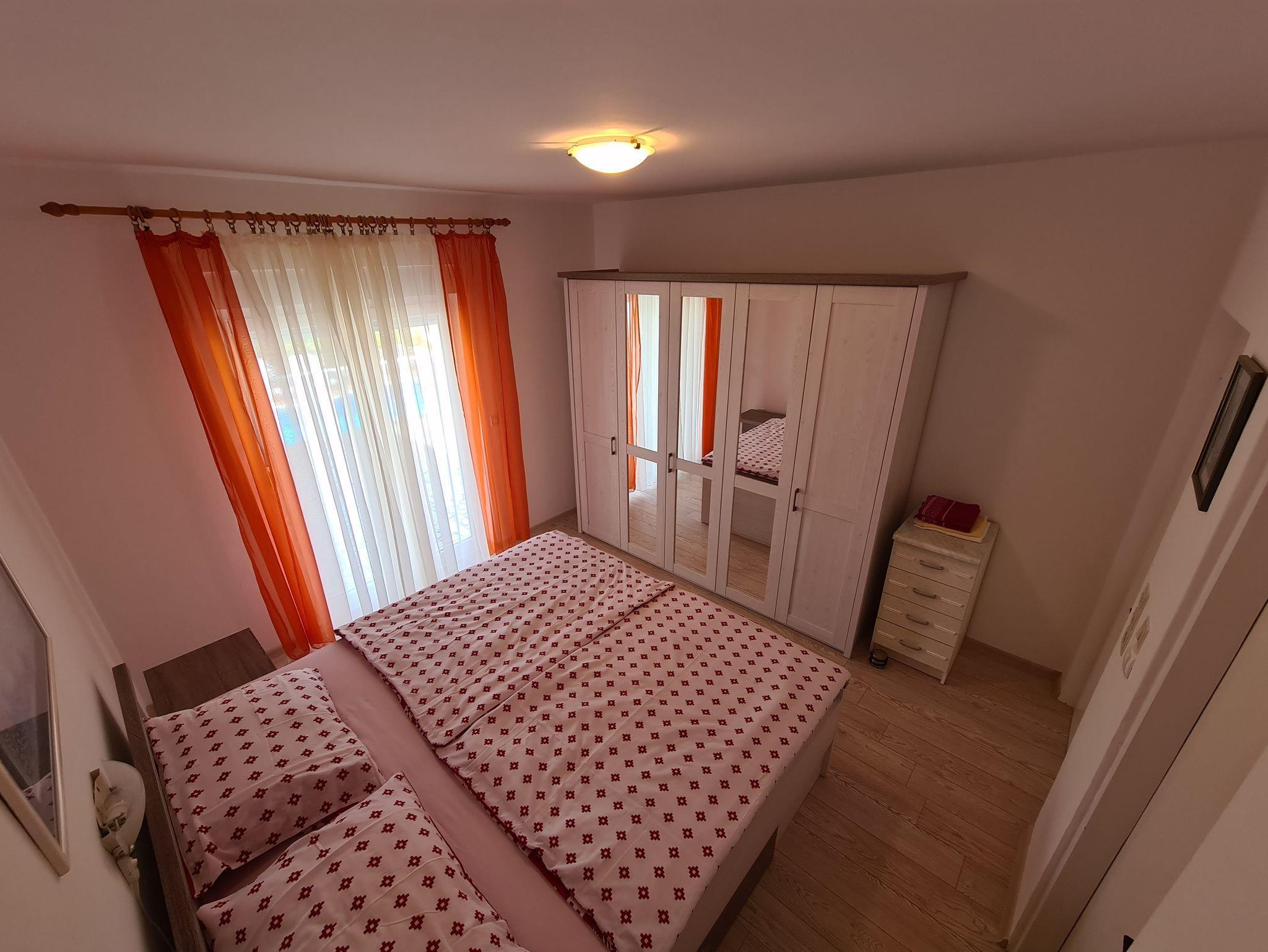 Ferienwohnung bietet Platz für 5 Gäste. Die Betten sind in Schlafzimmern, die es 2 gibt, und in Wohnzimmer, innerhalb einer Gesamtfläche von 62m2, angeordnet. Die Gäste haben eine eigene Terrasse zur Verfügung, auf der sie in warmen Sommernächten genießen können. Es ist erlaubt, Speisen auf dem Gemeinschafts-Grill vorzubereiten. Während ihres Aufenthalts können Gäste das gemeinsam zur Nutzung stehende Schwimmbad benutzen. IM PREIS INBEGRIFFEN: Kurtaxe, Endreinigung, Pool, Parkplatz, Internet, Föhn, Liegestühle. VERBINDLICHE ZUSÄTZLICHE KOSTEN: Aufzahlung für Kurzaufenthalte (prozentualer Zuschlag pro Nächtigungsanzahl: 30% - 1, 20% - 2, 10% - 3). UNVERBINDLICHE ZUSÄTZLICHE KOSTEN: Klimatisierung (5,00 € pro Nacht), Wäschewaschen (5,00 € Waschen), Bootsanlegeplatz (5,00 € pro Nacht). Die Verfügbarkeit zusätzlicher Dienstleistungen in Ihrem reservierten Termin und die Preise derselben (falls nicht aufgeführt) müssen im Voraus überprüft werden. Zusätzliche Dienstleistungen die in der Zahlungsaufforderung nicht aufgeführt sind werden direkt beim Vermieter bezahlt, angenommen der Gast nutzt auch diese.