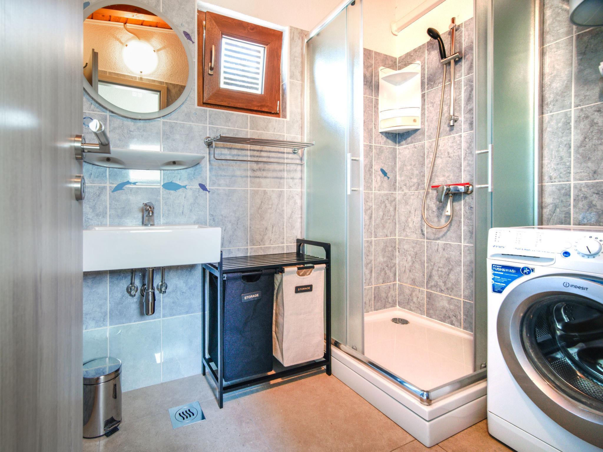 3-room house 87 m2, on the ground floor, south facing position. Living/dining room 40 m2 with cable TV (flat screen), air conditioning. Exit to the terrace. 1 room with 1 double bed (2 x 80 cm, length 200 cm). 1 room with 1 double bed (2 x 80 cm, length 190 cm). Open kitchen (oven, 4 ceramic glass hob hotplates, kettle, microwave, freezer, electric coffee machine). Shower, sep. WC. No heating option. Terrace 70 m2 partly roofed. Electric barbecue, deck chairs. Facilities: Internet (WiFi, free).
