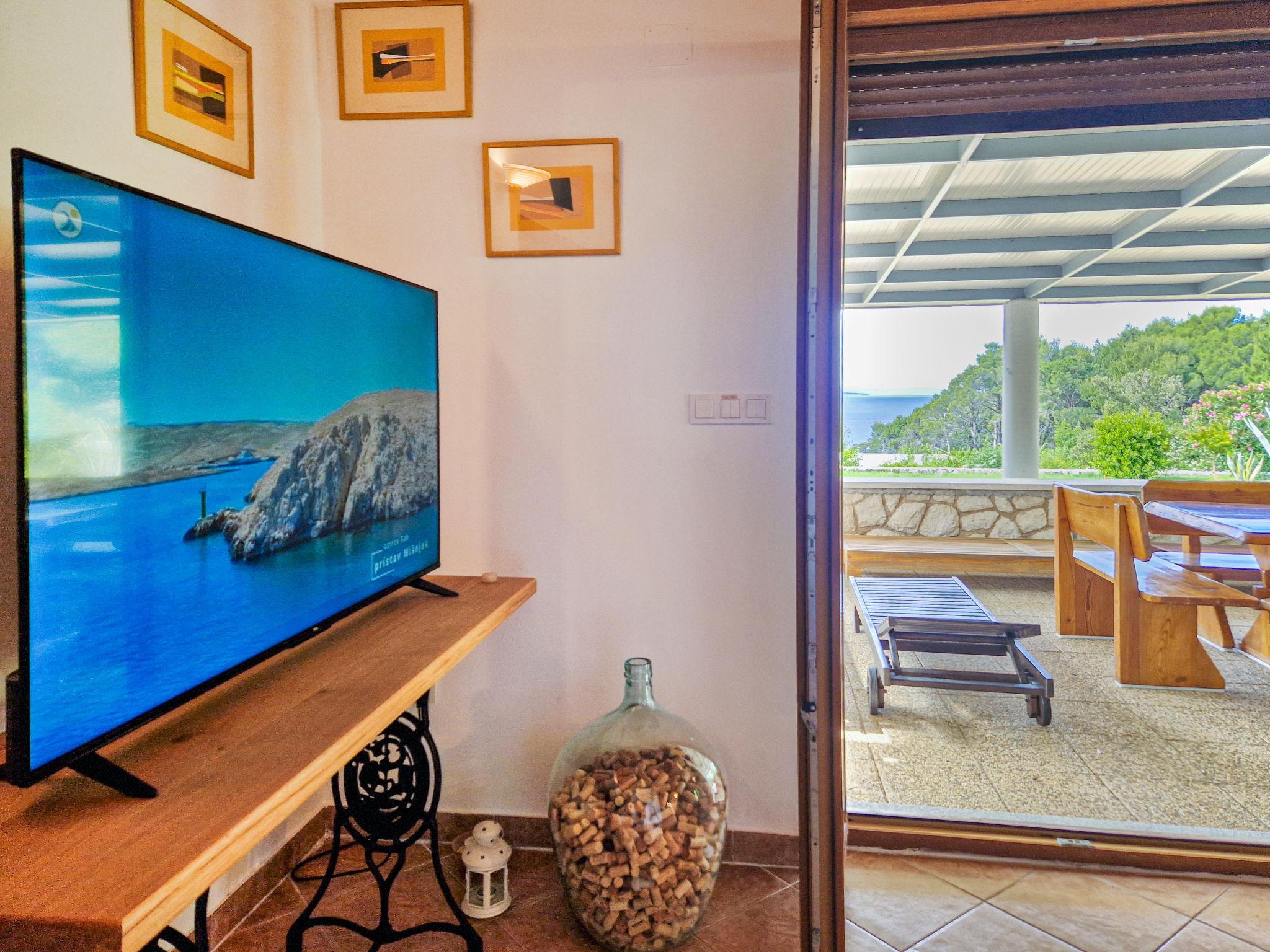 Single-family house "Dundo House". 5 km from the centre of Rab, in a quiet, sunny position, 200 m from the sea, 450 m from the beach, in a cul-de-sac. Private: property 4'000 m2 (fenced) with wildlife garden and trees. In the house: internet access, washing machine. Parking (for 4 cars) at the house on the premises. Supermarket 3.4 km, restaurant 1 km, bus stop 3.2 km, pebble beach, rocky beach 450 m, nudist beach 200 m. Tennis 2.5 km.