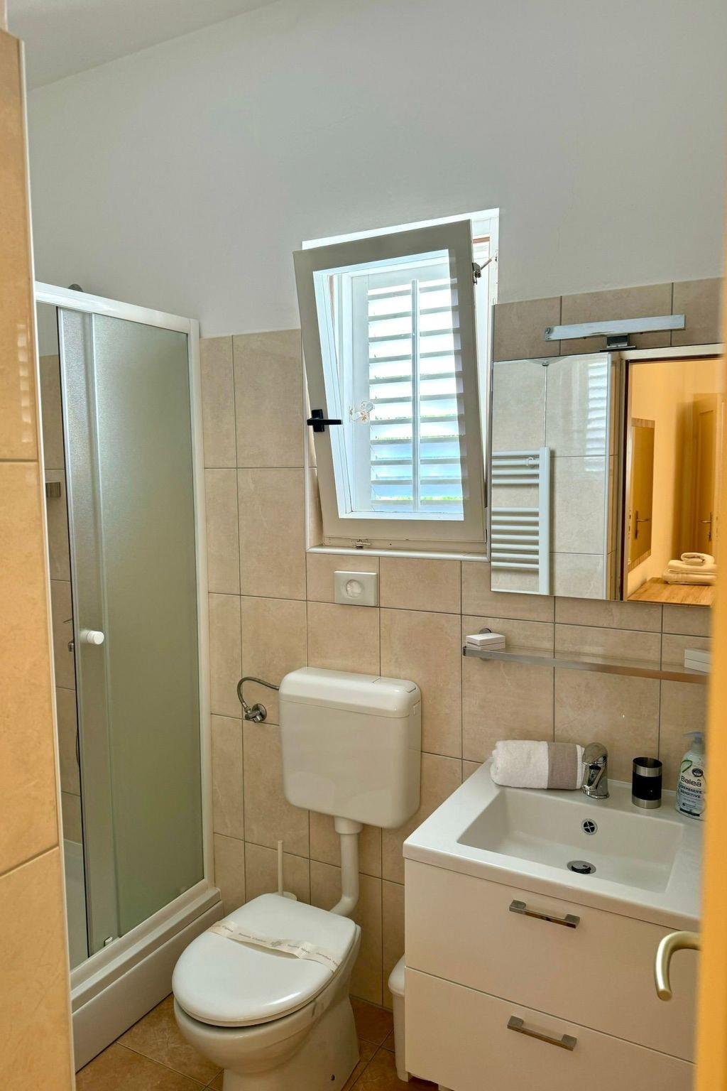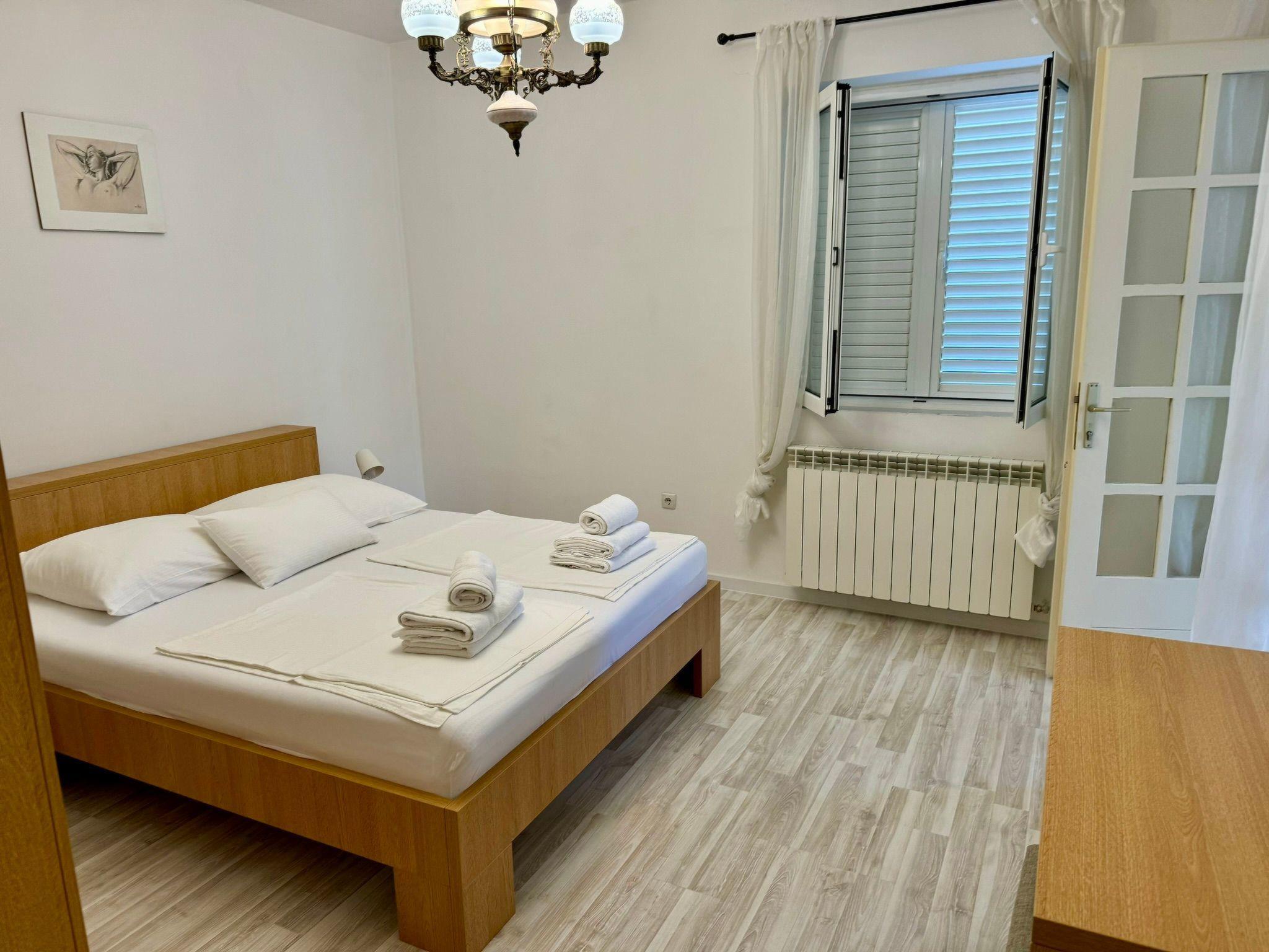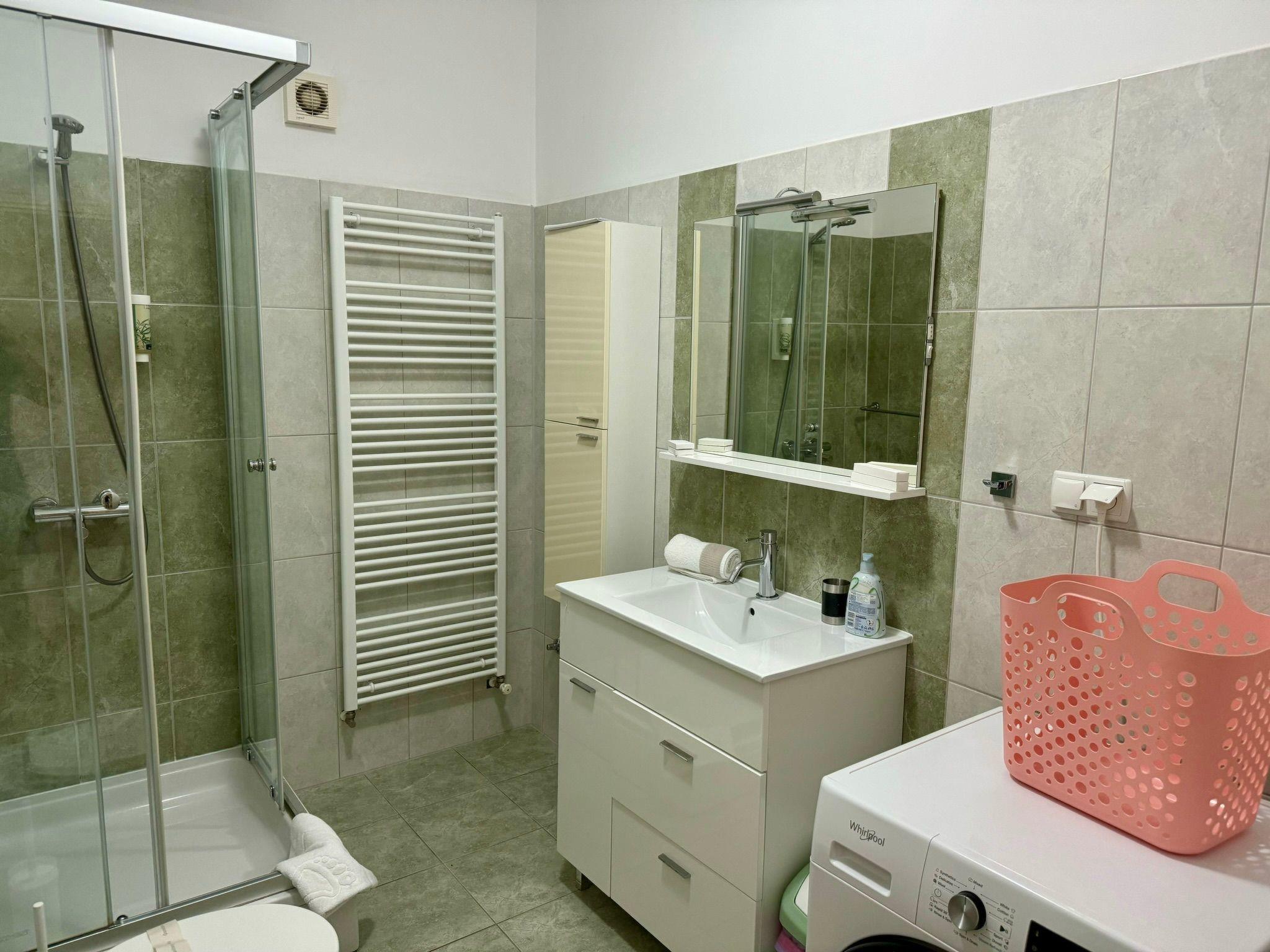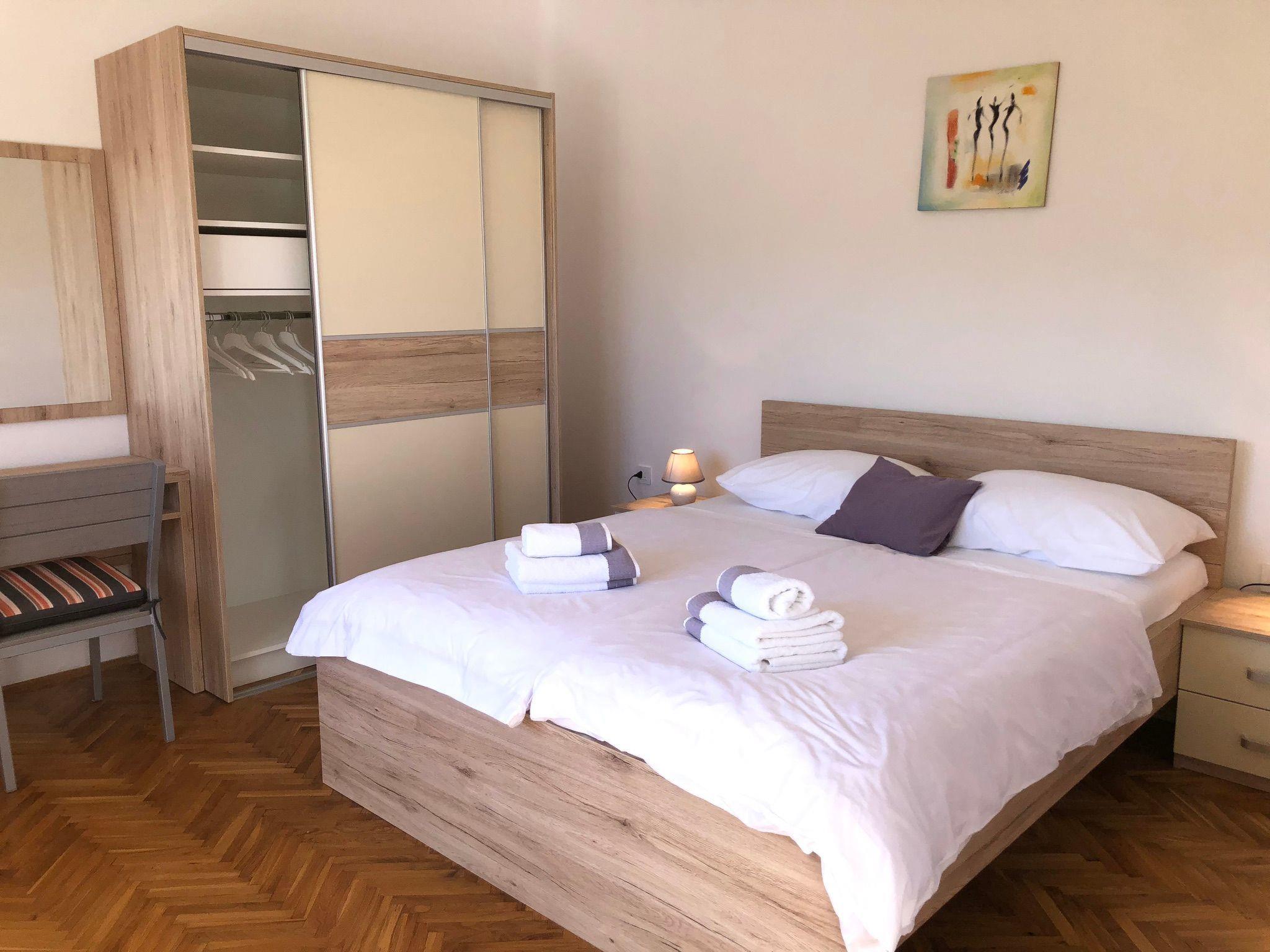 This spacious 140m² holiday apartment occupies the ground floor of the two-storey family house and was completely renovated recently in the year 2016. It consists of a living room, a separate and fully-equipped kitchen with a dining space, three bedrooms and three bathrooms. The living room provides a generous five-seater corner sofa, a side table and a Smart TV with satellite channels. The kitchen is equipped with a dishwasher, a ceramic hob with an elegant stainless steel cooker hood, an oven, fridge with freezer compartment, microwave, kettle, coffee machine as well as a dining space with a wooden table and matching chairs. Three bedrooms has their own convenient en-suite bathroom with a shower, washbasin and toilet. All three bedrooms are furnished with double beds along with a dresser and a spacious wardrobe. A washing machine is in one bathroom. In addition, a reliable WiFi Internet connection is available free of charge.