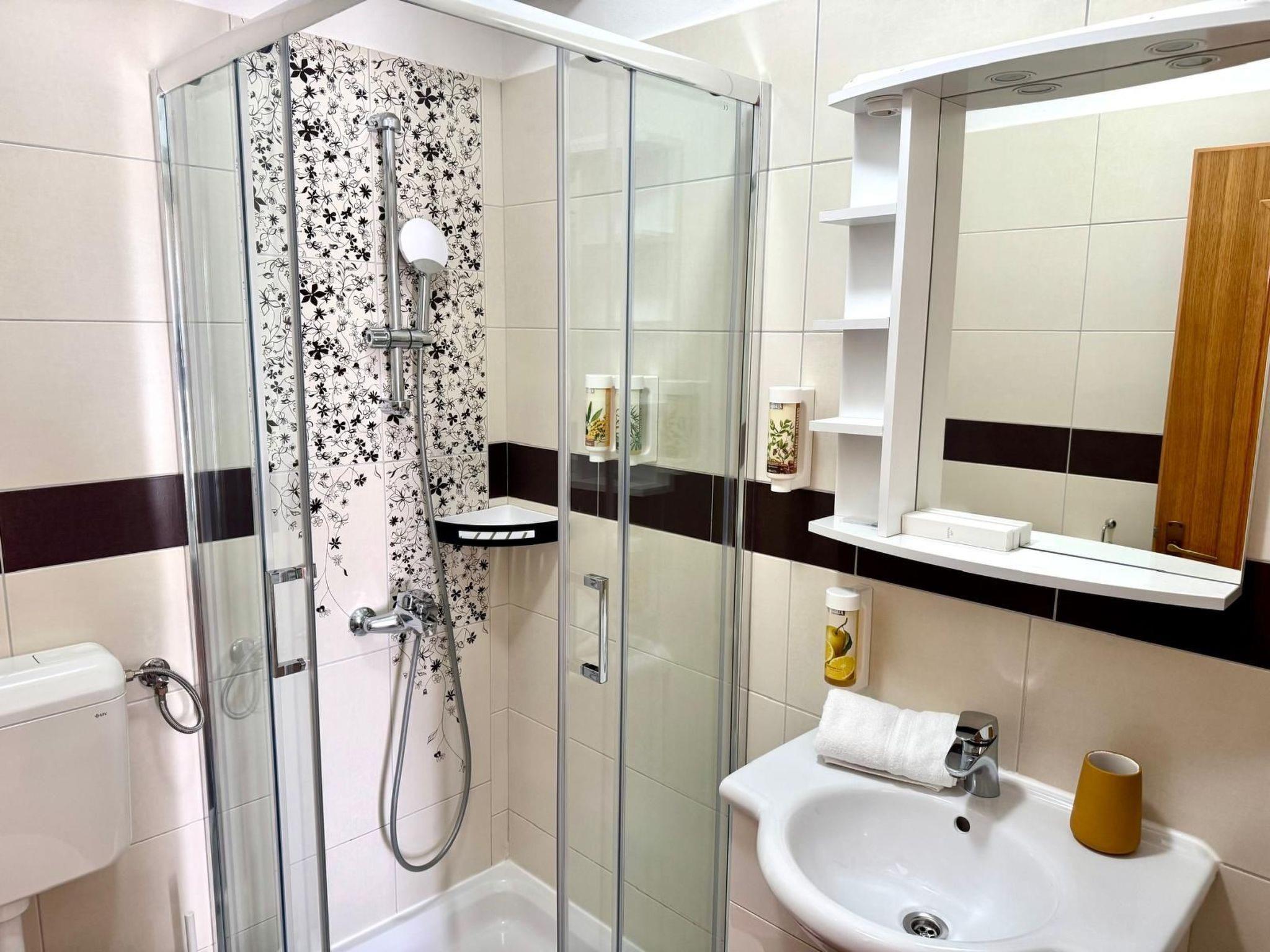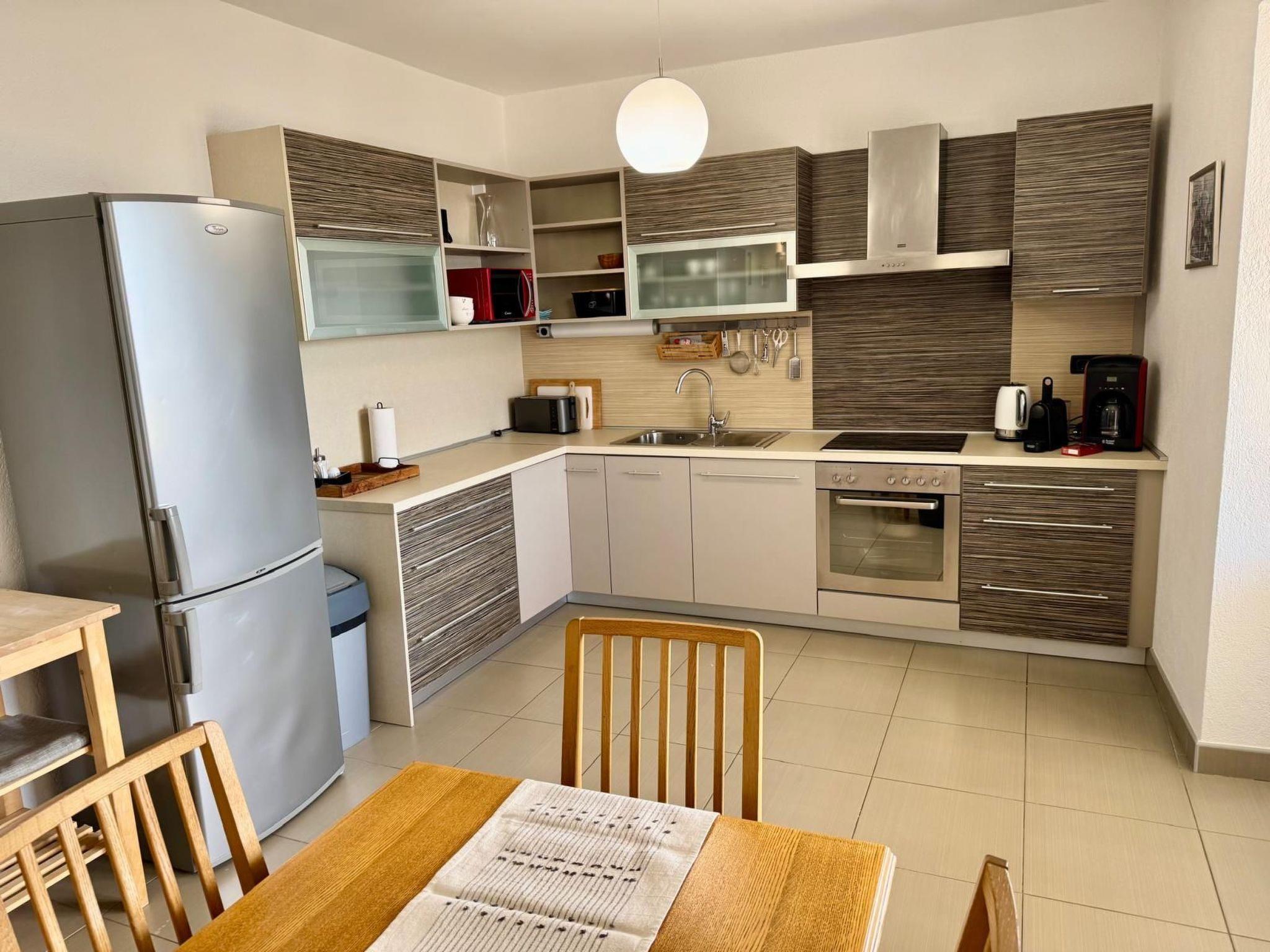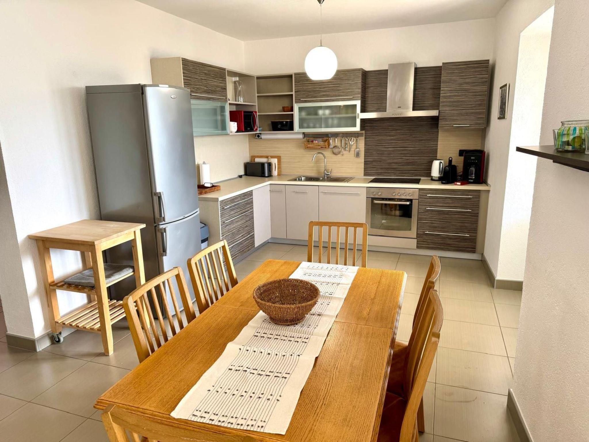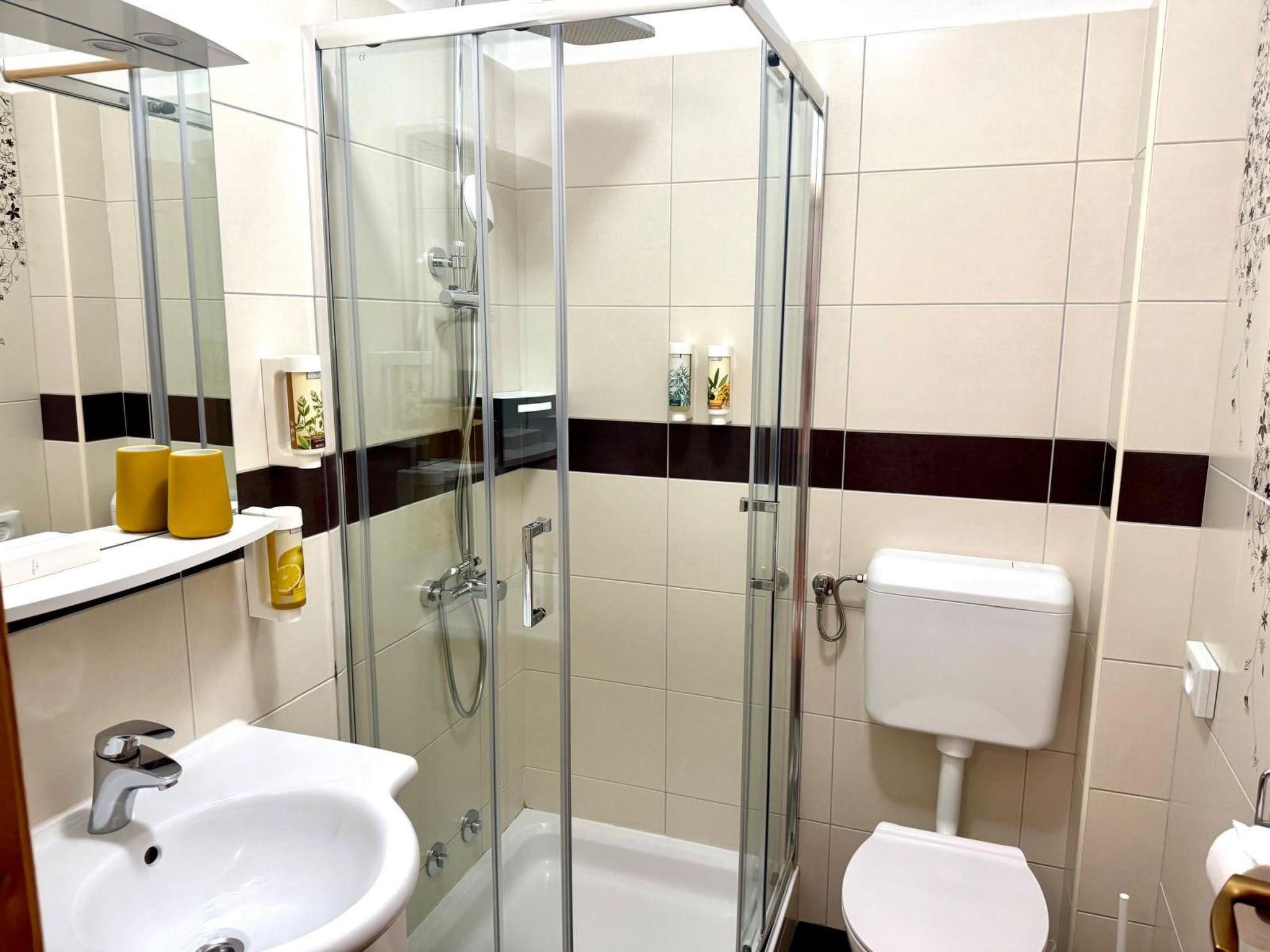 The 95m² holiday apartment on the second floor consists of a living and dining room with an integrated, open kitchen, two bedrooms, two bathrooms and a separate guest toilet. The air-conditioned (cool/warm) living room provides a generous corner sofa suite and a TV mounted to the wall with satellite channels and Netflix, a stereo system, a safe for your valuables and a dining table with chairs. The modern, open built-in kitchen is equipped with a dishwasher, a ceramic hob with an elegant stainless steel cooker hood, an oven, a fridge with a freezer compartment, a microwave, a kettle, a toaster and a coffee Filter and Nespresso machines. The two bedrooms each have a double bed (160 x 200cm), bedside tables with reading lamps and cupboards with ample storage space for your clothing and luggage. The two bathrooms are each fitted with a spacious shower cubicle, a washbasin with a cupboard underneath, a wall mirror and a toilet. There is also a convenient separate guest toilet with washing machine. Two more washing machines, dryer and a cot are available and plenty of bed linen and towels are provided. The reliable wireless Internet connection in the apartment can be used free of charge.