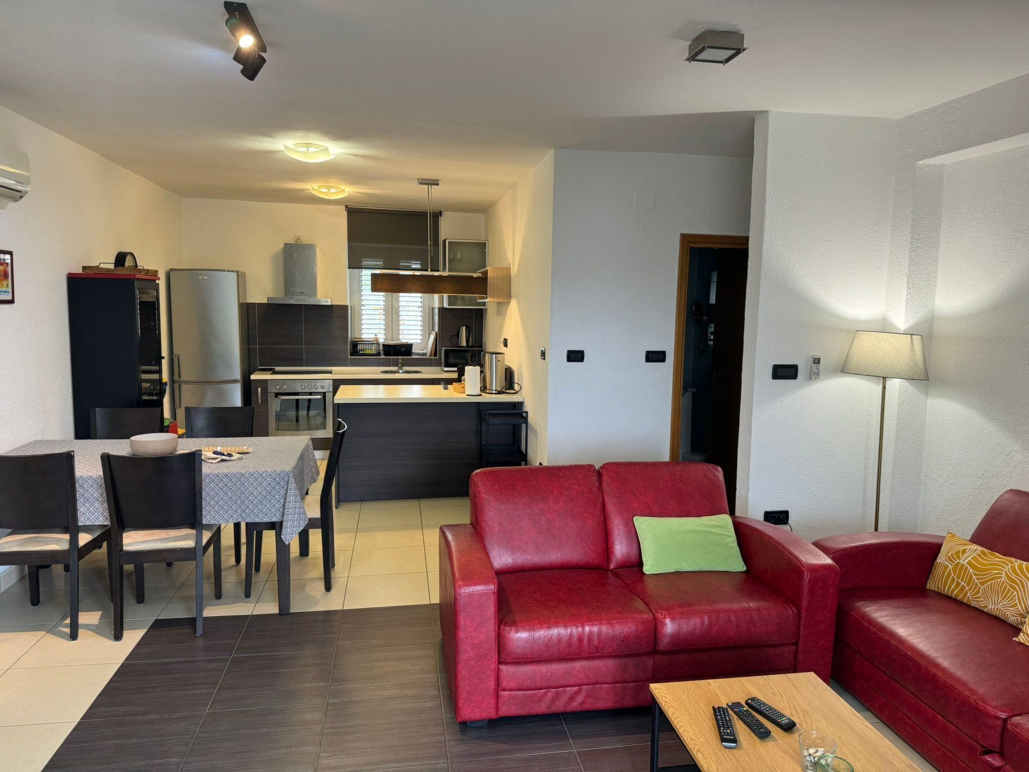 From the living area and one of the bedrooms, you'll find your private 18 m² sun terrace, equipped with a table and chairs. From here, you can enjoy the far-reaching panoramic view of the expansive bay and the blue sea.