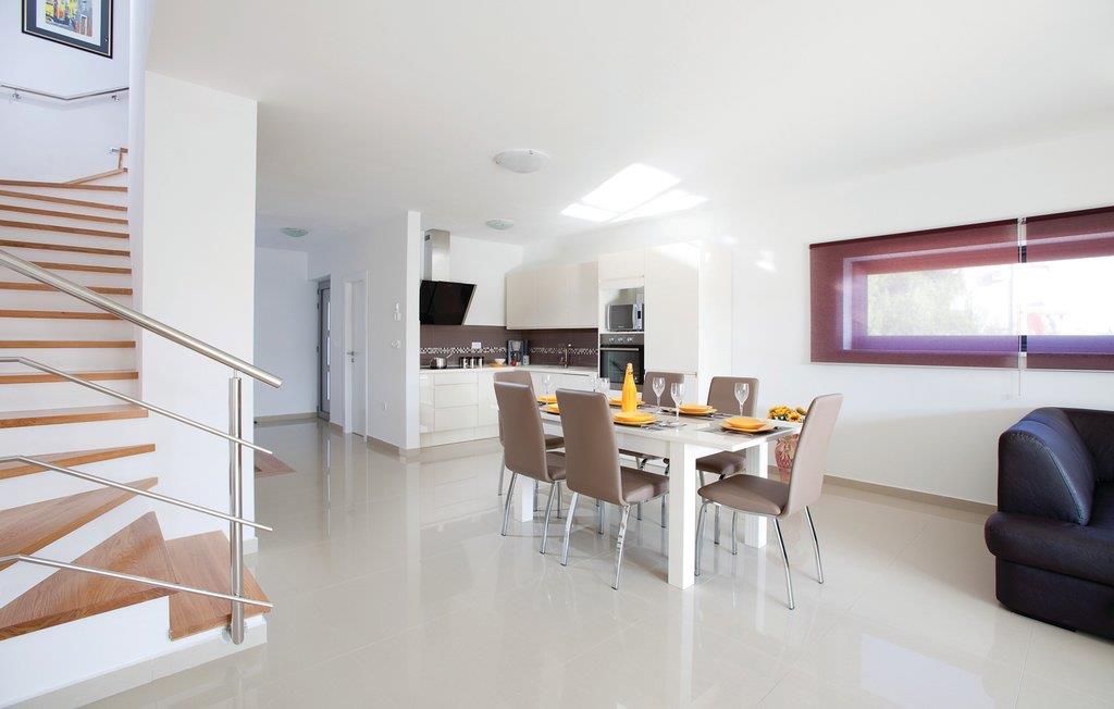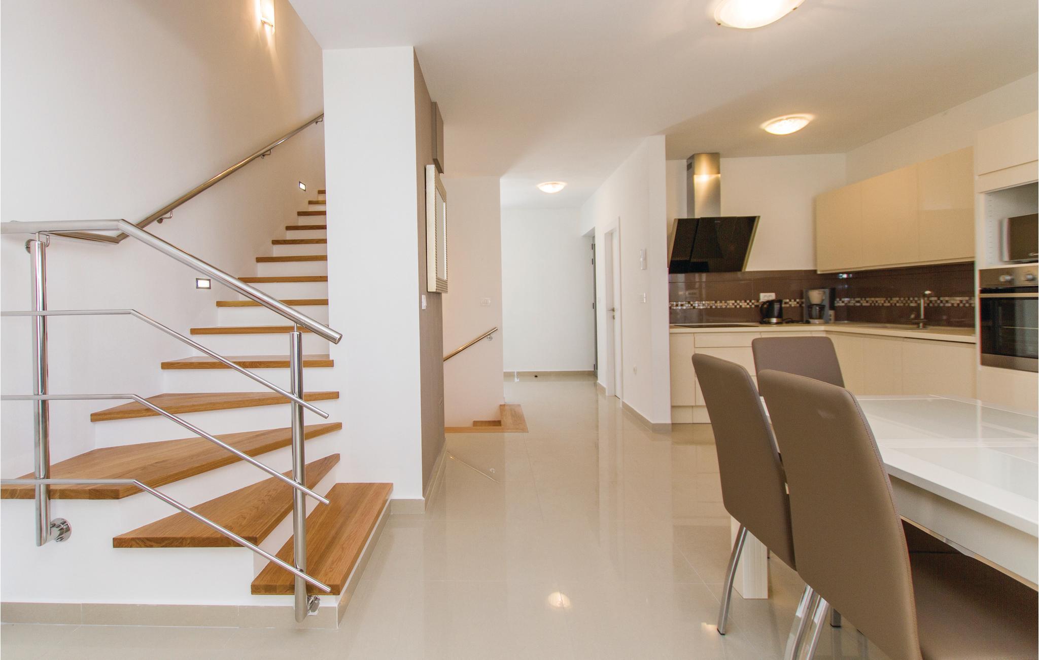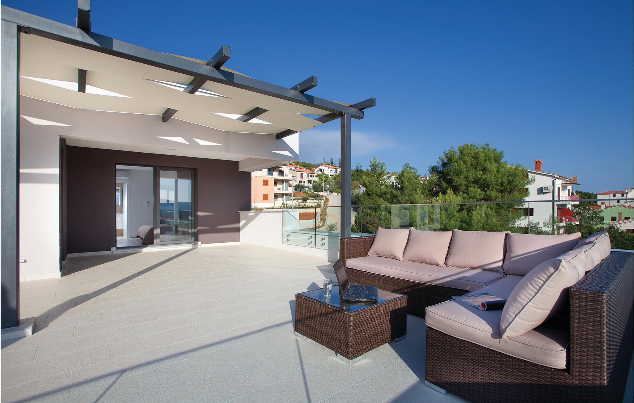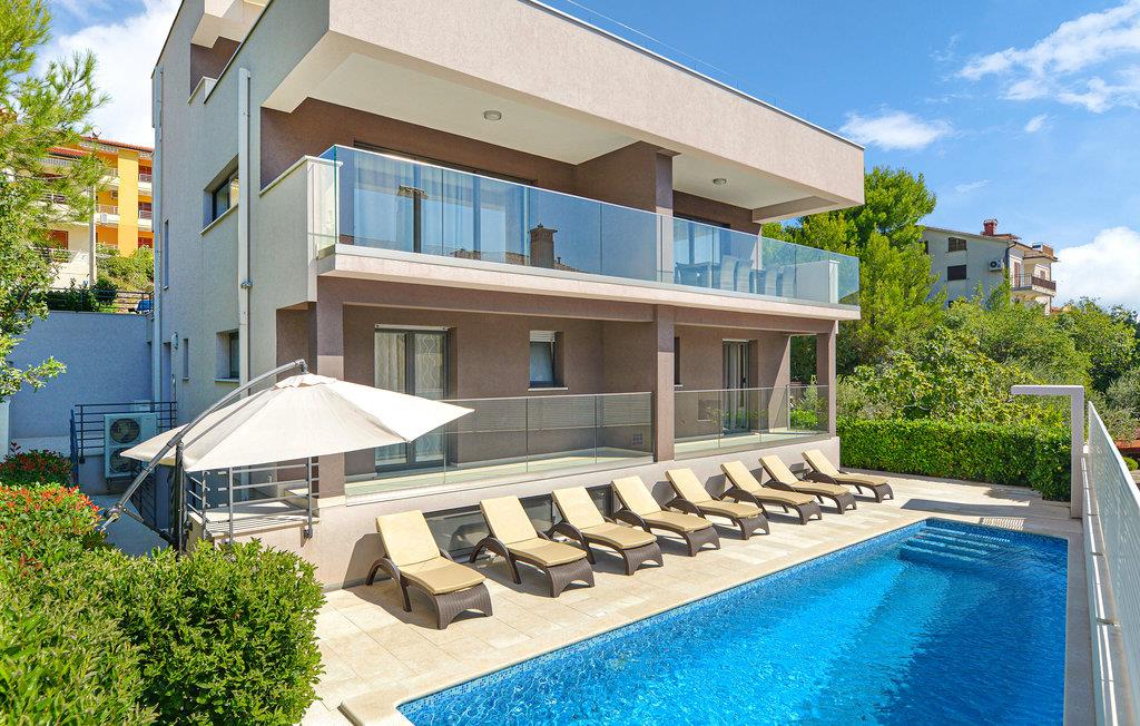 Dette feriehuset med svømmebasseng tilbyr en herlig ferie for hele familien. Det ligger i feriebyen Rabac, som er kjent for sine vakre rullesteinstrender og det krystallklare havet. Fra 2. etasje kan du nyte en uforglemmelig utsikt over hele Rabac og øyene. Feriehuset er omgitt av andre feriehus og er ideelt for en familieferie. Her kan dere tilbringe ferien sammen, men likevel beholde privatlivet. Det er tennisbaner i nærheten. Til tross for den relative nærheten til sjøen, anbefaler vi å kjøre bil på grunn av det fjellrike terrenget. På sommerkveldene kan du spasere langs strandpromenaden, der det finnes kafeer og restauranter. Du vil garantert like en tur til gamle Labin, som på folkemunne er kjent som kunstnerbyen.