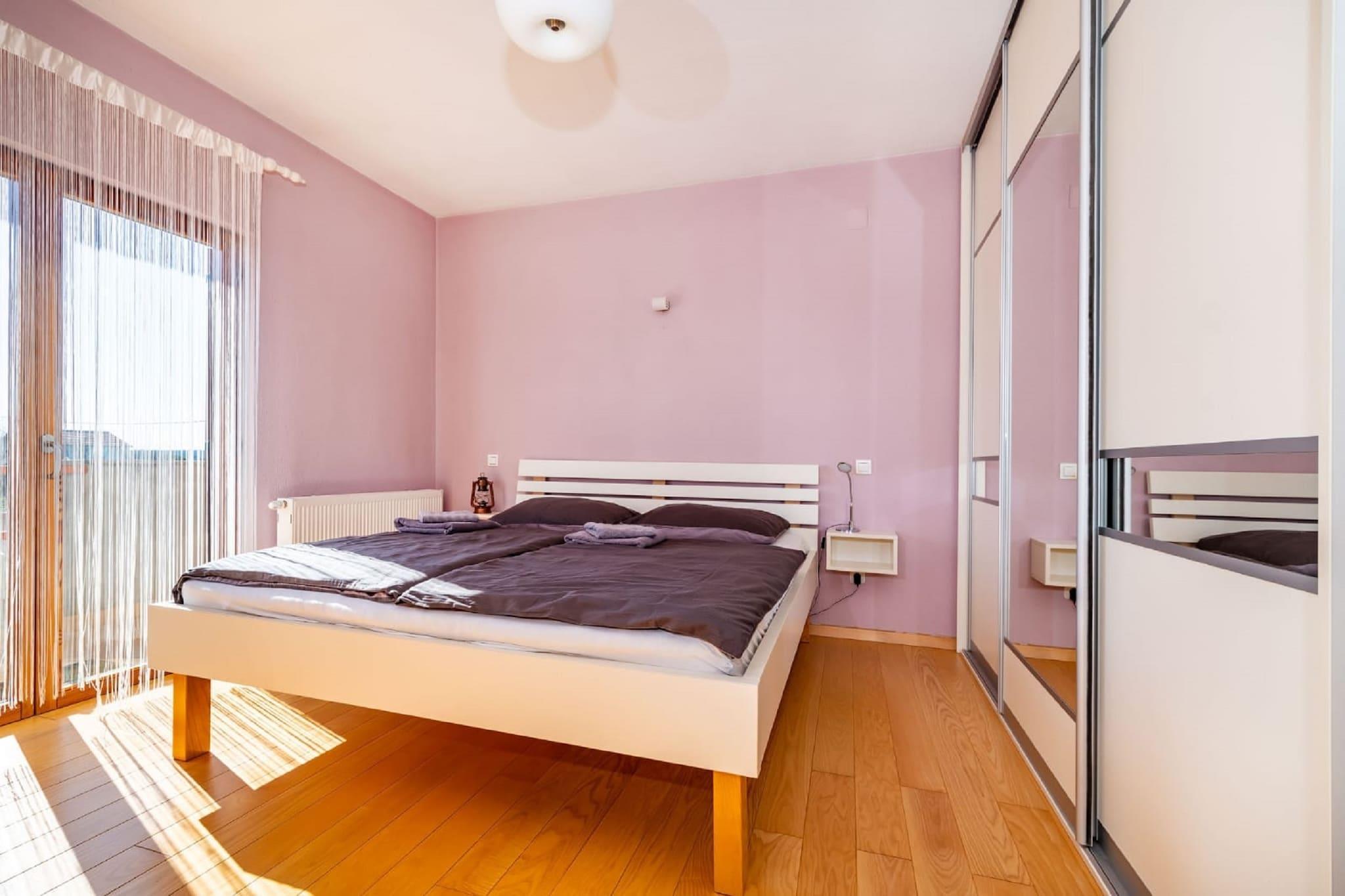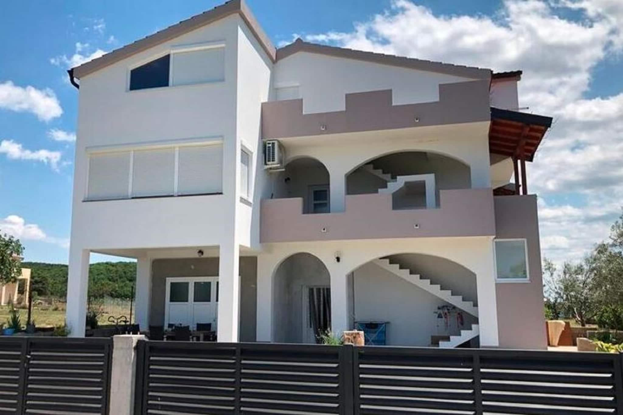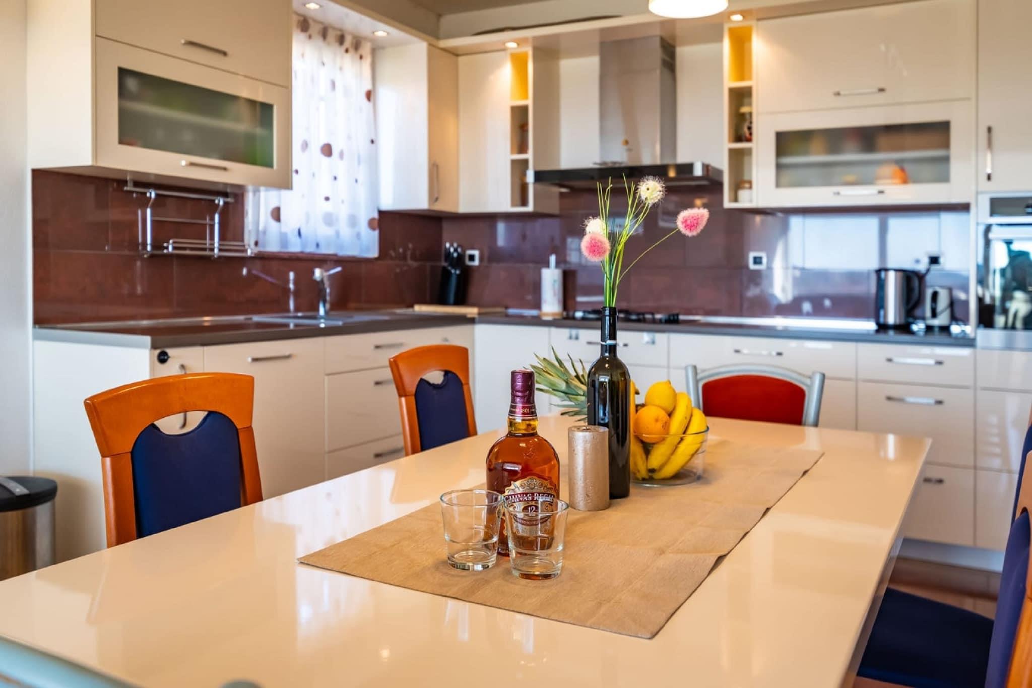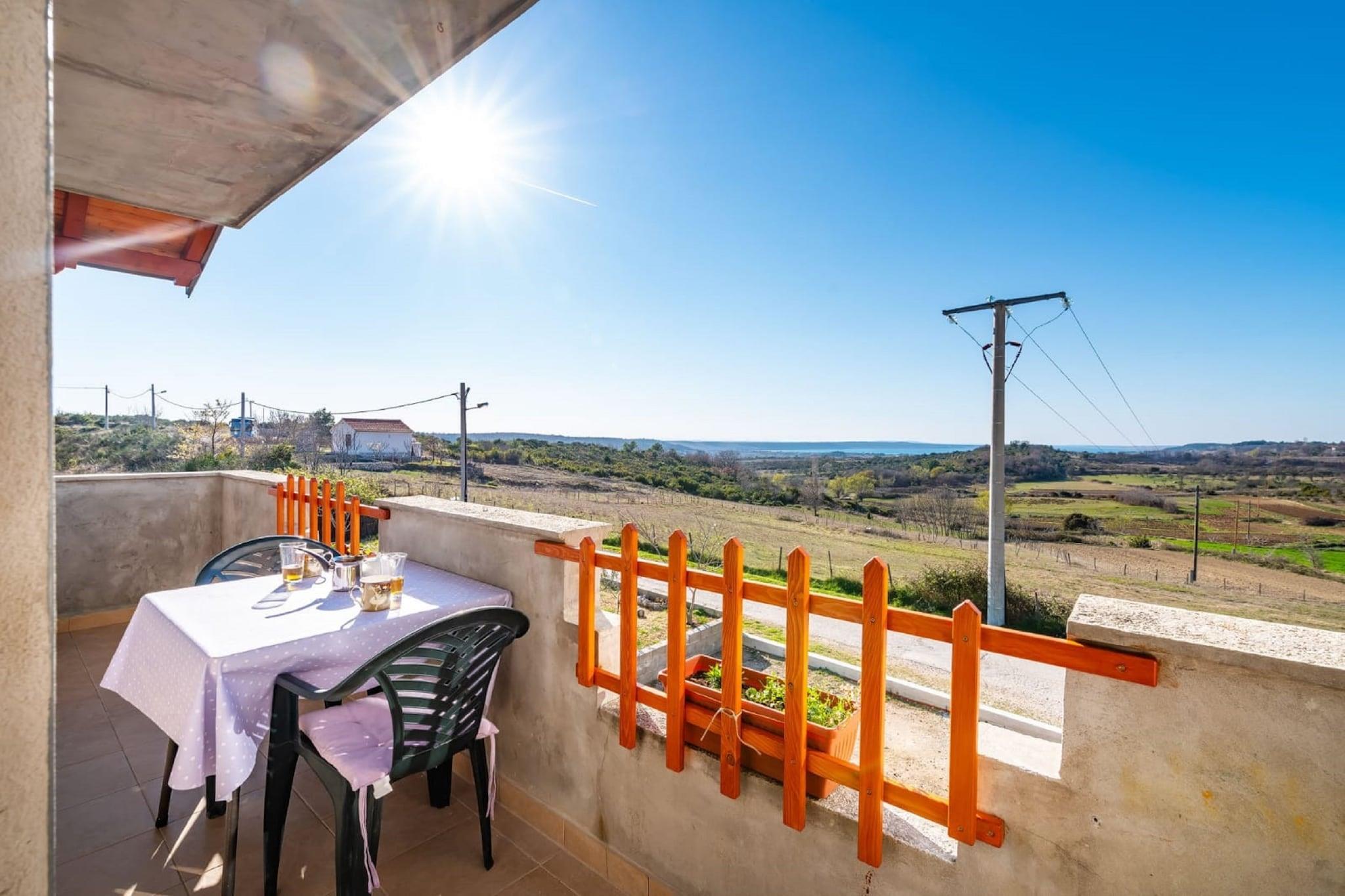 Denne koselige leiligheten ligger i den fredelige landsbyen Radovin, og tilbyr et avslappende tilfluktssted kun 2 km fra stranden. Ideelt for familier eller en liten gruppe venner, har hjemmet en frodig hage hvor du kan slappe av, nyte en grillfest eller lytte til fuglesang i det rolige dalmatiske landskapet. Beliggenheten gjør en flott base for å utforske regionen. Oppdag den sjarmerende byen Zadar, planlegg dagsturer til Split eller Pula, eller nyt naturen i Kornati nasjonalpark. For familiemoro ligger Solaris Aquapark i nærheten, og tilbyr vannattraksjoner for alle aldre. Innvendig er leiligheten lys og moderne, med klimaanlegg og oppvarming som sikrer komfort hele året. Stuen har TV og komfortable sitteplasser, og ett av soverommene har egen balkong, perfekt for å nyte morgenkaffen. Privat parkering er tilgjengelig på stedet. Zadar lufthavn ligger praktisk til kun 16 km unna.