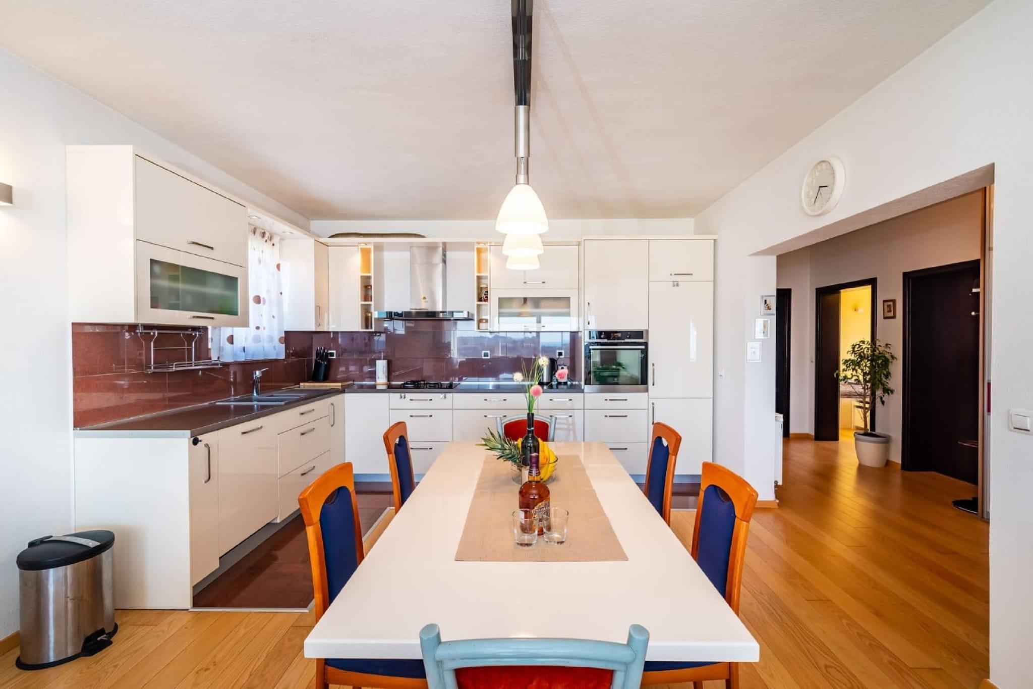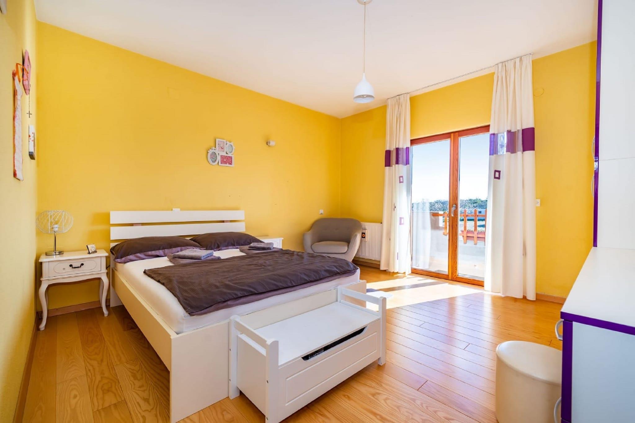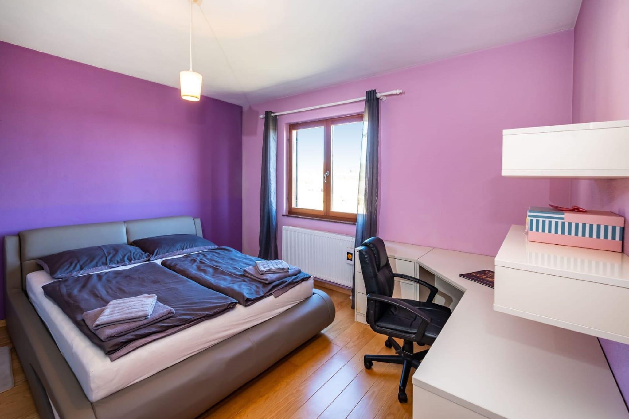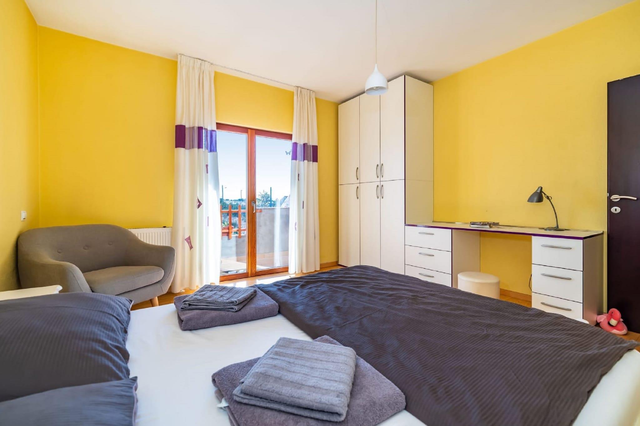 Denne koselige leiligheten ligger i den fredelige landsbyen Radovin, og tilbyr et avslappende tilfluktssted kun 2 km fra stranden. Ideelt for familier eller en liten gruppe venner, har hjemmet en frodig hage hvor du kan slappe av, nyte en grillfest eller lytte til fuglesang i det rolige dalmatiske landskapet. Beliggenheten gjør en flott base for å utforske regionen. Oppdag den sjarmerende byen Zadar, planlegg dagsturer til Split eller Pula, eller nyt naturen i Kornati nasjonalpark. For familiemoro ligger Solaris Aquapark i nærheten, og tilbyr vannattraksjoner for alle aldre. Innvendig er leiligheten lys og moderne, med klimaanlegg og oppvarming som sikrer komfort hele året. Stuen har TV og komfortable sitteplasser, og ett av soverommene har egen balkong, perfekt for å nyte morgenkaffen. Privat parkering er tilgjengelig på stedet. Zadar lufthavn ligger praktisk til kun 16 km unna.