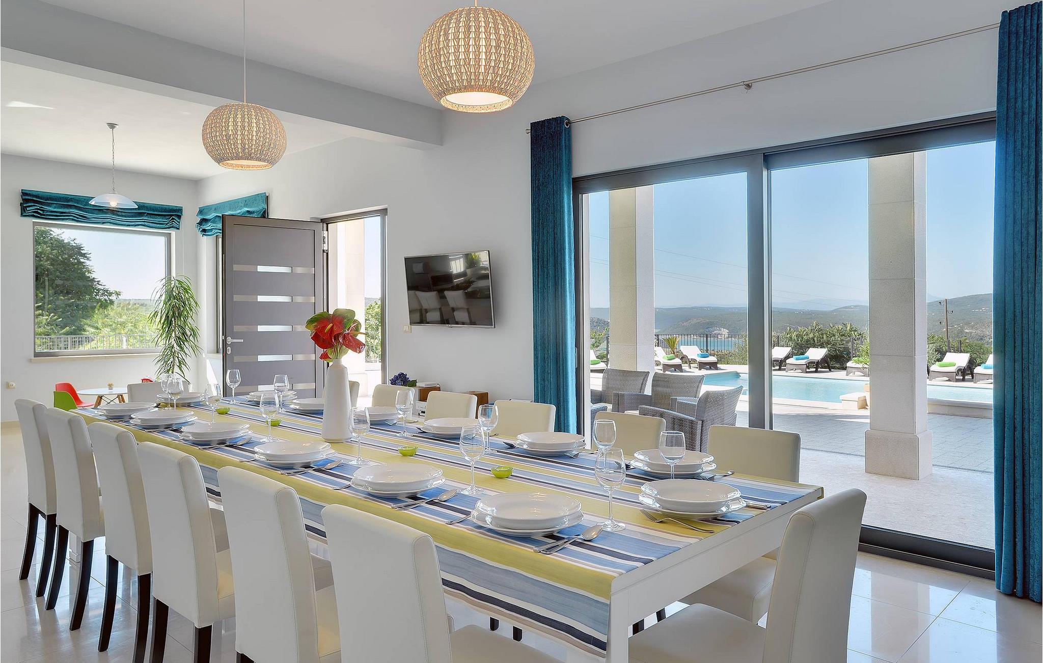 Denne praktfulle eiendommen har alt du trenger for en perfekt ferie, inkludert fantastisk havutsikt. Villa Rachele tilbyr luksuriøs innkvartering for opptil 14 personer fordelt på 7 flott innredede soverom. Soverommet i øverste etasje har fantastisk havutsikt over bukten. Alle rommene har klimaanlegg og LCD-TV med satellittkanaler. Villaen er romslig og velutstyrt, og er effektivt innredet med stor sans for detaljer. Her finner du alt du trenger for å slappe av fra det moderne livets kjas og mas: Biljardbord, Playstation 4, WLAN, stereoanlegg med utendørs høyttalere og mye mer. På gårdsplassen har du tilgang til et stort privat svømmebasseng og en volleyballbane.