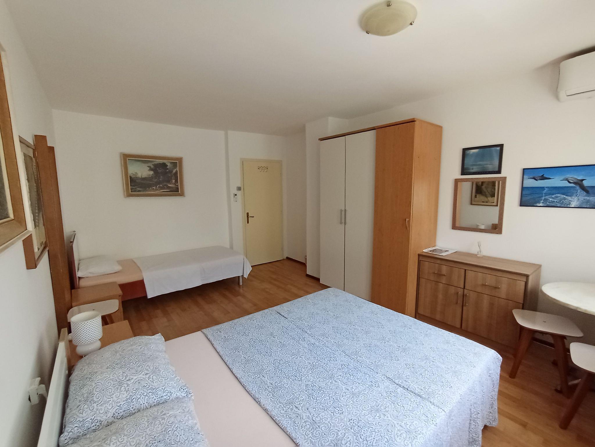Zimmer bietet Platz für 3 Gäste. Die Betten sind in Schlafzimmern, die es 1 gibt, innerhalb einer Gesamtfläche von 25m2, angeordnet. Die reservierte Unterkunftseinheit hat keinen Balkon und keine Terrasse. Die reservierte Unterkunftseinheit ist ein Zimmer mit eigenem Badezimmer ohne die Möglichkeit der Nutzung einer Küche. Räume der gebuchten Unterkunftseinheit werden nicht in eine Ganze verbunden. IM PREIS INBEGRIFFEN: Endreinigung, Klimatisierung, Internet, Bügeleisen, Bügelbrett, Föhn. VERBINDLICHE ZUSÄTZLICHE KOSTEN: Kurtaxe (Erwachsene 0,93 € - 2,00 € Nacht/Person, Kinderermäßigung 12 - 17 Jahre). UNVERBINDLICHE ZUSÄTZLICHE KOSTEN: Wäschewaschen (5,00 € Waschen). Die Verfügbarkeit zusätzlicher Dienstleistungen in Ihrem reservierten Termin und die Preise derselben (falls nicht aufgeführt) müssen im Voraus überprüft werden. Zusätzliche Dienstleistungen die in der Zahlungsaufforderung nicht aufgeführt sind werden direkt beim Vermieter bezahlt, angenommen der Gast nutzt auch diese.