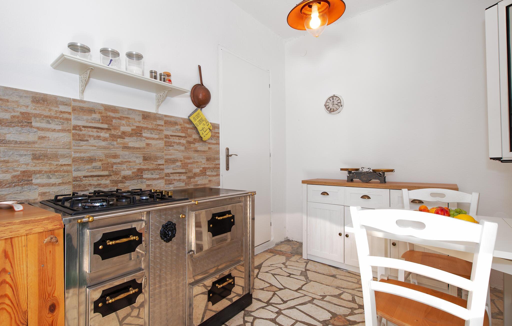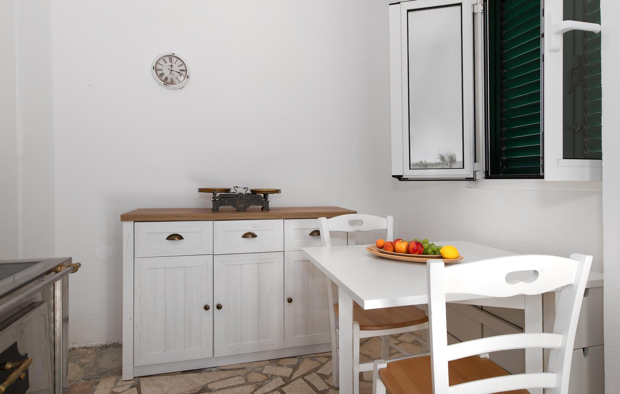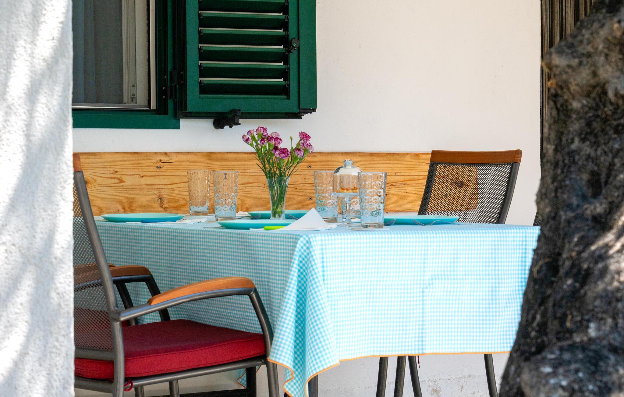 Dette lyse og velholdte feriehuset ligger i første rad mot sjøen og skjemmer deg bort med en idyllisk beliggenhet omgitt av oliven- og fikentrær. Det er det ideelle stedet for familier med barn og kjæledyr. Her kan du trylle frem middelhavsdelikatesser og la den behagelige brisen strømme gjennom rommene under avslappende siestaer.