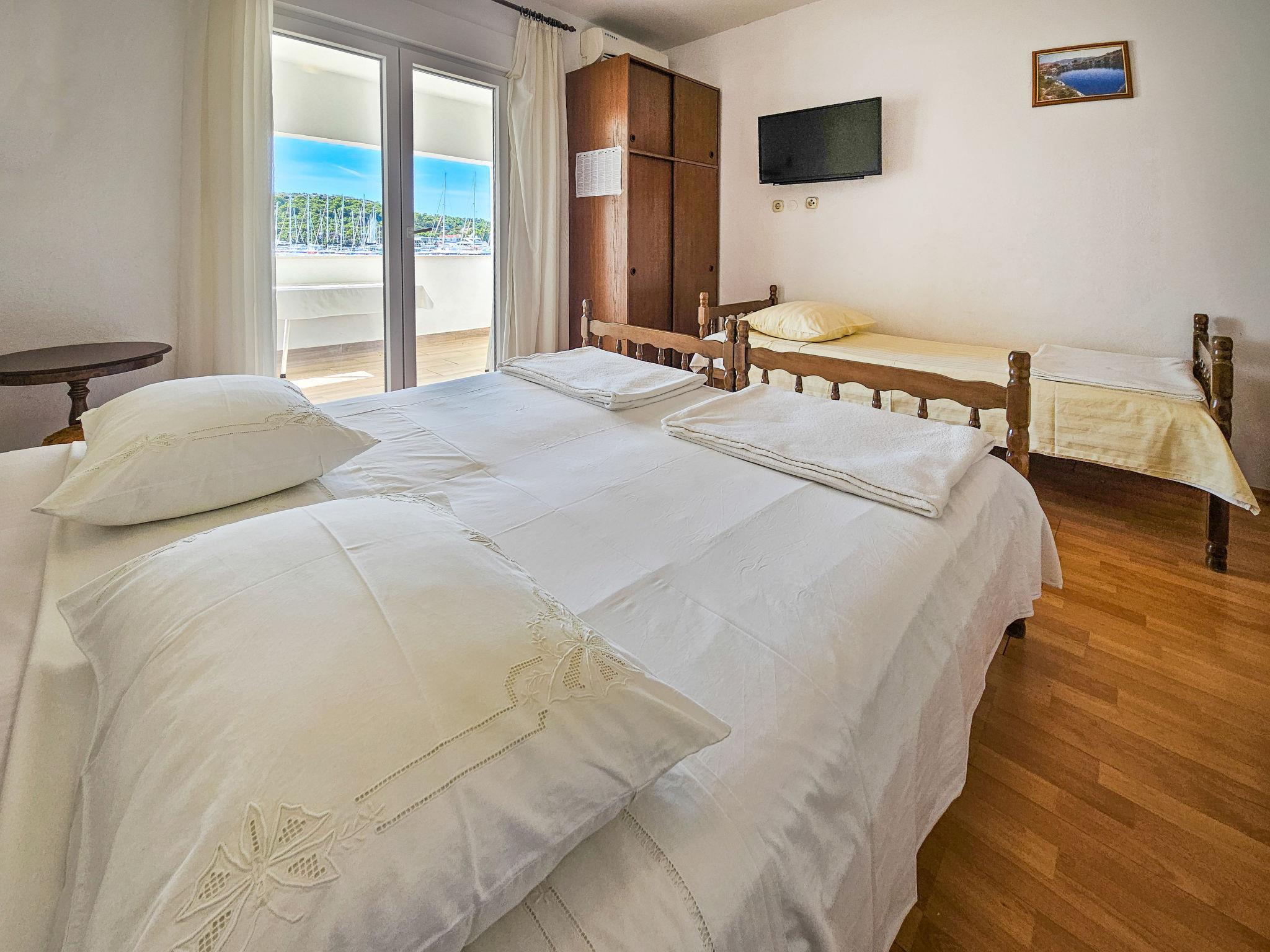 "A2", 2-room apartment 40 m2 on 2nd floor, south facing position. 1 room with 1 bed (90 cm, length 200 cm), 1 double bed (2 x 80 cm, length 200 cm), shower/WC and satellite TV (flat screen), air conditioning. Exit to the terrace. Kitchen (4 hot plates, oven, microwave, freezer, electric coffee machine). Exit to the terrace. Terrace 5 m2, roofed. Balcony furniture. Very beautiful view of the sea. Facilities: hair dryer. Internet (WiFi, free).