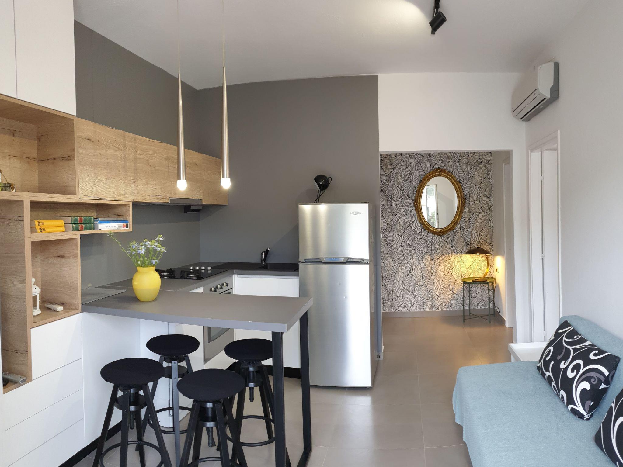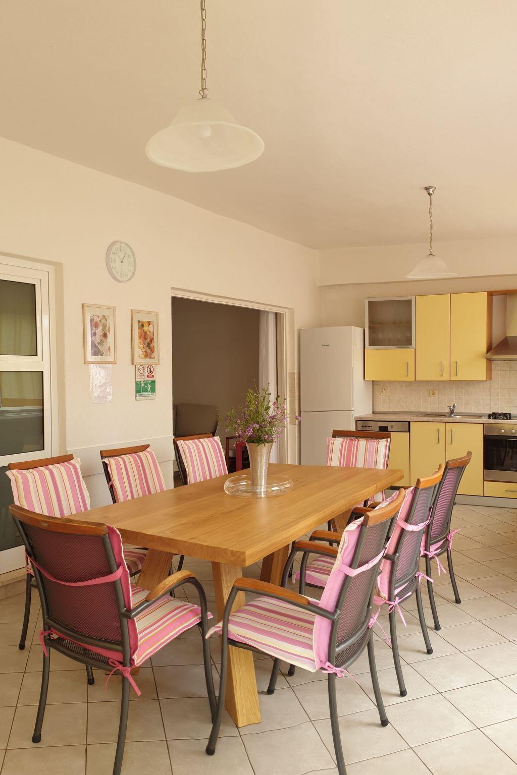 Both floors offer a sea view and have their own terrace (each 30m²) with terrace furniture and an awning. The Mediterranean garden belonging to the house has figs, roses, cherries, strawberries, mandarins and olive trees and invites you to relax after an exciting day. It has a charcoal grill, where you can prepare delicious meat or fish dishes. Parking space for ten cars is available by the house.