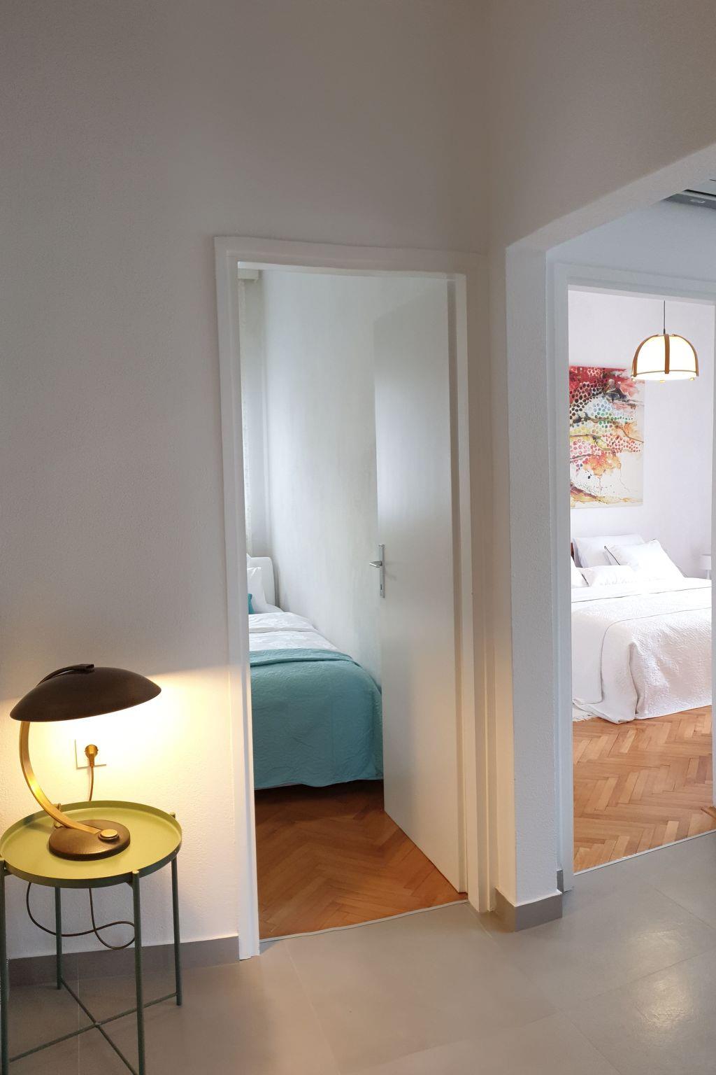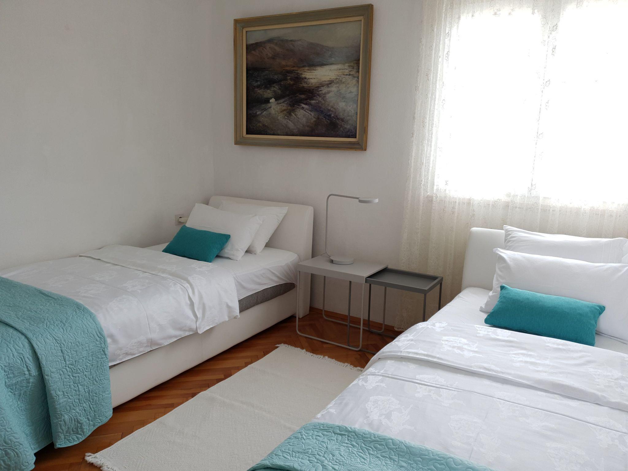 This simple and functionally furnished holiday house is just a few metres from a beautiful sandy beach. It is in quiet surroundings, two kilometres from Rogoznica. The house has two floors, each with one residential unit, connected by outdoor stairs. This makes it ideal for two families who would like to spend their holiday together.