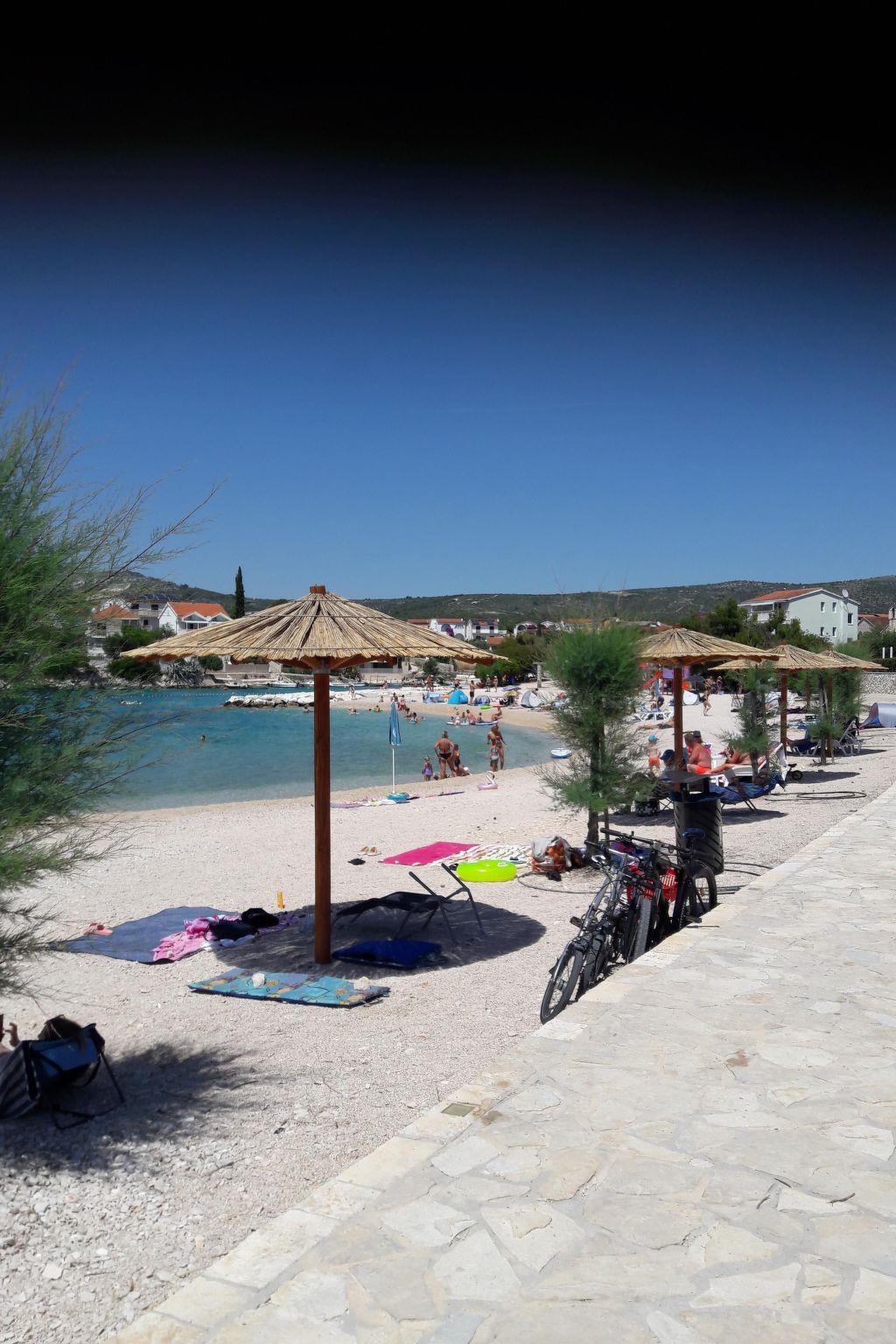 The house offers two large (80m2) holiday apartments, which are just 100 metres from the beach. Both apartments are ideal for families with children. The house is surrounded by a Mediterranean garden with figs, olive trees, wine grapes, pomegranates, rosemary, lavender, mandarins and lemon trees. The grill in the garden and the little slide for children are available for use. Parking spaces are free.