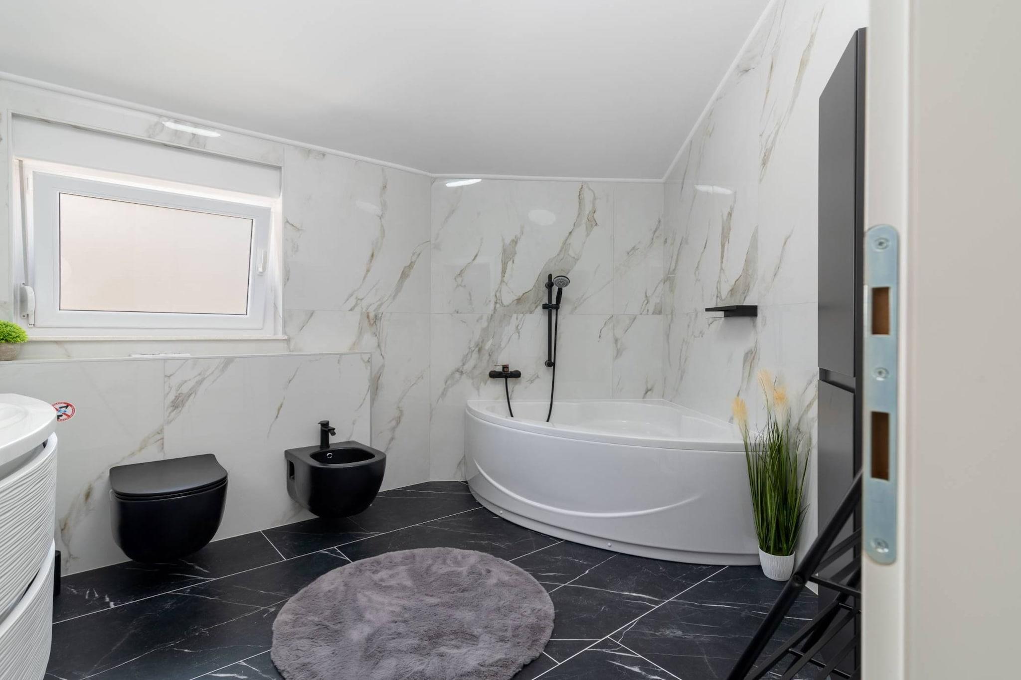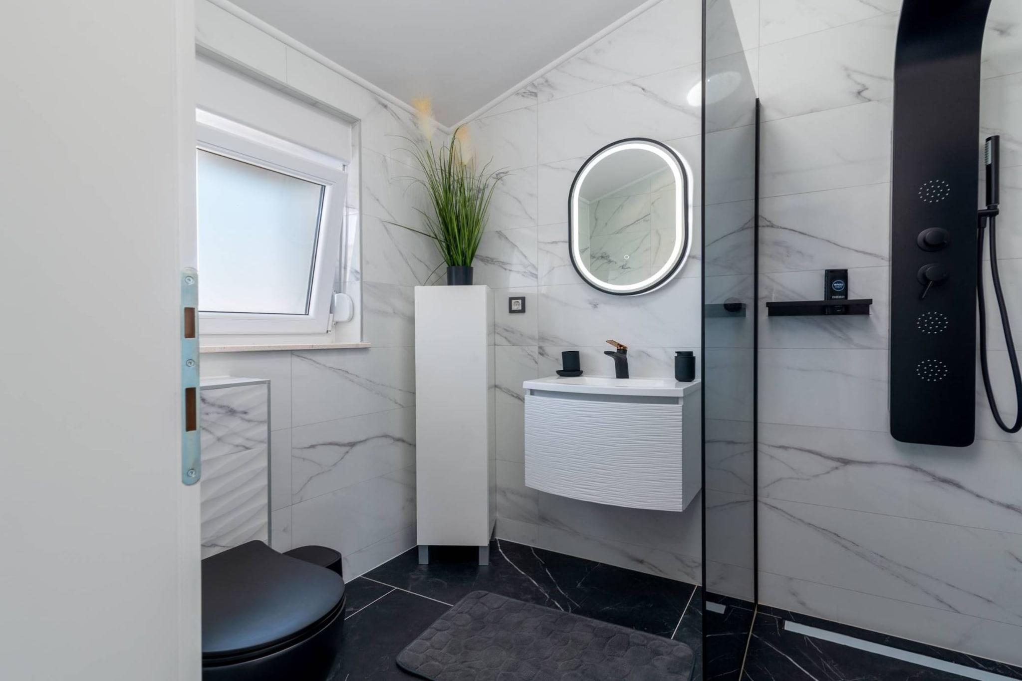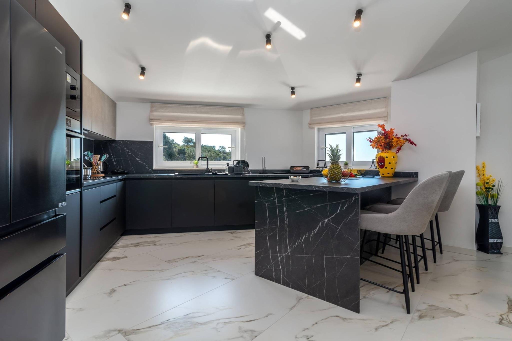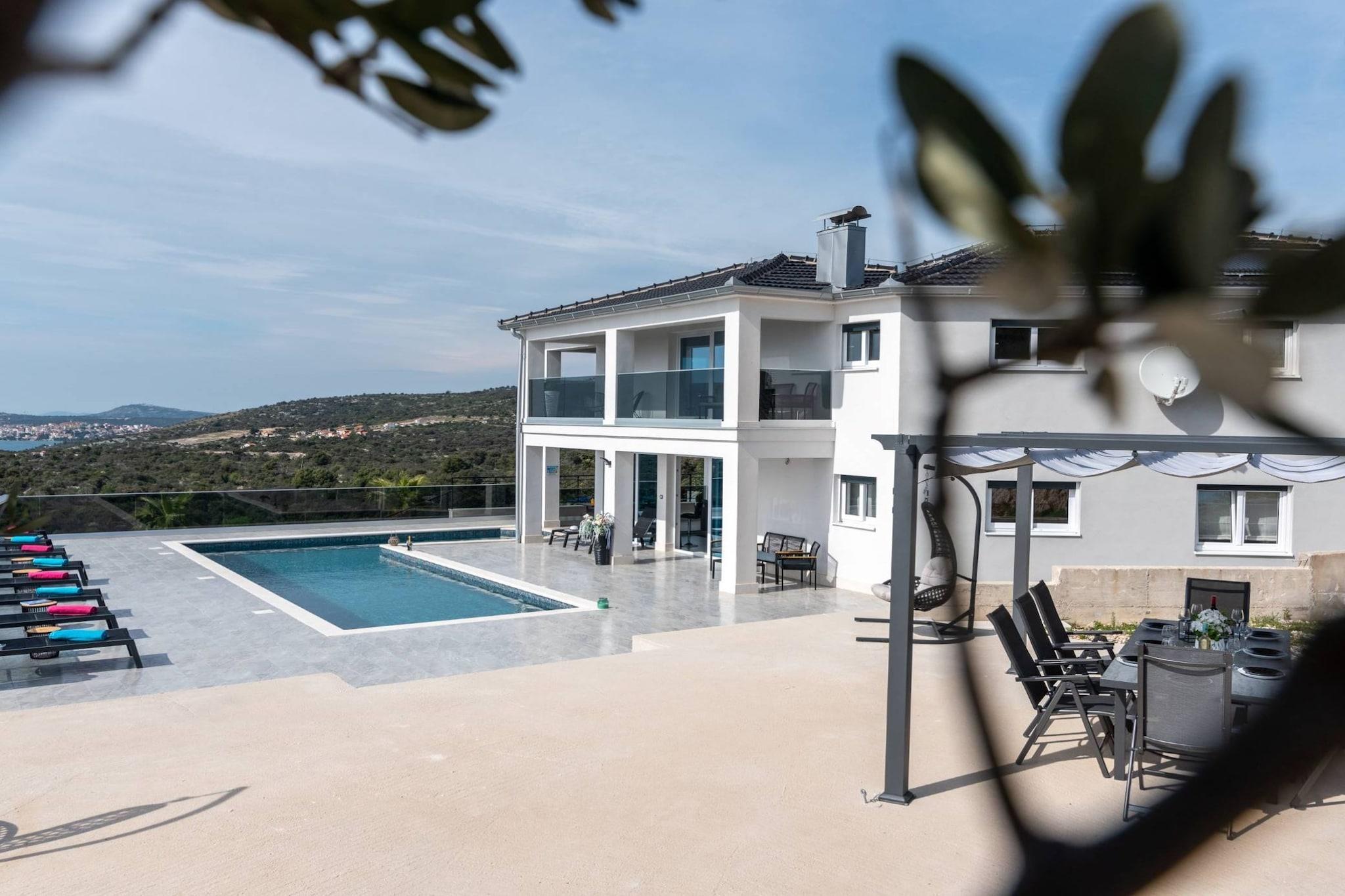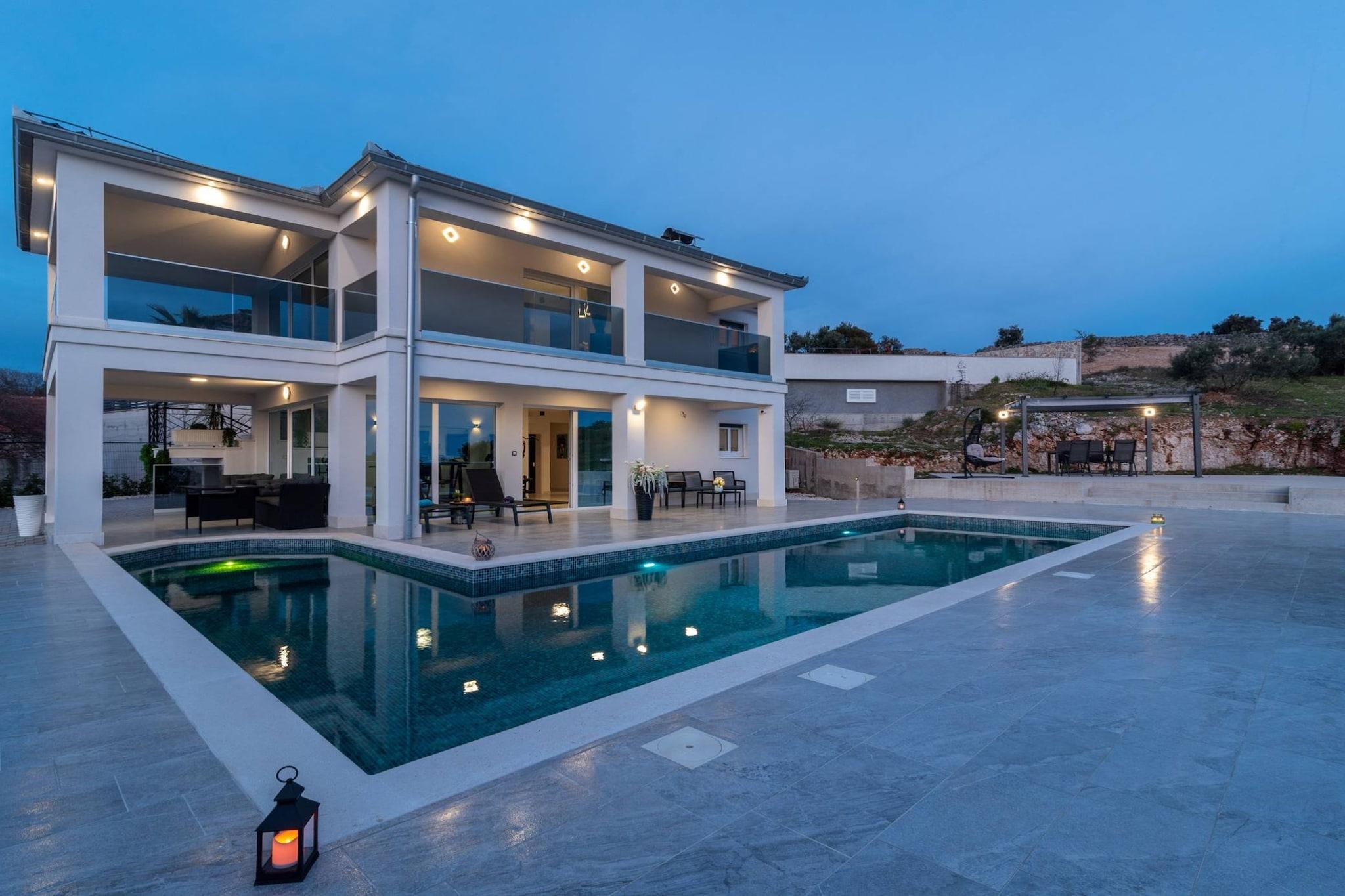 Luminous Infinity Villa is a luxurious rental property located in Rogoznica, a picturesque coastal town in Split-Dalmatia County, Croatia. Known for its stunning views of the Adriatic Sea, this villa combines modern amenities with an elegant design, making it an ideal destination for relaxation and leisure.Luminous Infinity Villa in Rogoznica offers a unique blend of luxury, comfort, and breathtaking views, making it an ideal choice for travelers looking to experience the beauty of Croatia's Dalmatian coast. Note: Baby cot is available on request. Pets are not allowed. Private parking, reservation is not required. Free Wi-fi is available throughout the property. This six-bedroom can accommodate up to twelve guests. It features a TV and is combined with a living room and kitchen. The private bathroom is equipped with a shower and toilet. Thanks to its excellent location, everything you'll need for your vacation is just a short walk away from the property. Grocery stores-4.08 km , cafes and restaurants—1.30 km . The beach is 1.16 km away from the property. The airport is 24 km away from the property.