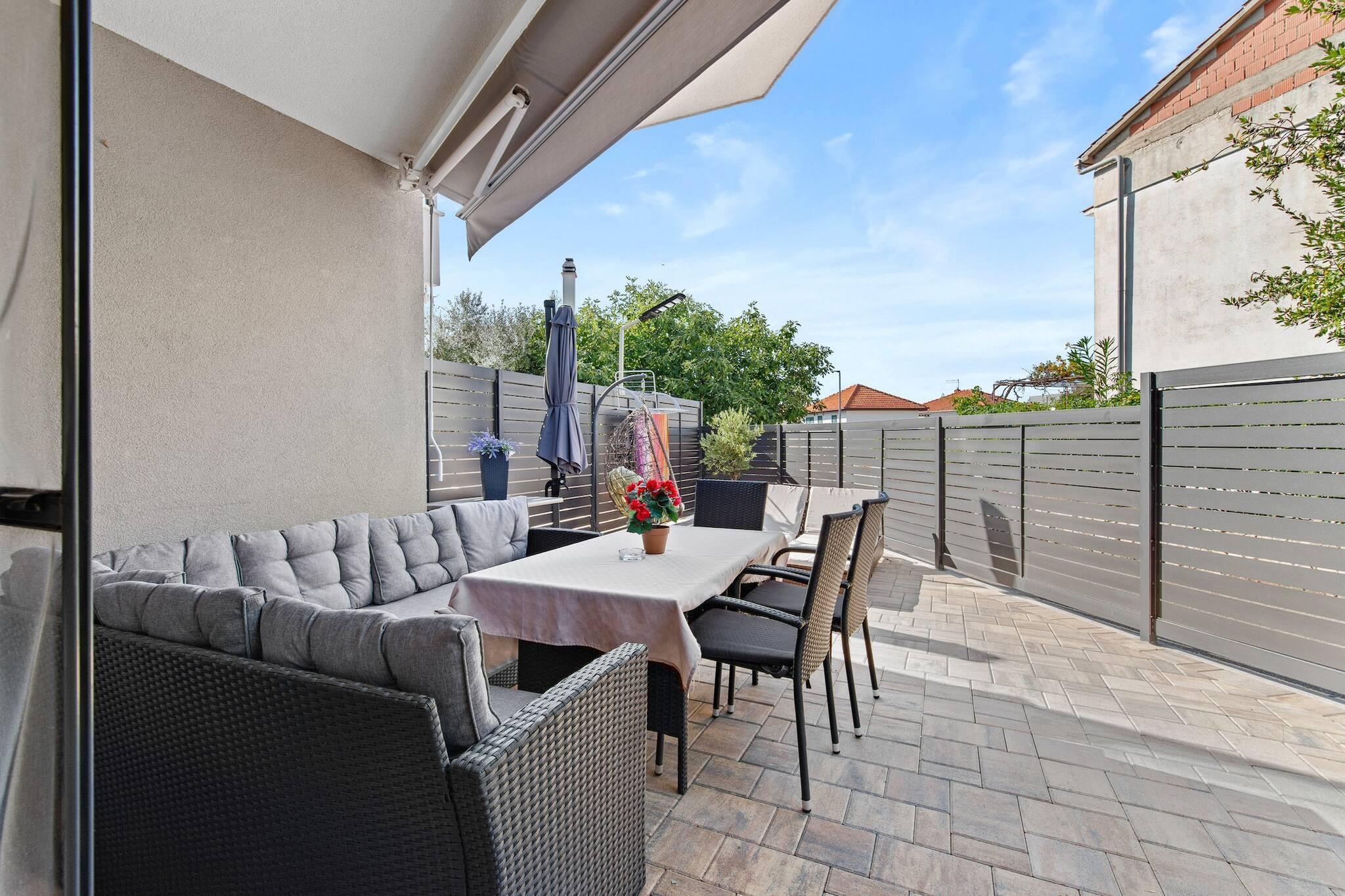 Denne veldesignede ferieleiligheten tilbyr en sjenerøs planløsning for opptil seks gjester, med to soverom med en king-size og en queen-size seng, pluss en dobbel sovesofa i stuen. Ideell for familier eller par, sikrer eiendommen et kjæledyrfritt og røykfritt miljø. Gjestene kan nyte en privat terrasse med hagemøbler og tilgang til en inngjerdet hage og grillplass, noe som gjør den perfekt for utendørs måltider og avslapning. Leiligheten ligger kun 500 meter fra Lozica-stranden, og gir enkel tilgang til både sand- og steinkystlinjer. Dens førsteklasses beliggenhet i Rogoznica plasserer gjestene i nærheten av en lokal kaffebar og en rekke kyststier som er ideelle for fotturer eller sykling. For dagsturer er Lake Dragon's Eye bare 3 kilometer unna, mens Split lufthavn (34 km) og den pittoreske Krka nasjonalpark (45 km) også er innen rekkevidde. Området er familievennlig, fredelig og godt forbundet, noe som gjør det til en flott base for å utforske den dalmatiske kysten. Innvendig har leiligheten et fullt utstyrt kjøkken med induksjonskomfyr, oppvaskmaskin, stekeovn, mikrobølgeovn, kaffemaskin og alt nødvendig kjøkkenutstyr – perfekt for å tilberede fulle måltider. En flatskjerm-TV med satellittkanaler, spiseplass og en innbydende stue tilbyr komfort og funksjonalitet, mens det moderne badet inkluderer rene håndklær, sengetøy og sluttrengjøring uten ekstra kostnad. Med sin egen inngang og oppmerksomhet på detaljer, kombinerer denne leiligheten bekvemmelighet, stil og funksjonalitet for en komplett ferieopplevelse.