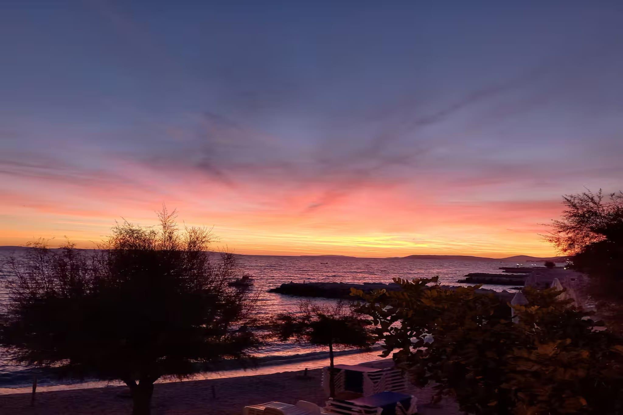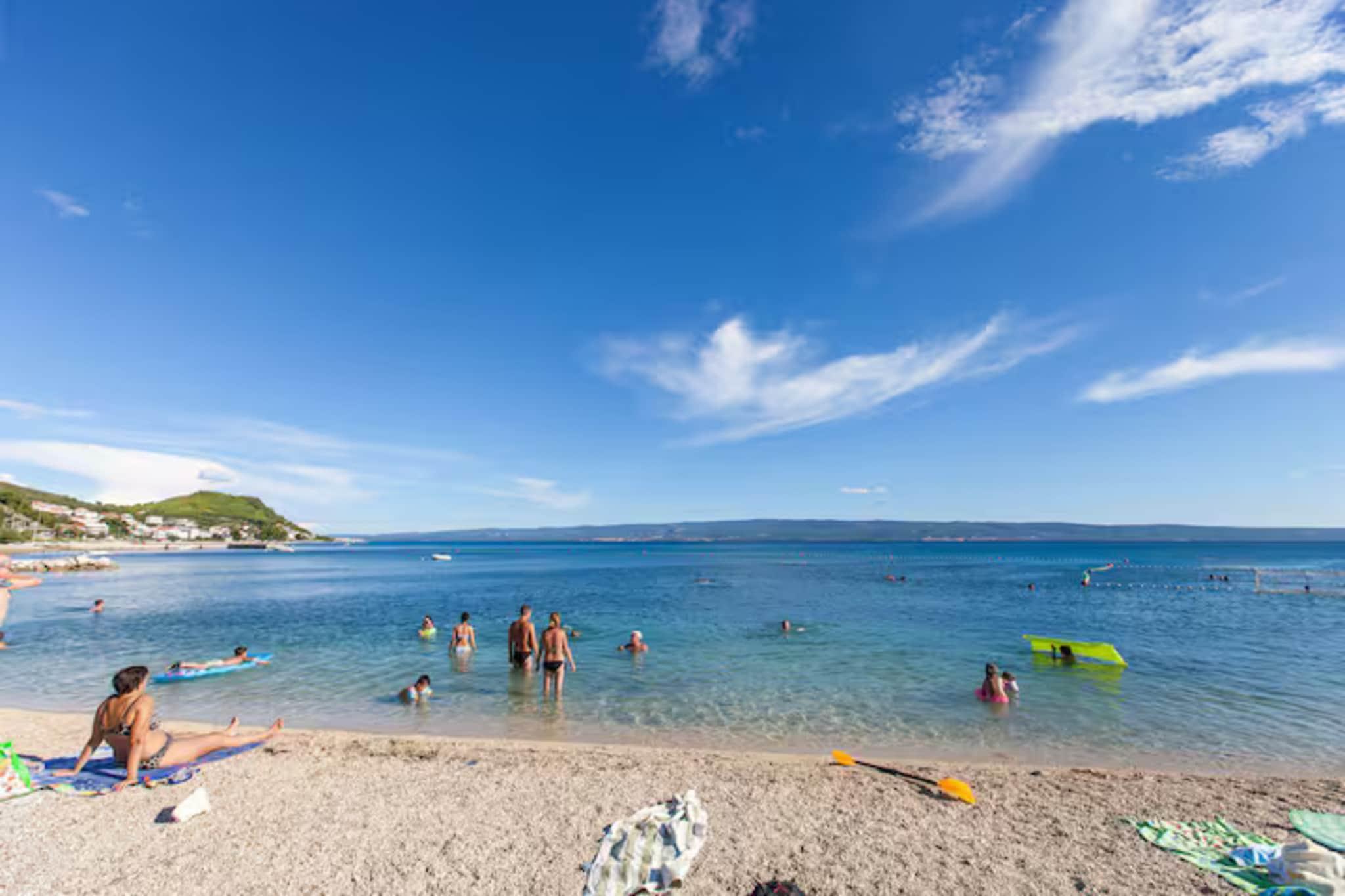 Denne godt plasserte ferieleiligheten på 40 m² tilbyr et koselig og fleksibelt tilfluktssted for opptil fire gjester. Boligen har ett soverom med dobbeltseng og en dobbel sovesofa i stuen, noe som gjør den ideell for familier eller små grupper. Ett lite, veloppdragen kjæledyr er velkommen mot en ekstra avgift, og leiligheten har egen inngang for gjestenes bekvemmelighet. Nyt havutsikten fra den møblerte terrassen og dra nytte av felles utendørsfasiliteter, inkludert en hage, grillplass og vaskemaskin. En enkelt utendørs parkeringsplass tilbys gratis. Enheten har klimaanlegg, røykfri og designet for et rolig, avslappet opphold. Bare 100 meter fra både sand- og steinstrender, er leilighetens beliggenhet perfekt for strandgjengere. Gjestene kan utforske lokale attraksjoner som naturskjønne Lake Dragon's Eye, som ligger 6 km unna, eller slappe av på nærliggende steder som Siesta Restaurant og Beach Bar Duxy. Daglige behov dekkes enkelt med Studenac-markedet kun 3 km fra eiendommen. Med Split lufthavn omtrent 31 km unna, er denne Rogoznica-leiligheten både tilgjengelig og ideell beliggenhet for en avslappet kystferie. Innvendig har leiligheten et funksjonelt kjøkken utstyrt med komfyr, stekeovn, kjøleskap, kaffemaskin og nødvendig kjøkkenutstyr – ideelt for selvbetjente opphold. Et koselig oppholdsområde inkluderer Wi-Fi, TV og sitteplasser for innendørs avslapning. Aircondition opprettholder komforten i varme sommermåneder, og alle nødvendigheter som håndklær, sengetøy og sluttrengjøring er inkludert.