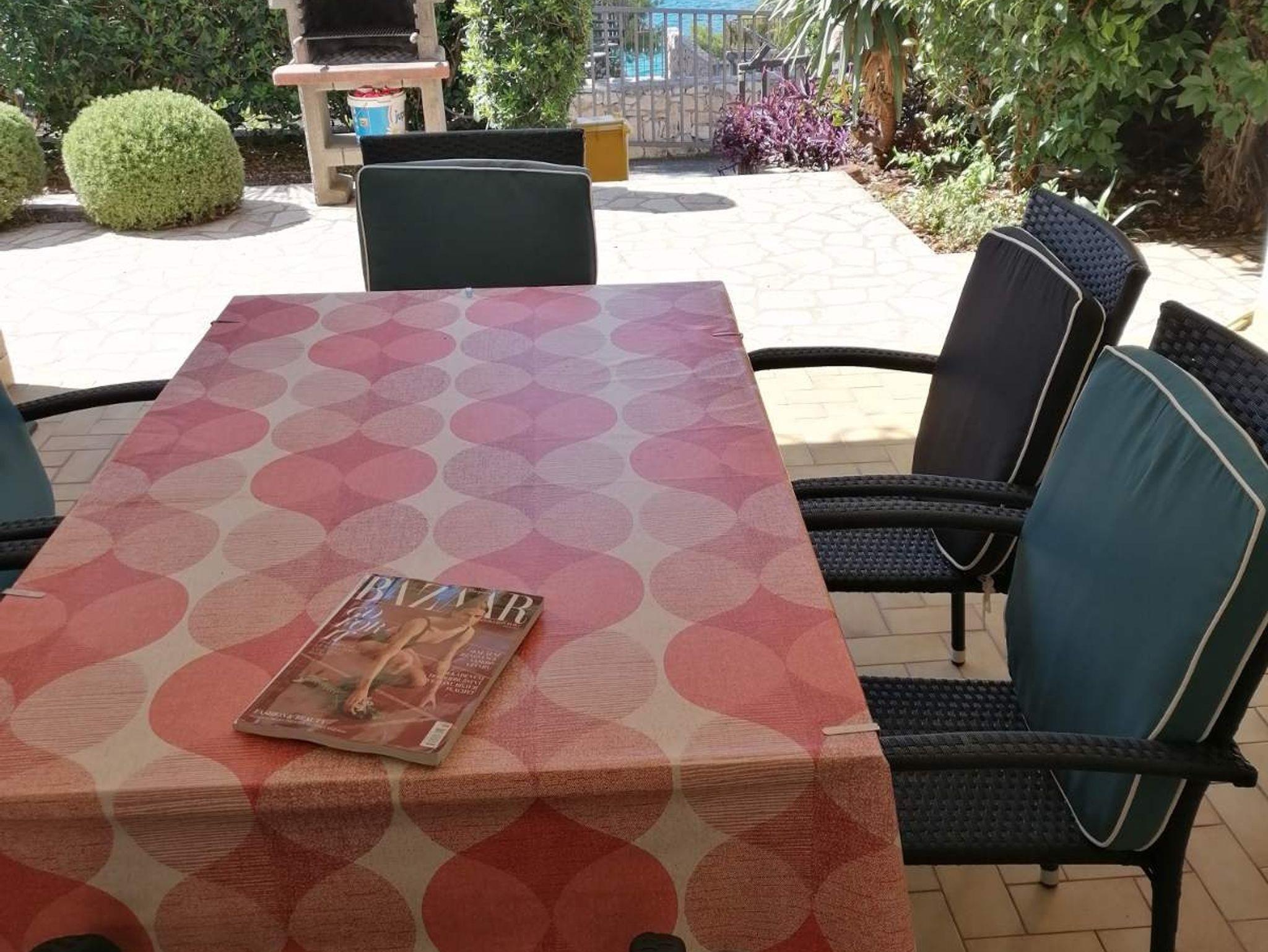 Ferienwohnung bietet Platz für 5 Gäste. Die Betten sind in Schlafzimmern, die es 3 gibt, innerhalb einer Gesamtfläche von 49m2, angeordnet. Die Gäste haben eine eigene Terrasse zur Verfügung, auf der sie in warmen Sommernächten genießen können. Das Apartment bietet Meerblick. Für vollen Genuss und Entspannung gibt es einen privaten Grill für Gäste dieser Unterkunft. IM PREIS INBEGRIFFEN: Kurtaxe, Endreinigung, Klimatisierung, Parkplatz, Internet, Bootsanlegeplatz, Bügeleisen, Föhn, Sonnenschirm, Liegestühle. Die Verfügbarkeit zusätzlicher Dienstleistungen in Ihrem reservierten Termin und die Preise derselben (falls nicht aufgeführt) müssen im Voraus überprüft werden. Zusätzliche Dienstleistungen die in der Zahlungsaufforderung nicht aufgeführt sind werden direkt beim Vermieter bezahlt, angenommen der Gast nutzt auch diese.