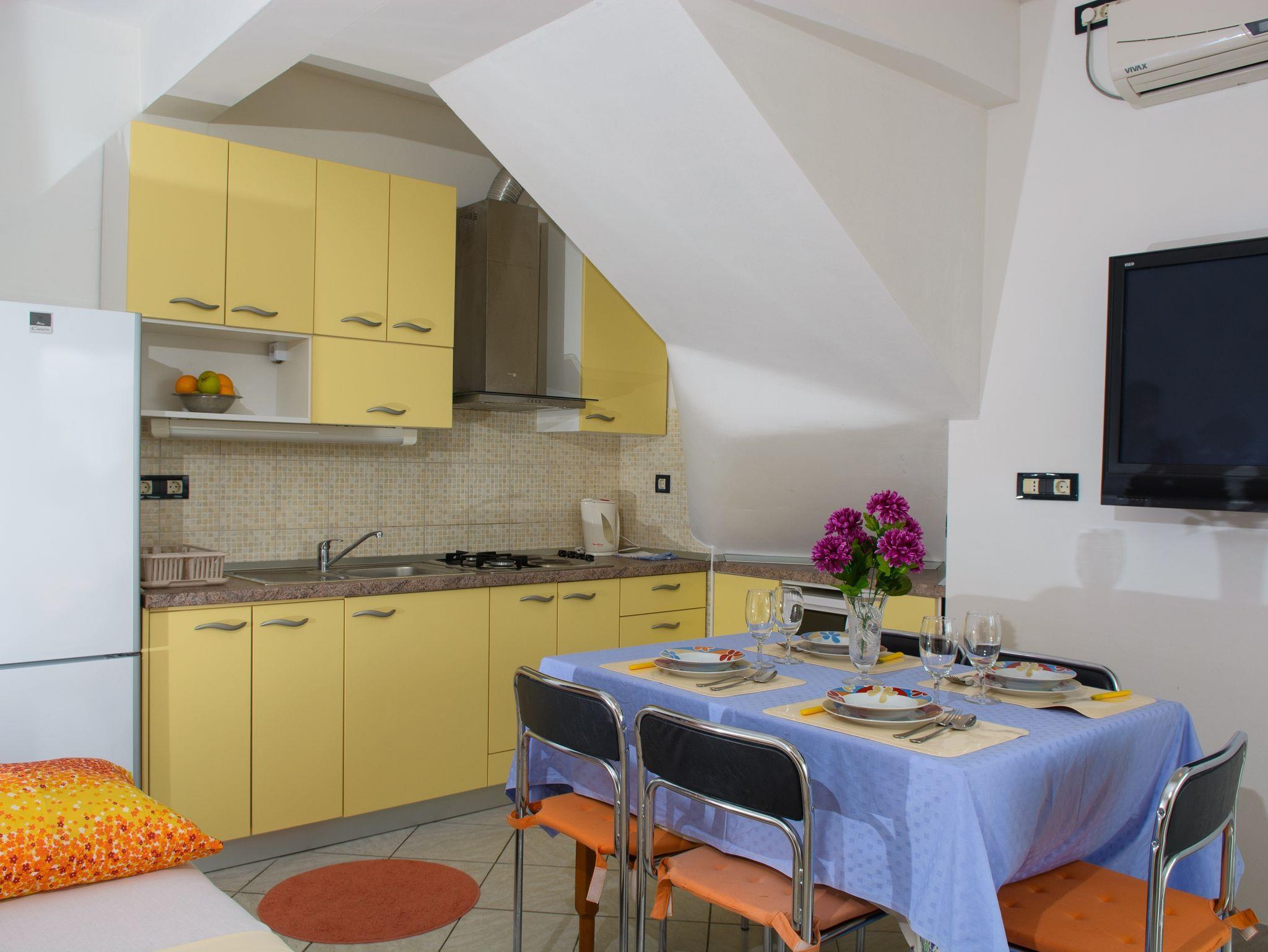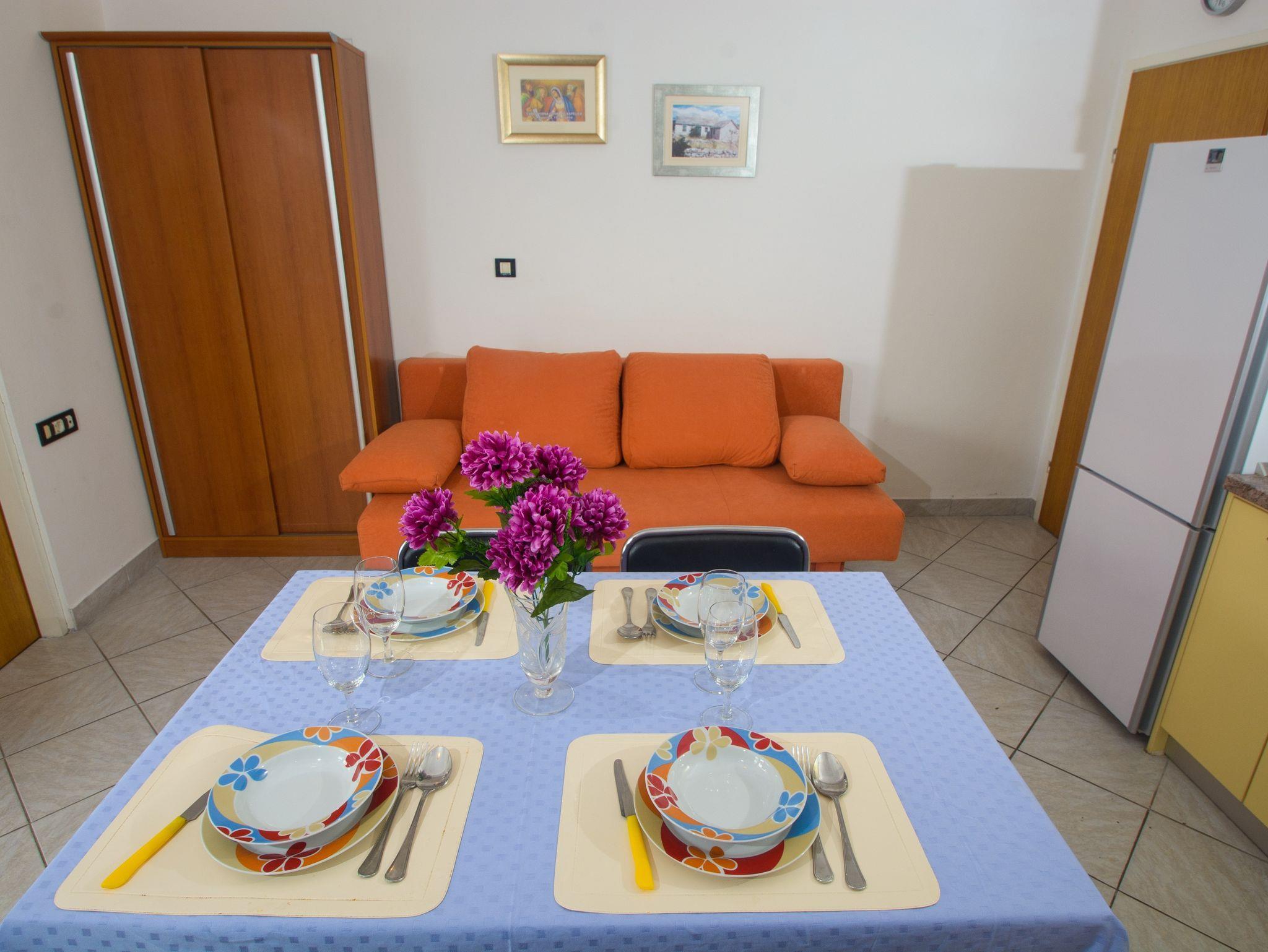 Ferienwohnung bietet Platz für 4 Gäste. Die Betten sind in Schlafzimmern, die es 1 gibt, und in Esszimmer, innerhalb einer Gesamtfläche von 34m2, angeordnet. Die Gäste haben eine eigene Terrasse zur Verfügung, auf der sie in warmen Sommernächten genießen können. Das Apartment bietet Meerblick. IM PREIS INBEGRIFFEN: Kurtaxe, Endreinigung, Klimatisierung, Parkplatz, Internet, Kinderbett, Zusatzbett, Bügeleisen, Föhn. VERBINDLICHE ZUSÄTZLICHE KOSTEN: Aufzahlung für Kurzaufenthalte (prozentualer Zuschlag pro Nächtigungsanzahl: 30% - 1, 20% - 2, 10% - 3). UNVERBINDLICHE ZUSÄTZLICHE KOSTEN: Bootsanlegeplatz (20,00 € pro Nacht). Die Verfügbarkeit zusätzlicher Dienstleistungen in Ihrem reservierten Termin und die Preise derselben (falls nicht aufgeführt) müssen im Voraus überprüft werden. Zusätzliche Dienstleistungen die in der Zahlungsaufforderung nicht aufgeführt sind werden direkt beim Vermieter bezahlt, angenommen der Gast nutzt auch diese.