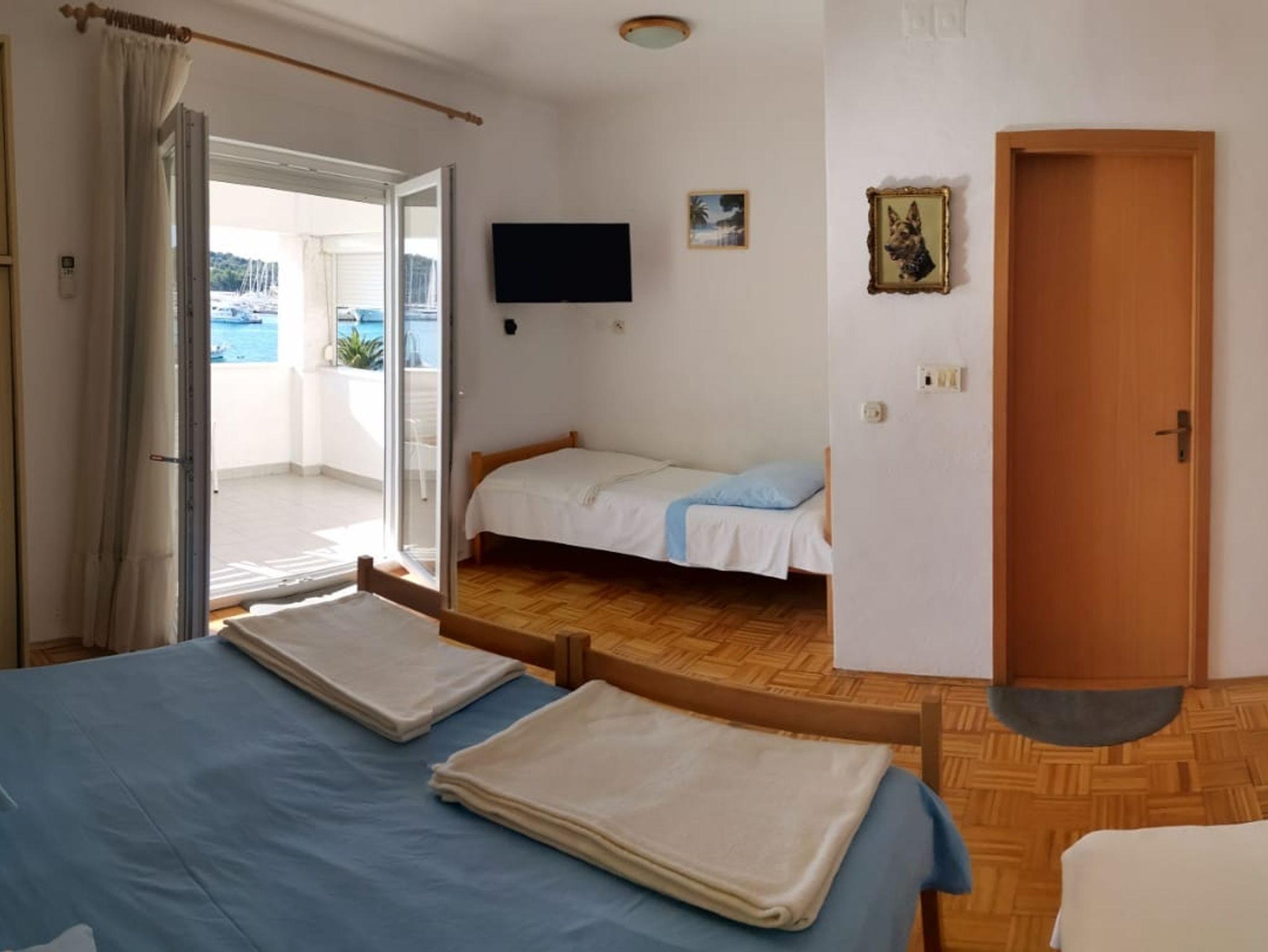 Ferienwohnung bietet Platz für 4 Gäste. Die Betten sind in Schlafzimmern, die es 1 gibt, innerhalb einer Gesamtfläche von 26m2, angeordnet. Die Gäste haben eine eigene Terrasse zur Verfügung, auf der sie in warmen Sommernächten genießen können. Das Apartment bietet Meerblick. IM PREIS INBEGRIFFEN: Kurtaxe, Endreinigung, Klimatisierung, Parkplatz, Internet, Kinderbett, Bügeleisen, Föhn. VERBINDLICHE ZUSÄTZLICHE KOSTEN: Aufzahlung für Kurzaufenthalte (prozentualer Zuschlag pro Nächtigungsanzahl: 30% - 1, 20% - 2, 10% - 3). UNVERBINDLICHE ZUSÄTZLICHE KOSTEN: Bootsanlegeplatz (20,00 € pro Nacht). Die Verfügbarkeit zusätzlicher Dienstleistungen in Ihrem reservierten Termin und die Preise derselben (falls nicht aufgeführt) müssen im Voraus überprüft werden. Zusätzliche Dienstleistungen die in der Zahlungsaufforderung nicht aufgeführt sind werden direkt beim Vermieter bezahlt, angenommen der Gast nutzt auch diese.