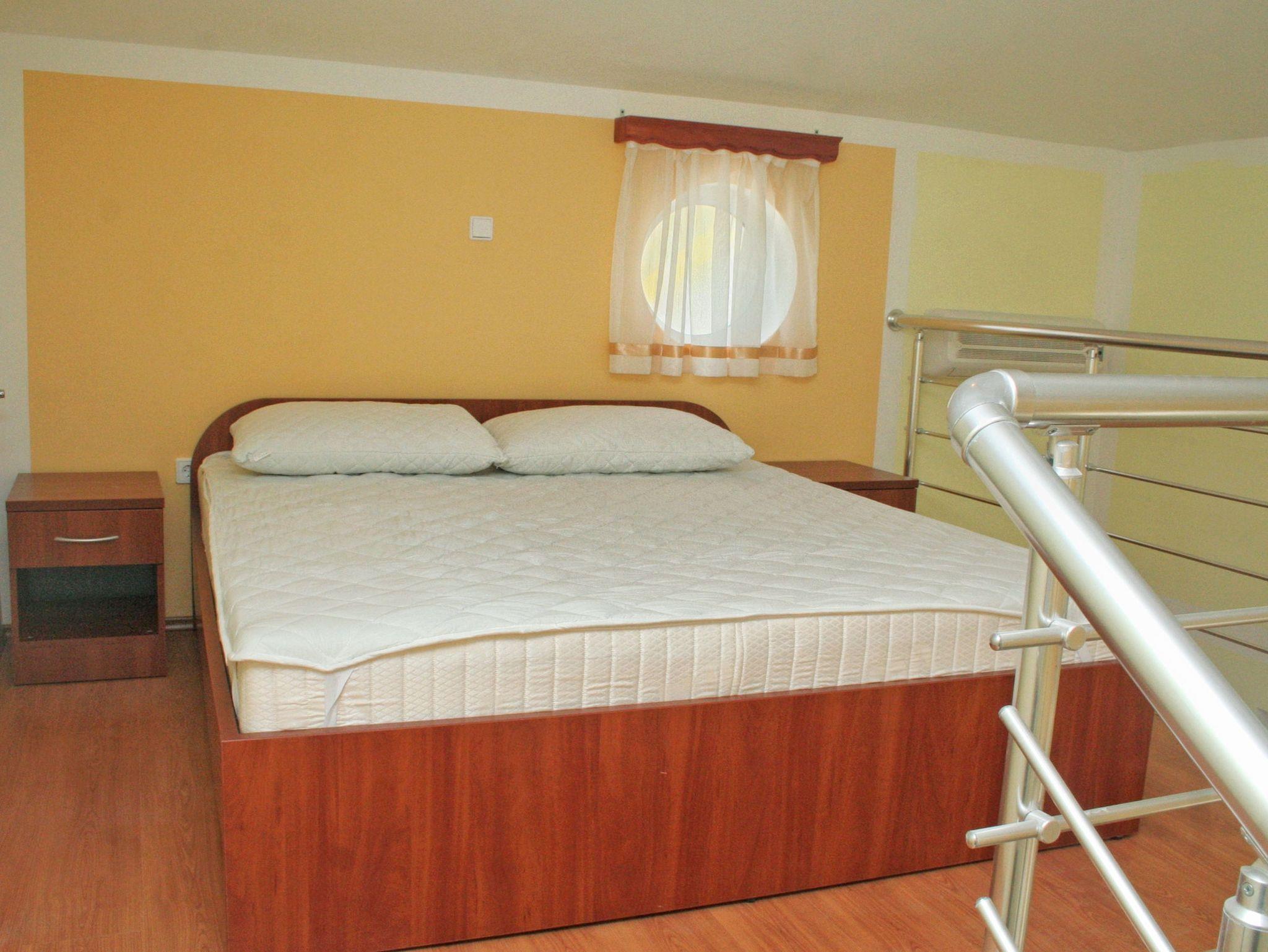Studio bietet Platz für 2 Gäste. Die Betten sind in Schlafzimmern, die es 1 gibt, innerhalb einer Gesamtfläche von 31m2, angeordnet. Die Gäste haben eine eigene Terrasse zur Verfügung, auf der sie in warmen Sommernächten genießen können. Es ist erlaubt, Speisen auf dem Gemeinschafts-Grill vorzubereiten. In der Unterkunftseinheit besteht die Möglichkeit des Mitbringens von Haustieren gegen Aufpreis. In der gebuchten Unterkunftseinheit zahlt man am Ort ein Depositum ( der Preis ist an der Internetseite angeführt ). IM PREIS INBEGRIFFEN: Kurtaxe, Endreinigung, Klimatisierung, Parkplatz, Internet, Kinderbett, Föhn. VERBINDLICHE ZUSÄTZLICHE KOSTEN: Kaution (100,00 € Einmalzahlung), Aufzahlung für Kurzaufenthalte (prozentualer Zuschlag pro Nächtigungsanzahl: 30% - 1, 20% - 2, 10% - 3). UNVERBINDLICHE ZUSÄTZLICHE KOSTEN: Wäschewaschen (5,00 € Waschen), Bootsanlegeplatz (25,00 € pro Nacht), Haustiere (20,00 € pro Nacht). Die Verfügbarkeit zusätzlicher Dienstleistungen in Ihrem reservierten Termin und die Preise derselben (falls nicht aufgeführt) müssen im Voraus überprüft werden. Zusätzliche Dienstleistungen die in der Zahlungsaufforderung nicht aufgeführt sind werden direkt beim Vermieter bezahlt, angenommen der Gast nutzt auch diese.