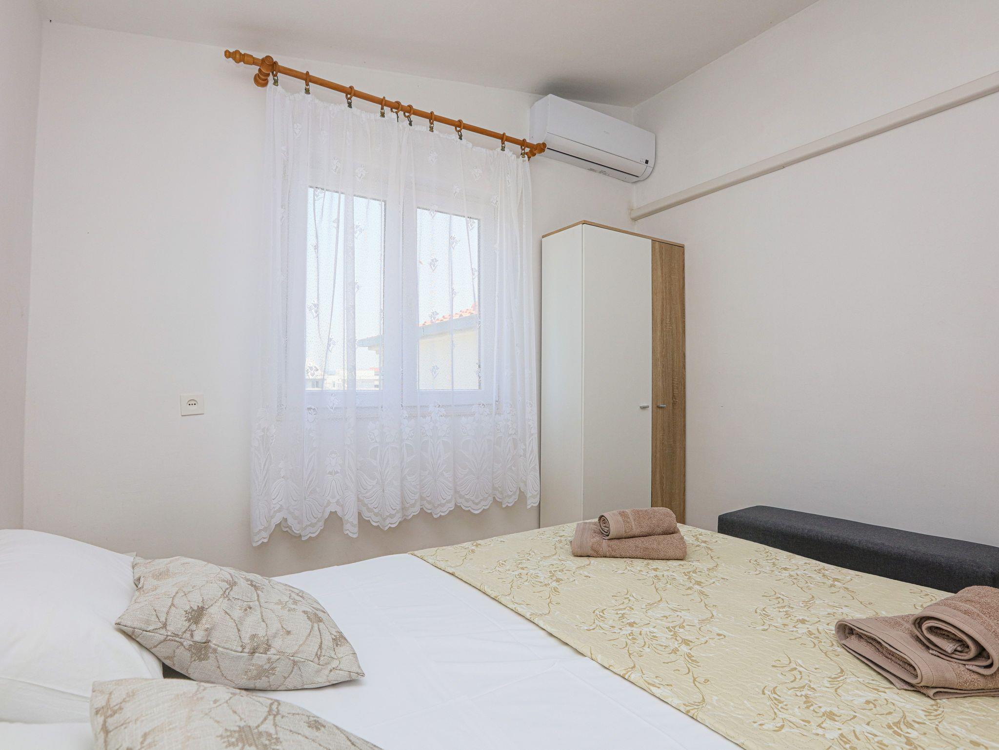 Ferienwohnung bietet Platz für 4 Gäste. Die Betten sind in Schlafzimmern, die es 2 gibt, innerhalb einer Gesamtfläche von 36m2, angeordnet. Die Gäste haben eine eigene Terrasse zur Verfügung, auf der sie in warmen Sommernächten genießen können. Durch die Terrasse der gebuchten Unterkunftseinheit gehen auch andere Gäste oder Vermieter. IM PREIS INBEGRIFFEN: Kurtaxe, Endreinigung, Klimatisierung, Parkplatz, Internet. Die Verfügbarkeit zusätzlicher Dienstleistungen in Ihrem reservierten Termin und die Preise derselben (falls nicht aufgeführt) müssen im Voraus überprüft werden. Zusätzliche Dienstleistungen die in der Zahlungsaufforderung nicht aufgeführt sind werden direkt beim Vermieter bezahlt, angenommen der Gast nutzt auch diese. Ermäßigung auf den Grundpreis: Gratistag 14=13 (bei einem Aufenthalt von 14 Tagen oder mehr erhalten Sie einen Gratistag für den Aufenthalt bis 31.12.26).