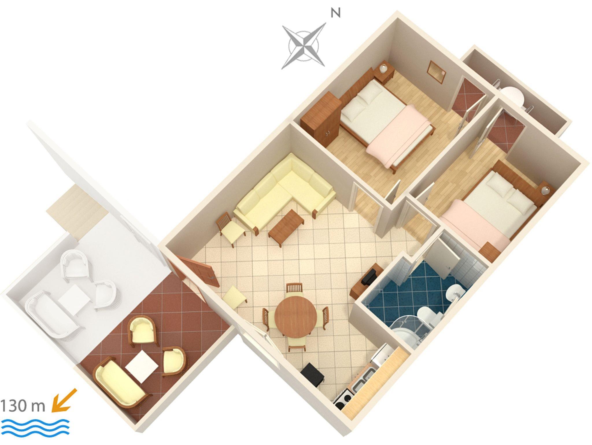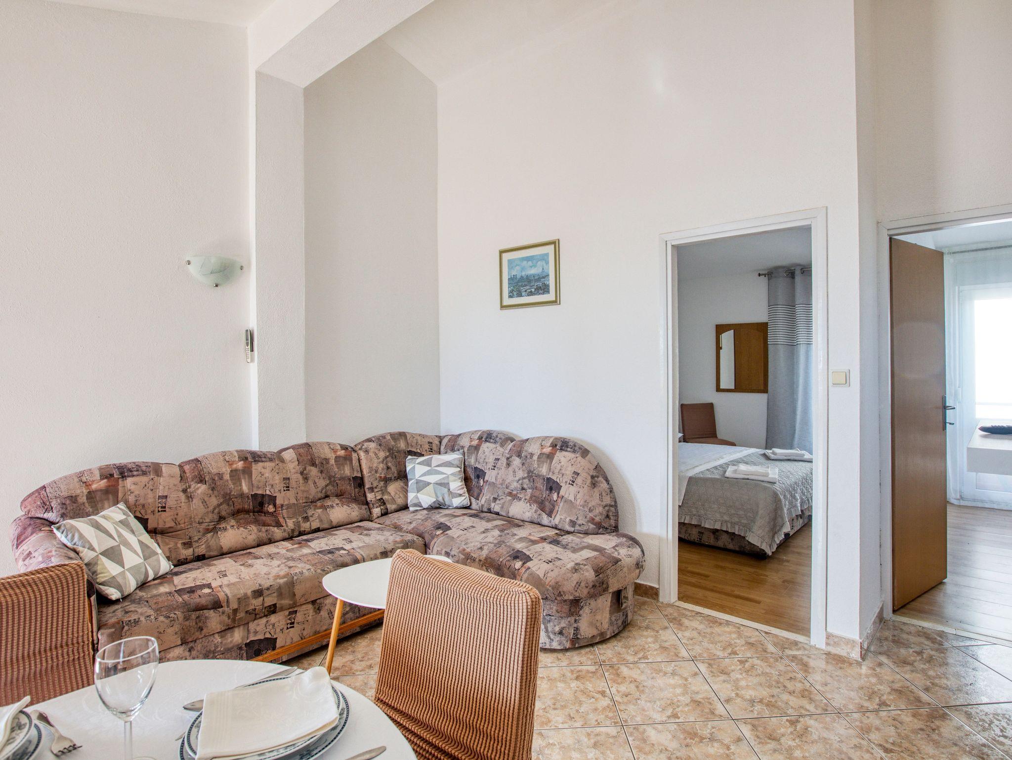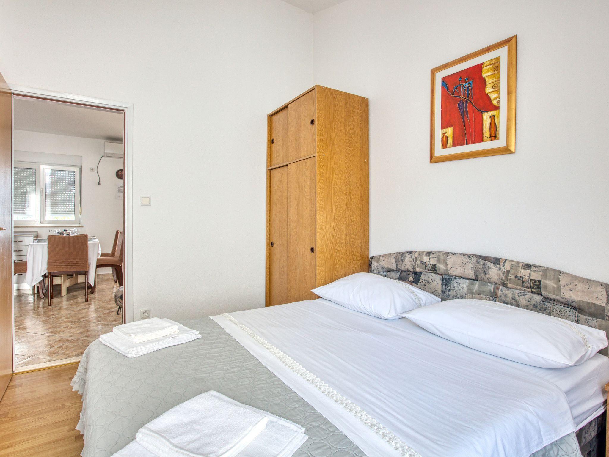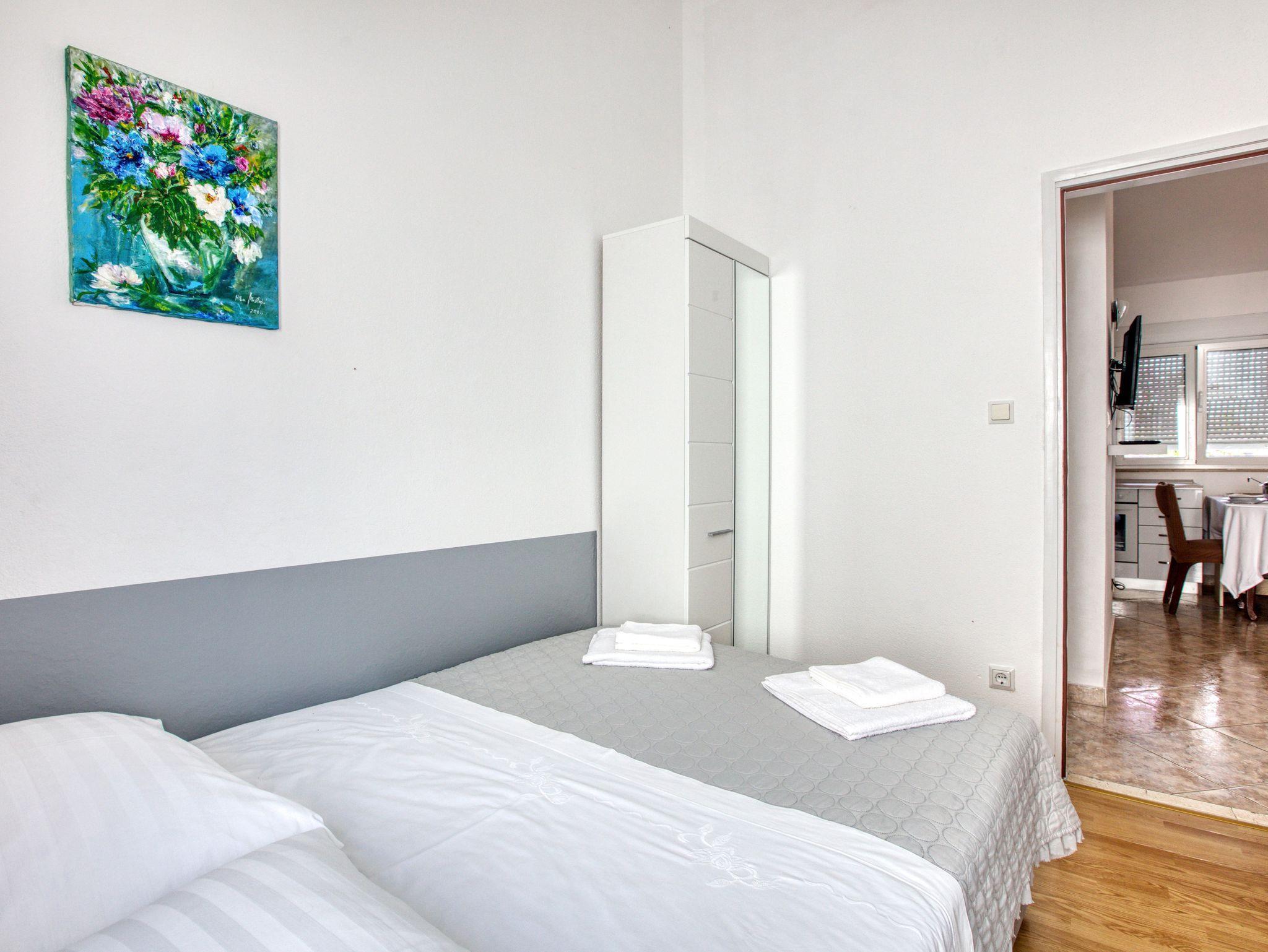 Ferienwohnung bietet Platz für 4 Gäste. Die Betten sind in Schlafzimmern, die es 2 gibt, innerhalb einer Gesamtfläche von 36m2, angeordnet. Die Gäste haben einen eigenen Balkon zur Verfügung, auf der sie in warmen Sommernächten genießen können. Das Apartment bietet Meerblick. Es ist erlaubt, Speisen auf dem Gemeinschafts-Grill vorzubereiten. Die reservierte Unterkunftseinheit verfügt über einen gemeinsame Terrasse. IM PREIS INBEGRIFFEN: Kurtaxe, Endreinigung, Klimatisierung, Parkplatz, Internet, Wäschewaschen, Kinderbett, Bügeleisen, Föhn, Sonnenschirm. VERBINDLICHE ZUSÄTZLICHE KOSTEN: Aufzahlung für Kurzaufenthalte (prozentualer Zuschlag pro Nächtigungsanzahl: 30% - 1, 20% - 2, 10% - 3). Die Verfügbarkeit zusätzlicher Dienstleistungen in Ihrem reservierten Termin und die Preise derselben (falls nicht aufgeführt) müssen im Voraus überprüft werden. Zusätzliche Dienstleistungen die in der Zahlungsaufforderung nicht aufgeführt sind werden direkt beim Vermieter bezahlt, angenommen der Gast nutzt auch diese.