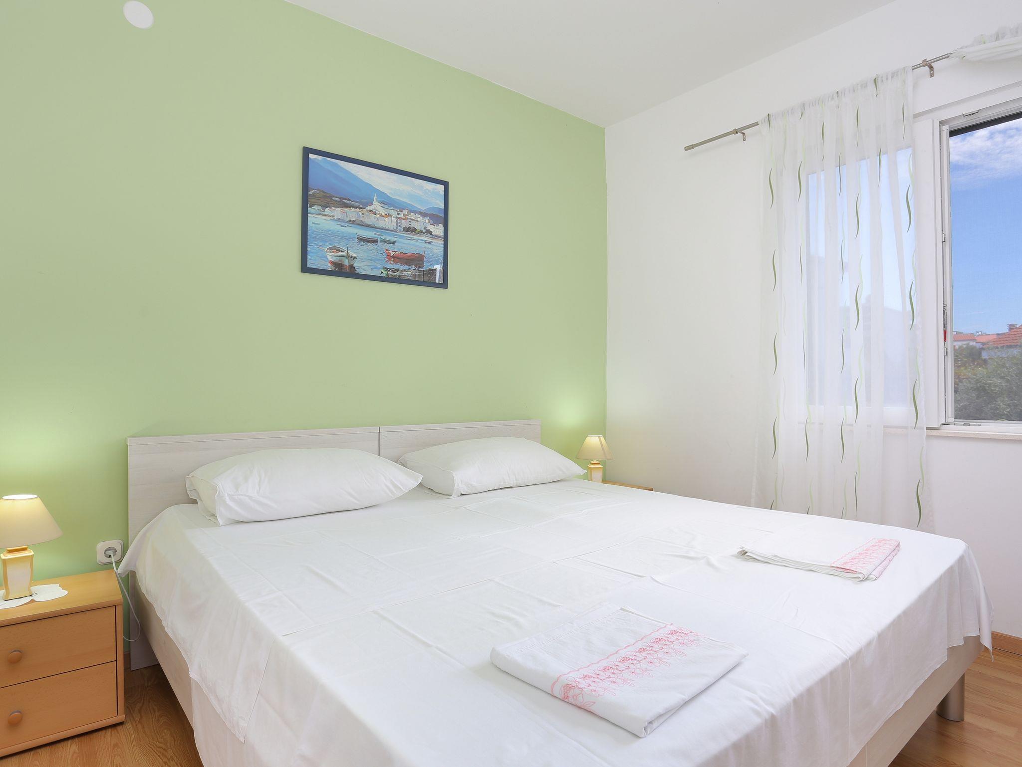 Ferienwohnung bietet Platz für 6 Gäste. Die Betten sind in Schlafzimmern, die es 3 gibt, innerhalb einer Gesamtfläche von 56m2, angeordnet. Die Gäste haben eine eigene Terrasse zur Verfügung, auf der sie in warmen Sommernächten genießen können. Das Apartment bietet Meerblick. Es ist erlaubt, Speisen auf dem Gemeinschafts-Grill vorzubereiten. In der Unterkunftseinheit besteht die Möglichkeit des Mitbringens von Haustieren gegen Aufpreis. IM PREIS INBEGRIFFEN: Kurtaxe, Endreinigung, Parkplatz, Internet, Bügeleisen, Bügelbrett, Föhn. UNVERBINDLICHE ZUSÄTZLICHE KOSTEN: Klimatisierung (5,00 € pro Nacht), Bootsanlegeplatz (10,00 € pro Nacht), Haustiere (6,00 € pro Nacht), Zusatzbett (15,00 € pro Nacht). Die Verfügbarkeit zusätzlicher Dienstleistungen in Ihrem reservierten Termin und die Preise derselben (falls nicht aufgeführt) müssen im Voraus überprüft werden. Zusätzliche Dienstleistungen die in der Zahlungsaufforderung nicht aufgeführt sind werden direkt beim Vermieter bezahlt, angenommen der Gast nutzt auch diese.