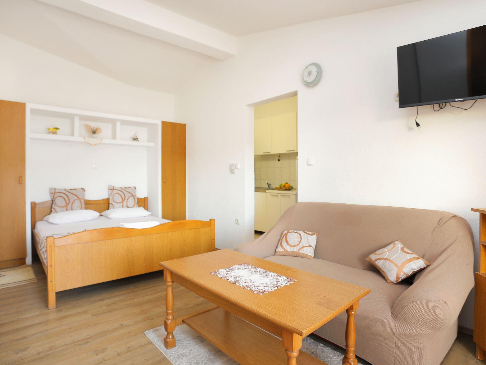 Ferienwohnung bietet Platz für 4 Gäste. Die Betten sind in Schlafzimmern, die es 1 gibt, und in Wohnzimmer, innerhalb einer Gesamtfläche von 29m2, angeordnet. Die Gäste haben einen eigenen Balkon zur Verfügung, auf der sie in warmen Sommernächten genießen können. Das Apartment bietet Meerblick. Es ist erlaubt, Speisen auf dem Gemeinschafts-Grill vorzubereiten. IM PREIS INBEGRIFFEN: Kurtaxe, Endreinigung, Klimatisierung, Parkplatz, Internet, Kinderbett, Bügeleisen, Bügelbrett. VERBINDLICHE ZUSÄTZLICHE KOSTEN: Aufzahlung für Kurzaufenthalte (prozentualer Zuschlag pro Nächtigungsanzahl: 30% - 1, 20% - 2, 10% - 3). UNVERBINDLICHE ZUSÄTZLICHE KOSTEN: Wäschewaschen (1,00 € Waschen). Die Verfügbarkeit zusätzlicher Dienstleistungen in Ihrem reservierten Termin und die Preise derselben (falls nicht aufgeführt) müssen im Voraus überprüft werden. Zusätzliche Dienstleistungen die in der Zahlungsaufforderung nicht aufgeführt sind werden direkt beim Vermieter bezahlt, angenommen der Gast nutzt auch diese.