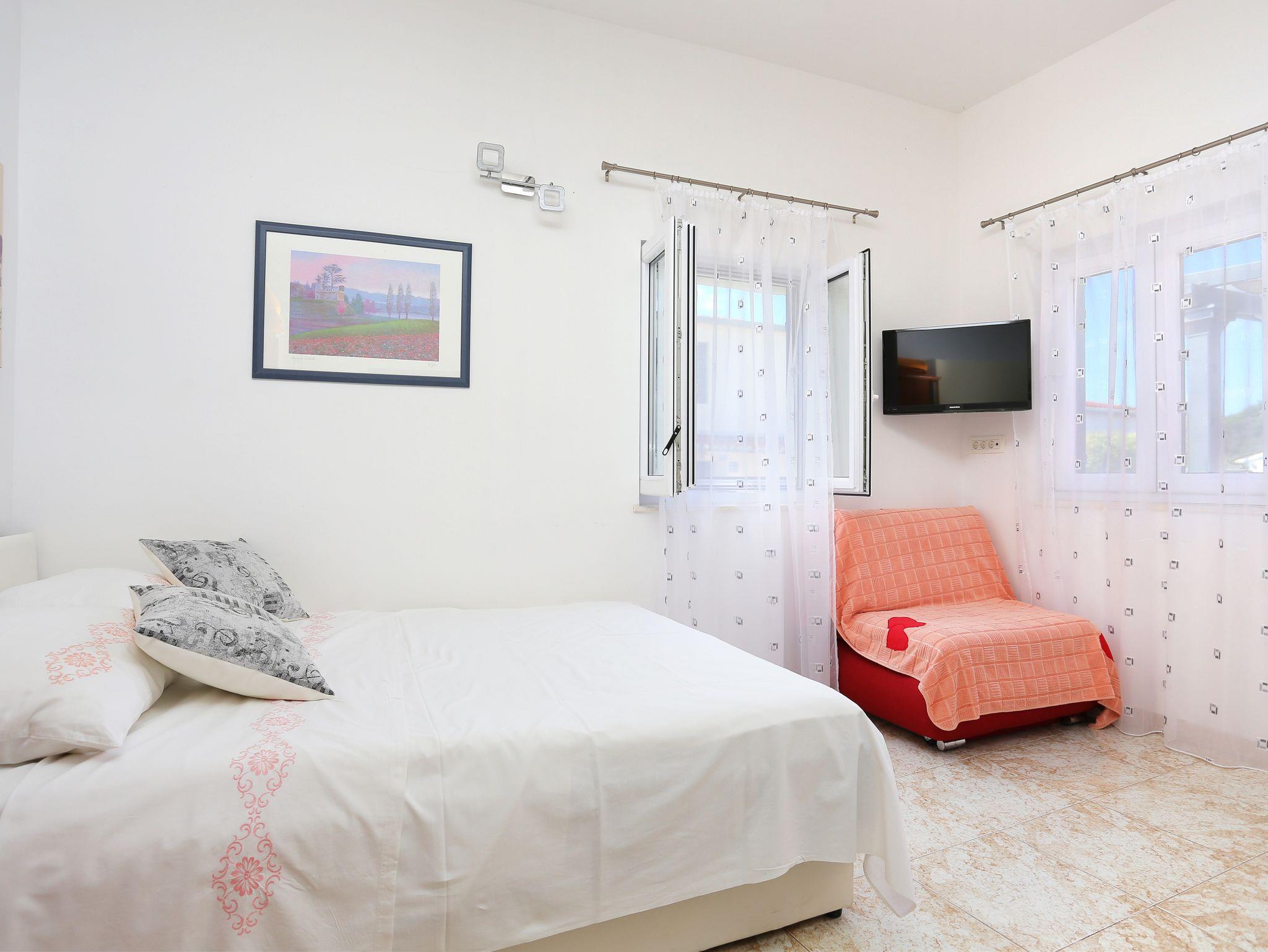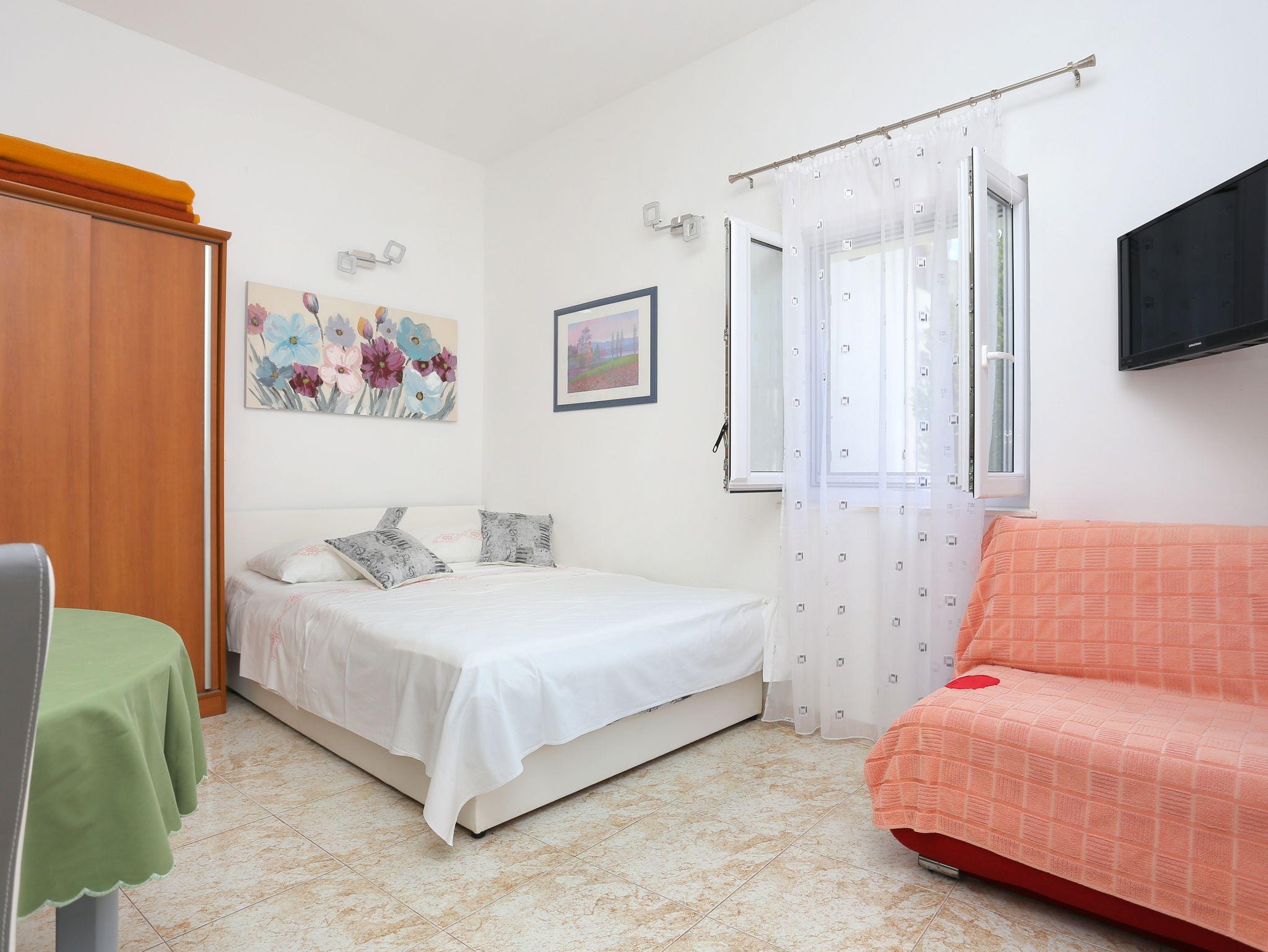 Studio bietet Platz für 2 Gäste. Die Betten sind in Schlafzimmern, die es 1 gibt, innerhalb einer Gesamtfläche von 20m2, angeordnet. Die Gäste haben eine eigene Terrasse zur Verfügung, auf der sie in warmen Sommernächten genießen können. Das Studio-Apartment bietet Meerblick. Es ist erlaubt, Speisen auf dem Gemeinschafts-Grill vorzubereiten. In der Unterkunftseinheit besteht die Möglichkeit des Mitbringens von Haustieren gegen Aufpreis. Unterkunftseinheit hat Räume, die von dem Rest der Einheit abgetrennt werden. IM PREIS INBEGRIFFEN: Kurtaxe, Endreinigung, Parkplatz, Internet, Bügeleisen, Bügelbrett, Föhn. UNVERBINDLICHE ZUSÄTZLICHE KOSTEN: Klimatisierung (5,00 € pro Nacht), Bootsanlegeplatz (10,00 € pro Nacht), Haustiere (6,00 € pro Nacht), Zusatzbett (15,00 € pro Nacht). Die Verfügbarkeit zusätzlicher Dienstleistungen in Ihrem reservierten Termin und die Preise derselben (falls nicht aufgeführt) müssen im Voraus überprüft werden. Zusätzliche Dienstleistungen die in der Zahlungsaufforderung nicht aufgeführt sind werden direkt beim Vermieter bezahlt, angenommen der Gast nutzt auch diese.