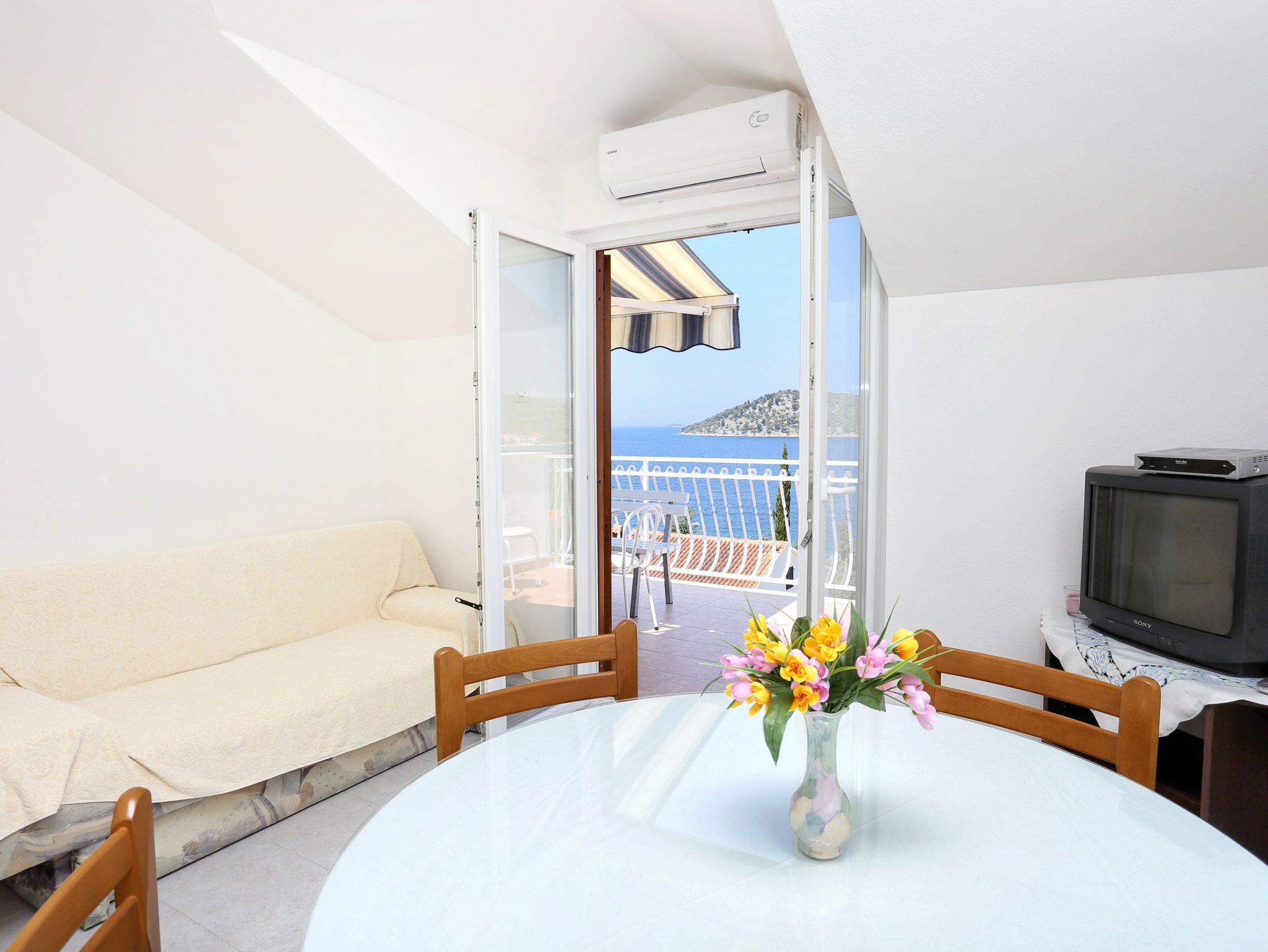 Ferienwohnung bietet Platz für 7 Gäste. Die Betten sind in Schlafzimmern, die es 3 gibt, innerhalb einer Gesamtfläche von 56m2, angeordnet. Die Gäste haben eine eigene Terrasse zur Verfügung, auf der sie in warmen Sommernächten genießen können. Das Apartment bietet Meerblick. Es ist erlaubt, Speisen auf dem Gemeinschafts-Grill vorzubereiten. IM PREIS INBEGRIFFEN: Kurtaxe, Endreinigung, Parkplatz, Internet, Bootsanlegeplatz. VERBINDLICHE ZUSÄTZLICHE KOSTEN: Aufzahlung für Kurzaufenthalte (prozentualer Zuschlag pro Nächtigungsanzahl: 30% - 1, 20% - 2, 10% - 3). UNVERBINDLICHE ZUSÄTZLICHE KOSTEN: Klimatisierung (10,00 € pro Nacht), Wäschewaschen (5,00 € Waschen). Die Verfügbarkeit zusätzlicher Dienstleistungen in Ihrem reservierten Termin und die Preise derselben (falls nicht aufgeführt) müssen im Voraus überprüft werden. Zusätzliche Dienstleistungen die in der Zahlungsaufforderung nicht aufgeführt sind werden direkt beim Vermieter bezahlt, angenommen der Gast nutzt auch diese.