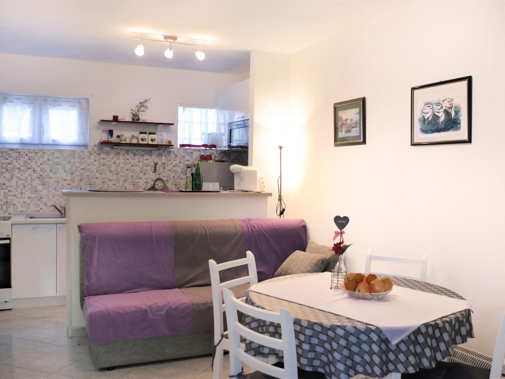 Ferienwohnung bietet Platz für 5 Gäste. Die Betten sind in Schlafzimmern, die es 2 gibt, innerhalb einer Gesamtfläche von 44m2, angeordnet. Die Gäste haben eine eigene Terrasse zur Verfügung, auf der sie in warmen Sommernächten genießen können. Es ist erlaubt, Speisen auf dem Gemeinschafts-Grill vorzubereiten. IM PREIS INBEGRIFFEN: Kurtaxe, Endreinigung, Klimatisierung, Parkplatz, Internet, Kinderbett, Zusatzbett, Bügeleisen, Bügelbrett, Föhn. VERBINDLICHE ZUSÄTZLICHE KOSTEN: Aufzahlung für Kurzaufenthalte (prozentualer Zuschlag pro Nächtigungsanzahl: 30% - 1, 20% - 2, 10% - 3). Die Verfügbarkeit zusätzlicher Dienstleistungen in Ihrem reservierten Termin und die Preise derselben (falls nicht aufgeführt) müssen im Voraus überprüft werden. Zusätzliche Dienstleistungen die in der Zahlungsaufforderung nicht aufgeführt sind werden direkt beim Vermieter bezahlt, angenommen der Gast nutzt auch diese. Ermäßigung auf den Grundpreis: Gratistag 14=13 (bei einem Aufenthalt von 14 Tagen oder mehr erhalten Sie einen Gratistag für den Aufenthalt bis 31.12.26).