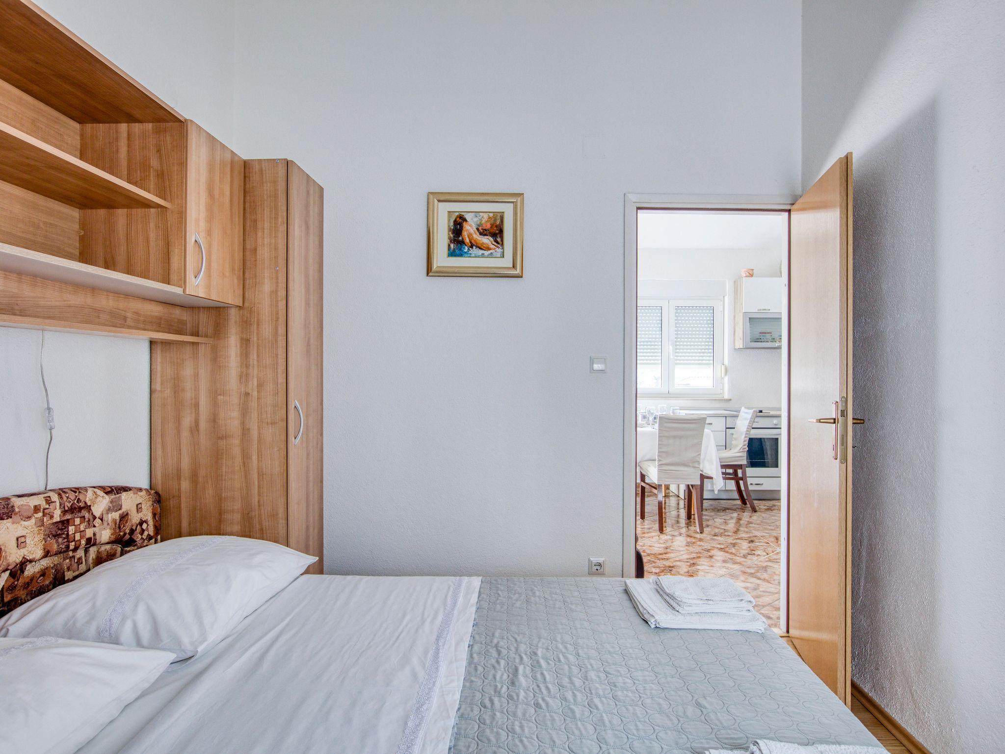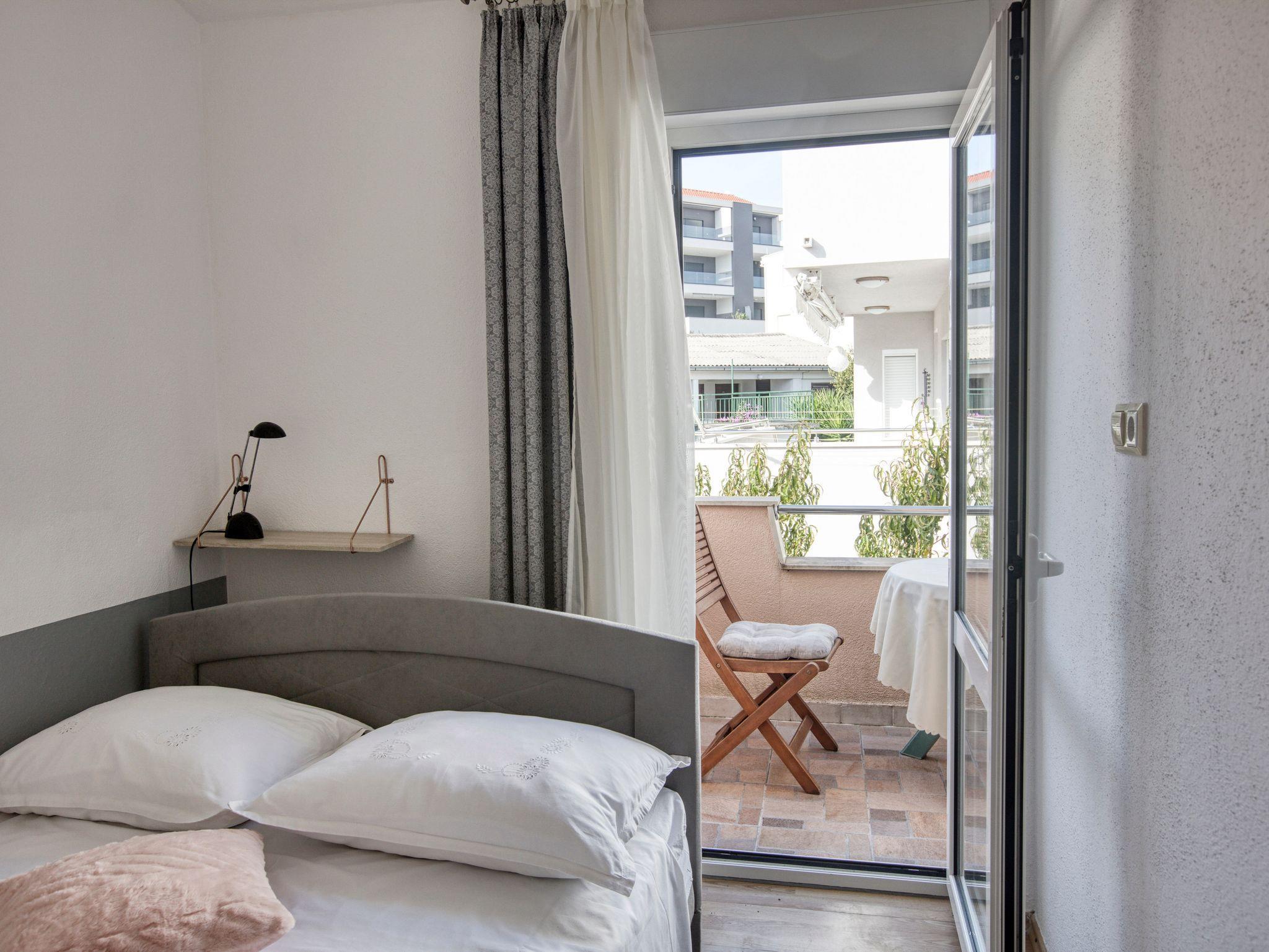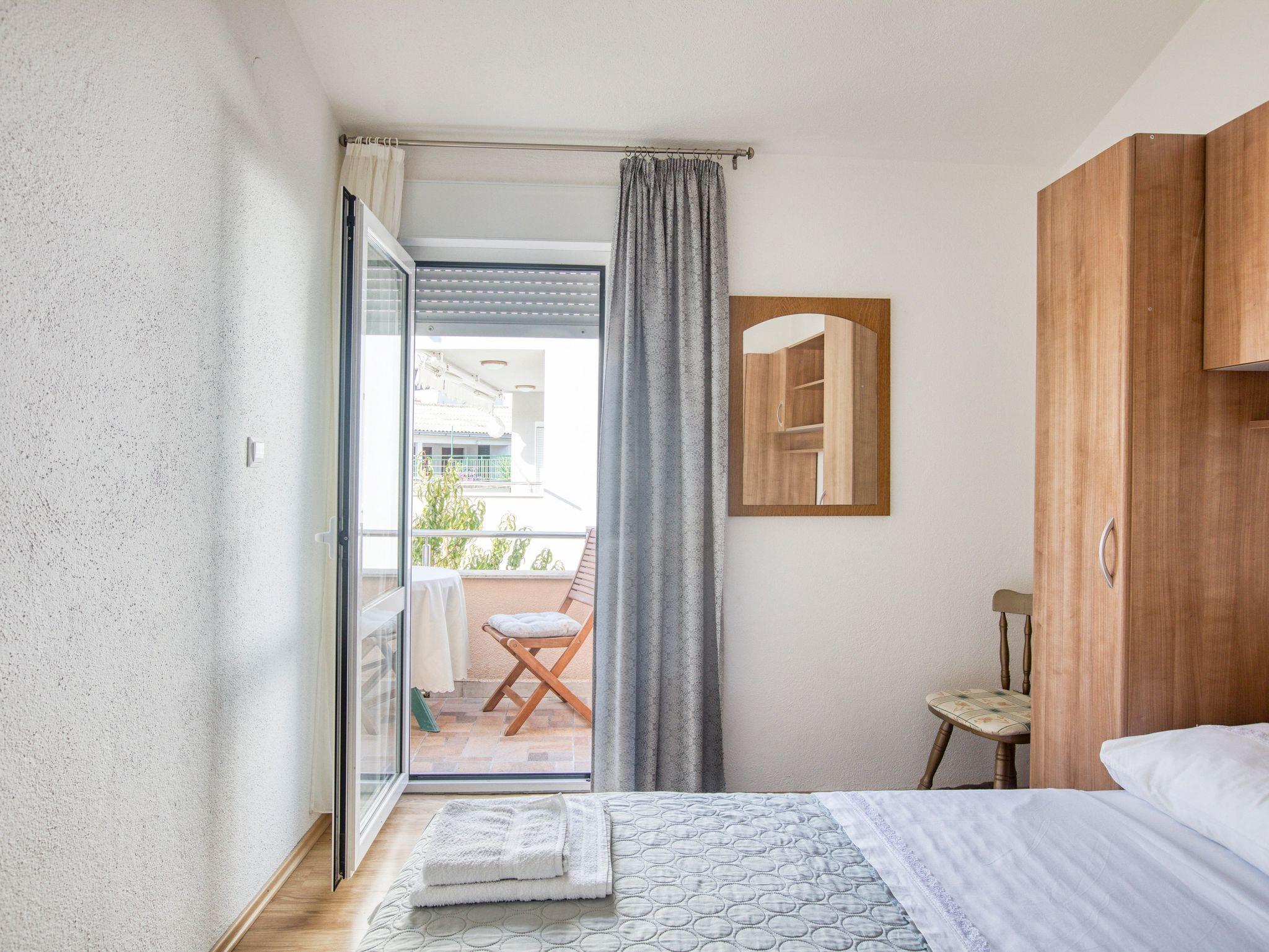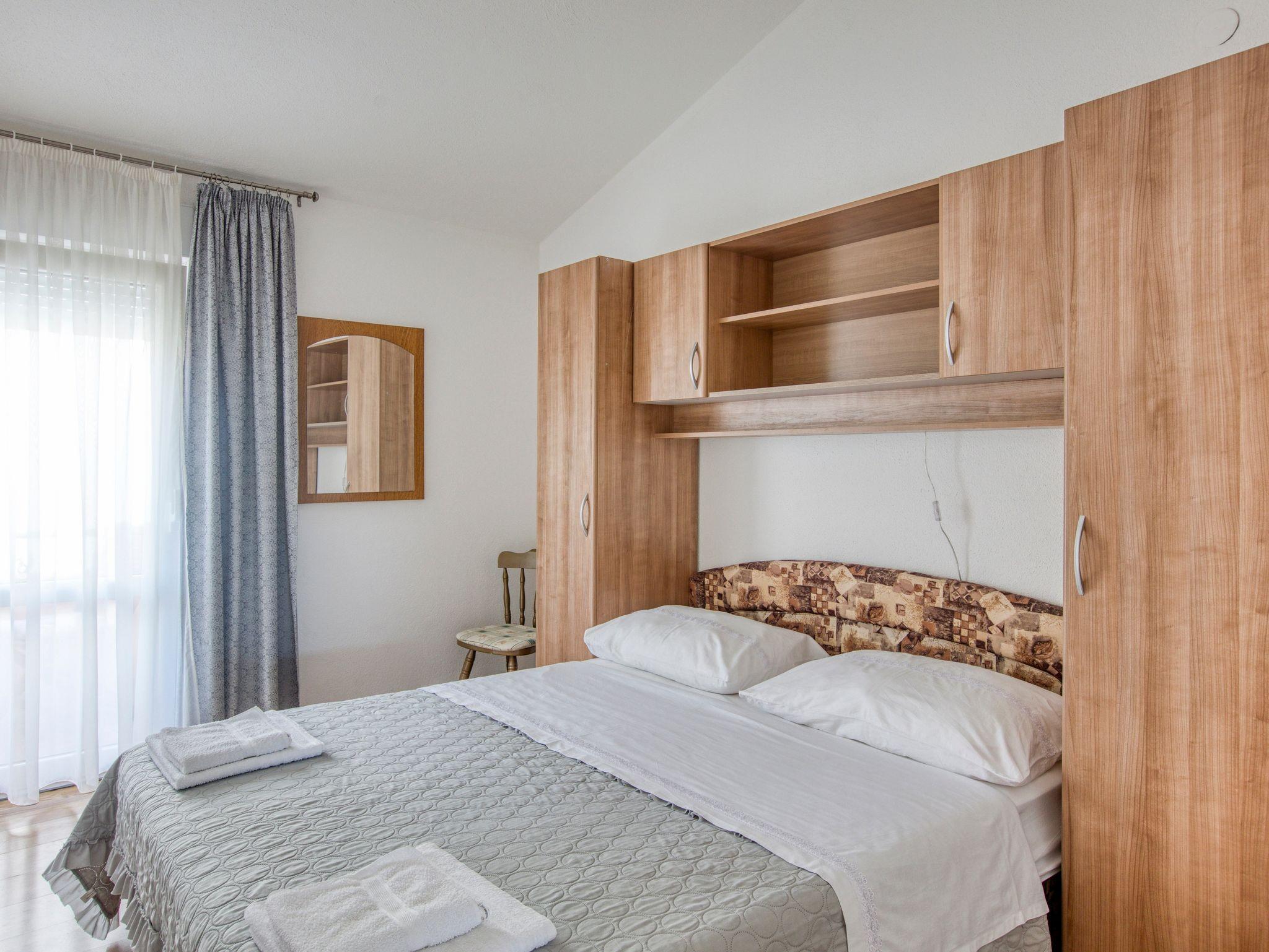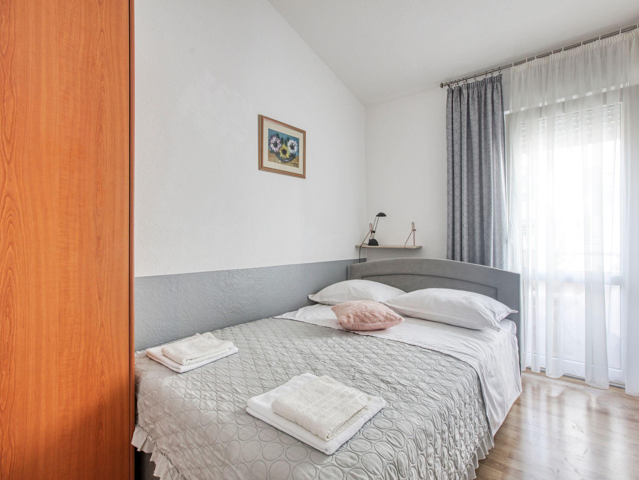 Ferienwohnung bietet Platz für 4 Gäste. Die Betten sind in Schlafzimmern, die es 2 gibt, innerhalb einer Gesamtfläche von 36m2, angeordnet. Die Gäste haben einen eigenen Balkon zur Verfügung, auf der sie in warmen Sommernächten genießen können. Das Apartment bietet Meerblick. Es ist erlaubt, Speisen auf dem Gemeinschafts-Grill vorzubereiten. Die reservierte Unterkunftseinheit verfügt über einen gemeinsame Terrasse. IM PREIS INBEGRIFFEN: Kurtaxe, Endreinigung, Klimatisierung, Parkplatz, Internet, Wäschewaschen, Kinderbett, Bügeleisen, Föhn, Sonnenschirm. VERBINDLICHE ZUSÄTZLICHE KOSTEN: Aufzahlung für Kurzaufenthalte (prozentualer Zuschlag pro Nächtigungsanzahl: 30% - 1, 20% - 2, 10% - 3). Die Verfügbarkeit zusätzlicher Dienstleistungen in Ihrem reservierten Termin und die Preise derselben (falls nicht aufgeführt) müssen im Voraus überprüft werden. Zusätzliche Dienstleistungen die in der Zahlungsaufforderung nicht aufgeführt sind werden direkt beim Vermieter bezahlt, angenommen der Gast nutzt auch diese.