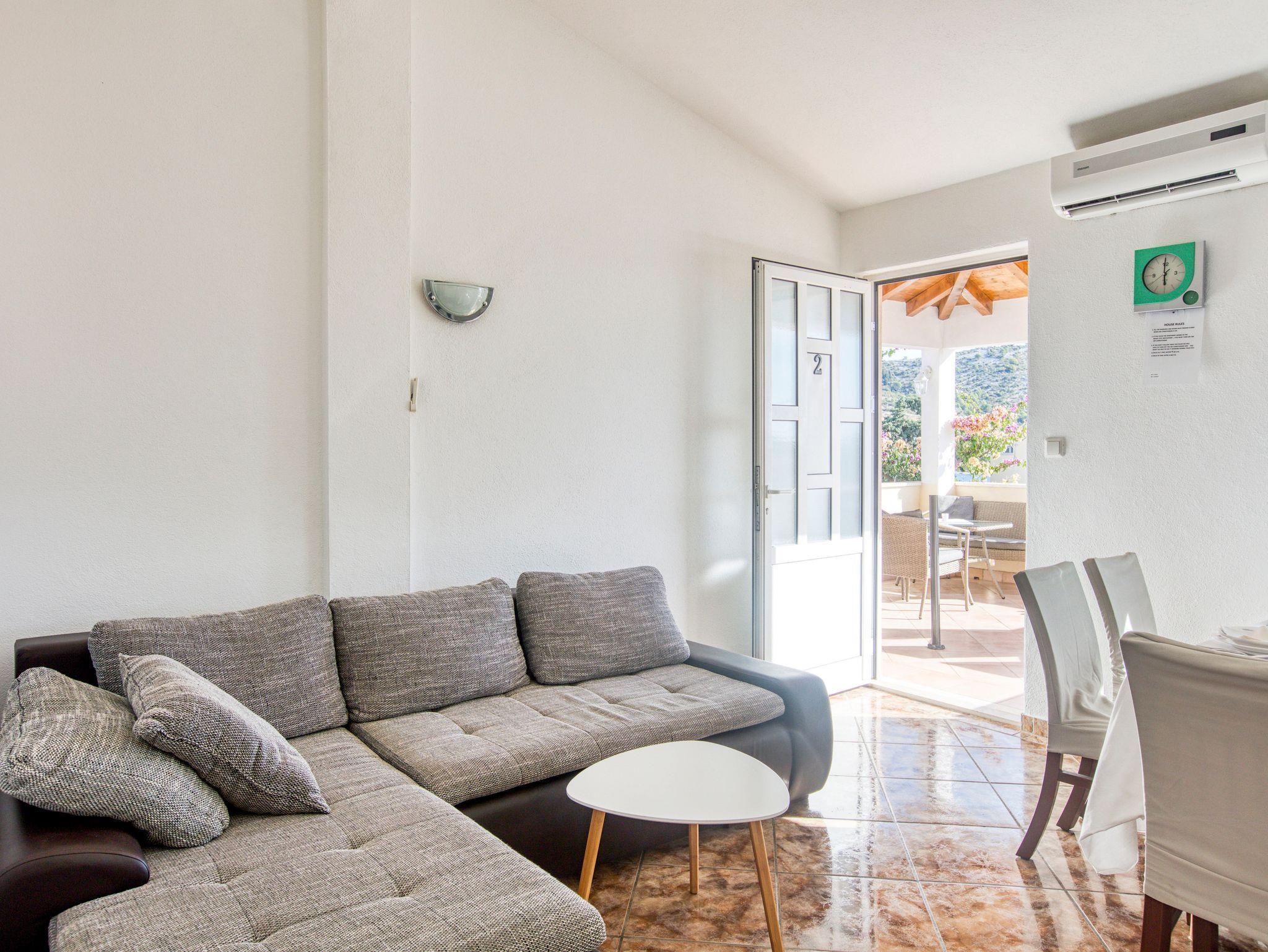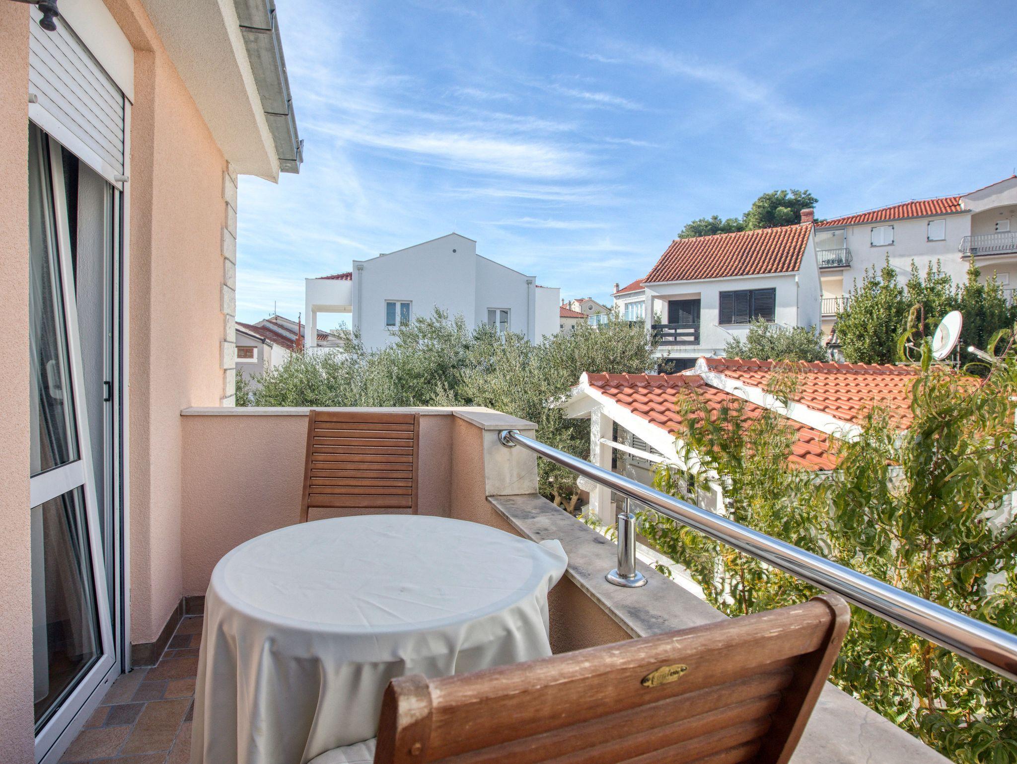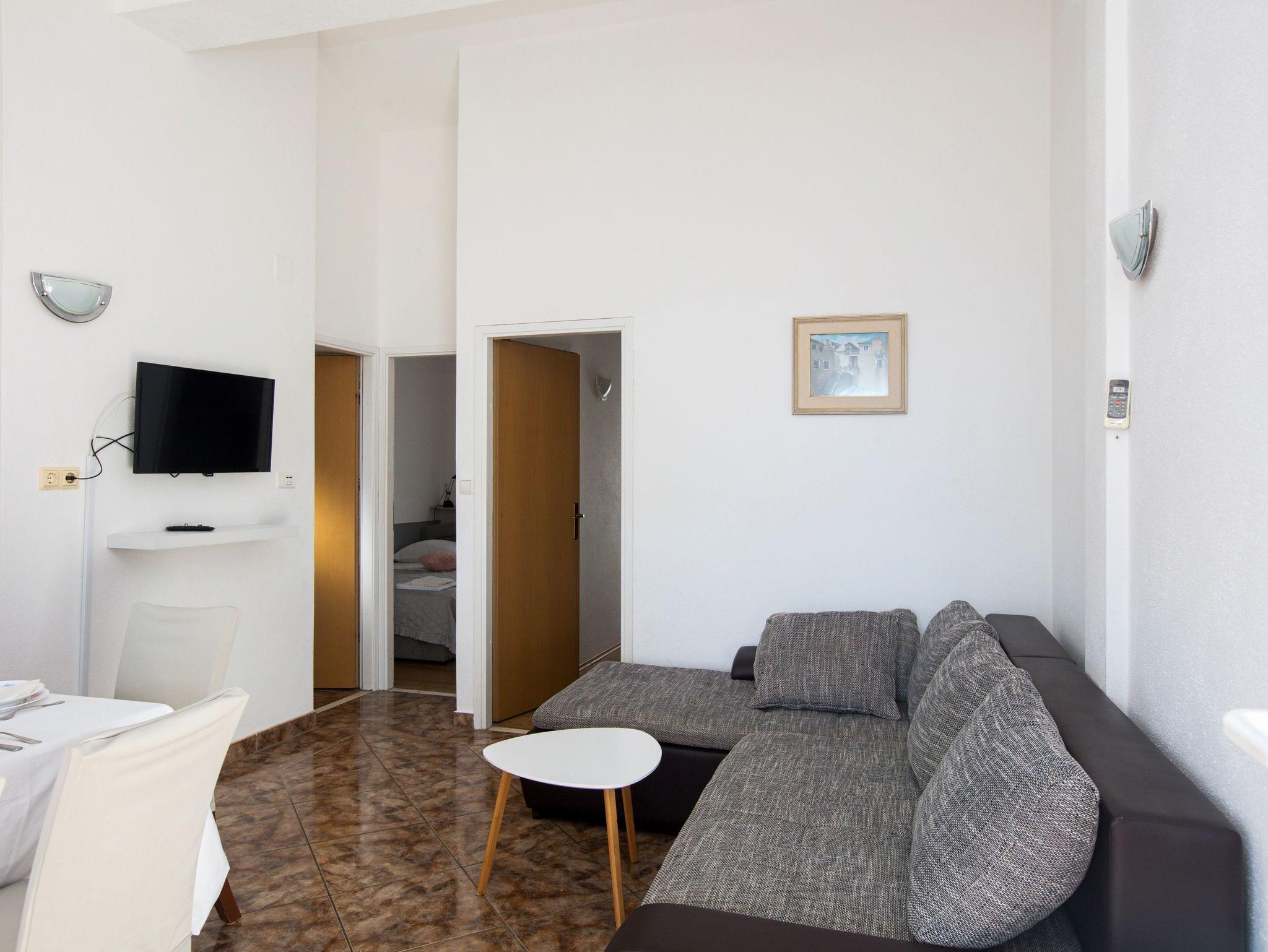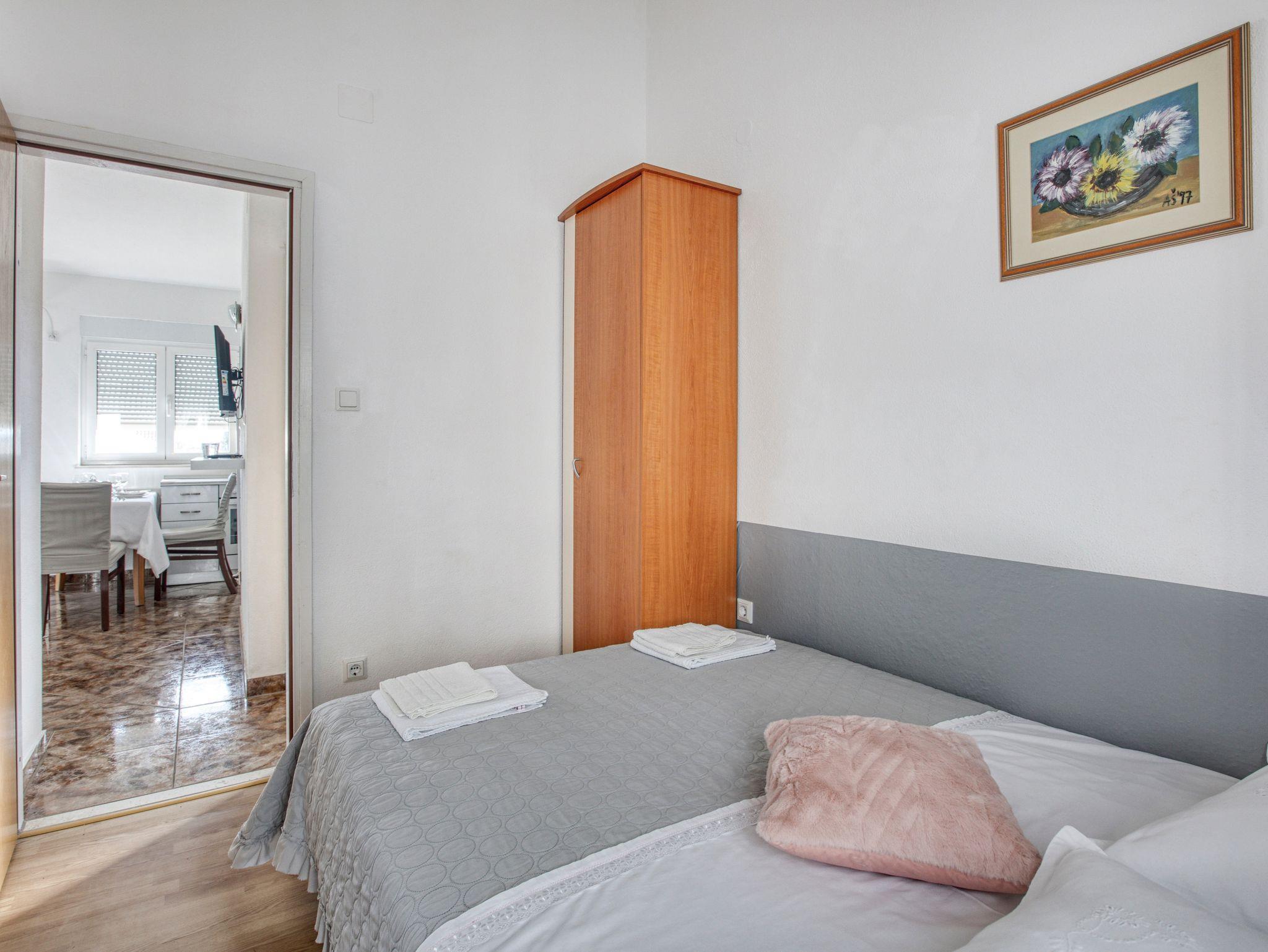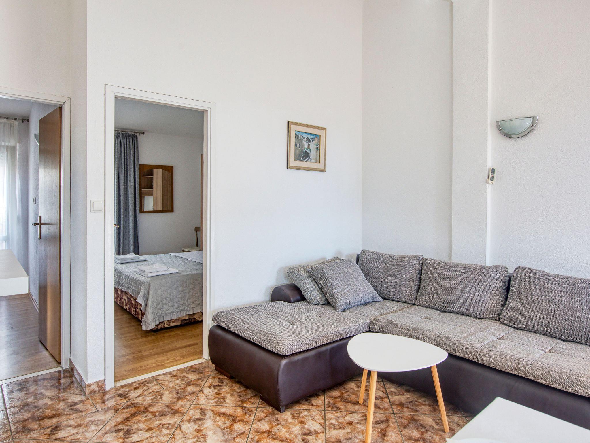 Ferienwohnung bietet Platz für 4 Gäste. Die Betten sind in Schlafzimmern, die es 2 gibt, innerhalb einer Gesamtfläche von 36m2, angeordnet. Die Gäste haben einen eigenen Balkon zur Verfügung, auf der sie in warmen Sommernächten genießen können. Das Apartment bietet Meerblick. Es ist erlaubt, Speisen auf dem Gemeinschafts-Grill vorzubereiten. Die reservierte Unterkunftseinheit verfügt über einen gemeinsame Terrasse. IM PREIS INBEGRIFFEN: Kurtaxe, Endreinigung, Klimatisierung, Parkplatz, Internet, Wäschewaschen, Kinderbett, Bügeleisen, Föhn, Sonnenschirm. VERBINDLICHE ZUSÄTZLICHE KOSTEN: Aufzahlung für Kurzaufenthalte (prozentualer Zuschlag pro Nächtigungsanzahl: 30% - 1, 20% - 2, 10% - 3). Die Verfügbarkeit zusätzlicher Dienstleistungen in Ihrem reservierten Termin und die Preise derselben (falls nicht aufgeführt) müssen im Voraus überprüft werden. Zusätzliche Dienstleistungen die in der Zahlungsaufforderung nicht aufgeführt sind werden direkt beim Vermieter bezahlt, angenommen der Gast nutzt auch diese.