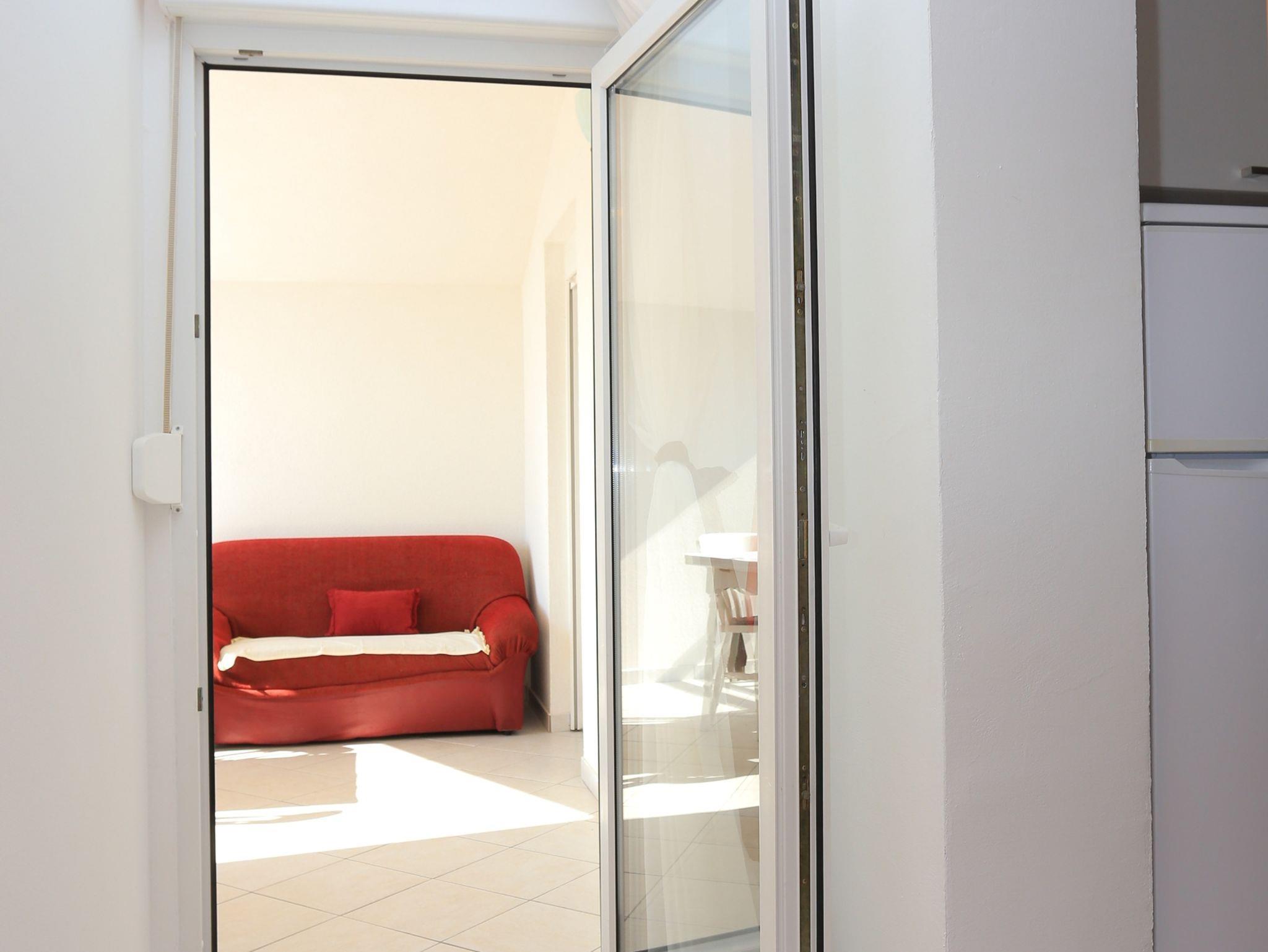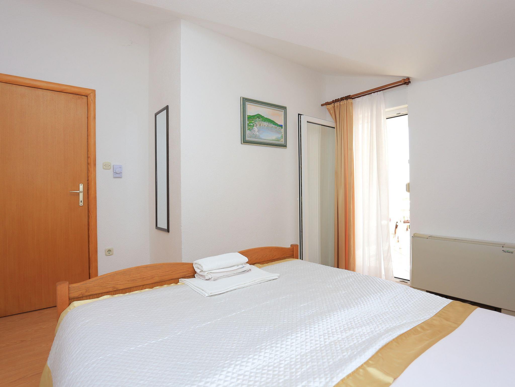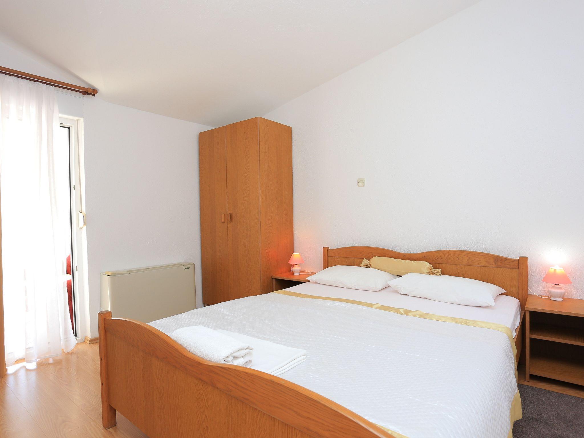 Ferienwohnung bietet Platz für 5 Gäste. Die Betten sind in Schlafzimmern, die es 2 gibt, innerhalb einer Gesamtfläche von 36m2, angeordnet. Die Gäste haben eine eigene Terrasse zur Verfügung, auf der sie in warmen Sommernächten genießen können. Das Apartment bietet Meerblick. Es ist erlaubt, Speisen auf dem Gemeinschafts-Grill vorzubereiten. IM PREIS INBEGRIFFEN: Kurtaxe, Endreinigung, Klimatisierung, Parkplatz, Internet, Kinderbett, Bügeleisen, Bügelbrett. VERBINDLICHE ZUSÄTZLICHE KOSTEN: Aufzahlung für Kurzaufenthalte (prozentualer Zuschlag pro Nächtigungsanzahl: 30% - 1, 20% - 2, 10% - 3). UNVERBINDLICHE ZUSÄTZLICHE KOSTEN: Wäschewaschen (1,00 € Waschen). Die Verfügbarkeit zusätzlicher Dienstleistungen in Ihrem reservierten Termin und die Preise derselben (falls nicht aufgeführt) müssen im Voraus überprüft werden. Zusätzliche Dienstleistungen die in der Zahlungsaufforderung nicht aufgeführt sind werden direkt beim Vermieter bezahlt, angenommen der Gast nutzt auch diese.