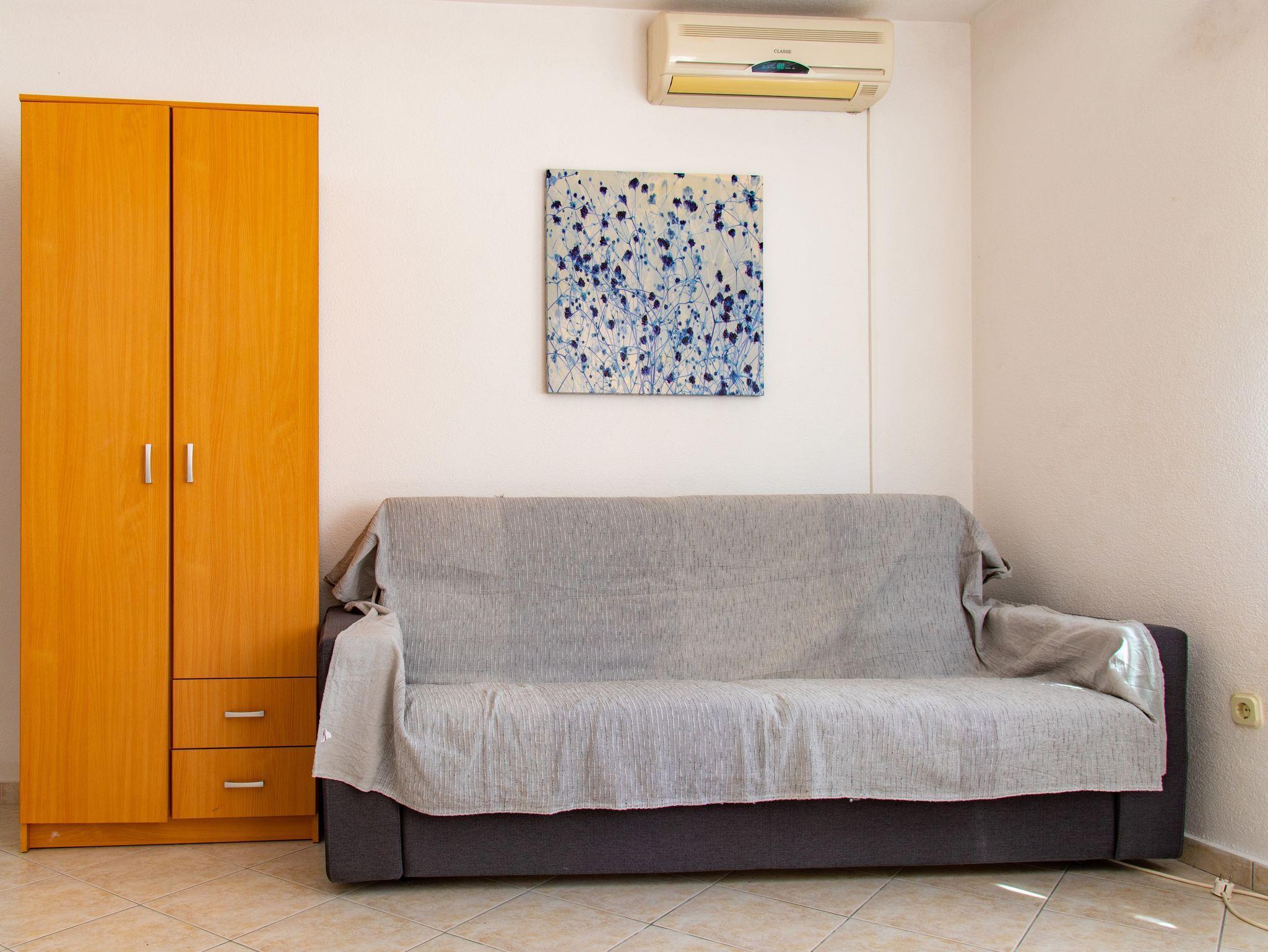 Ferienwohnung bietet Platz für 3 Gäste. Die Betten sind in Schlafzimmern, die es 1 gibt, und in Esszimmer, innerhalb einer Gesamtfläche von 31m2, angeordnet. Die Gäste haben eine eigene Terrasse zur Verfügung, auf der sie in warmen Sommernächten genießen können. Das Apartment bietet Meerblick. Es ist erlaubt, Speisen auf dem Gemeinschafts-Grill vorzubereiten. Unterkunftseinheit hat Räume, die von dem Rest der Einheit abgetrennt werden. IM PREIS INBEGRIFFEN: Kurtaxe, Endreinigung, Parkplatz, Internet, Föhn, Sonnenschirm. VERBINDLICHE ZUSÄTZLICHE KOSTEN: Aufzahlung für Kurzaufenthalte (prozentualer Zuschlag pro Nächtigungsanzahl: 30% - 1, 20% - 2, 10% - 3). UNVERBINDLICHE ZUSÄTZLICHE KOSTEN: Klimatisierung (10,00 € pro Nacht), Zusatzbett (20,00 € pro Nacht). Die Verfügbarkeit zusätzlicher Dienstleistungen in Ihrem reservierten Termin und die Preise derselben (falls nicht aufgeführt) müssen im Voraus überprüft werden. Zusätzliche Dienstleistungen die in der Zahlungsaufforderung nicht aufgeführt sind werden direkt beim Vermieter bezahlt, angenommen der Gast nutzt auch diese.