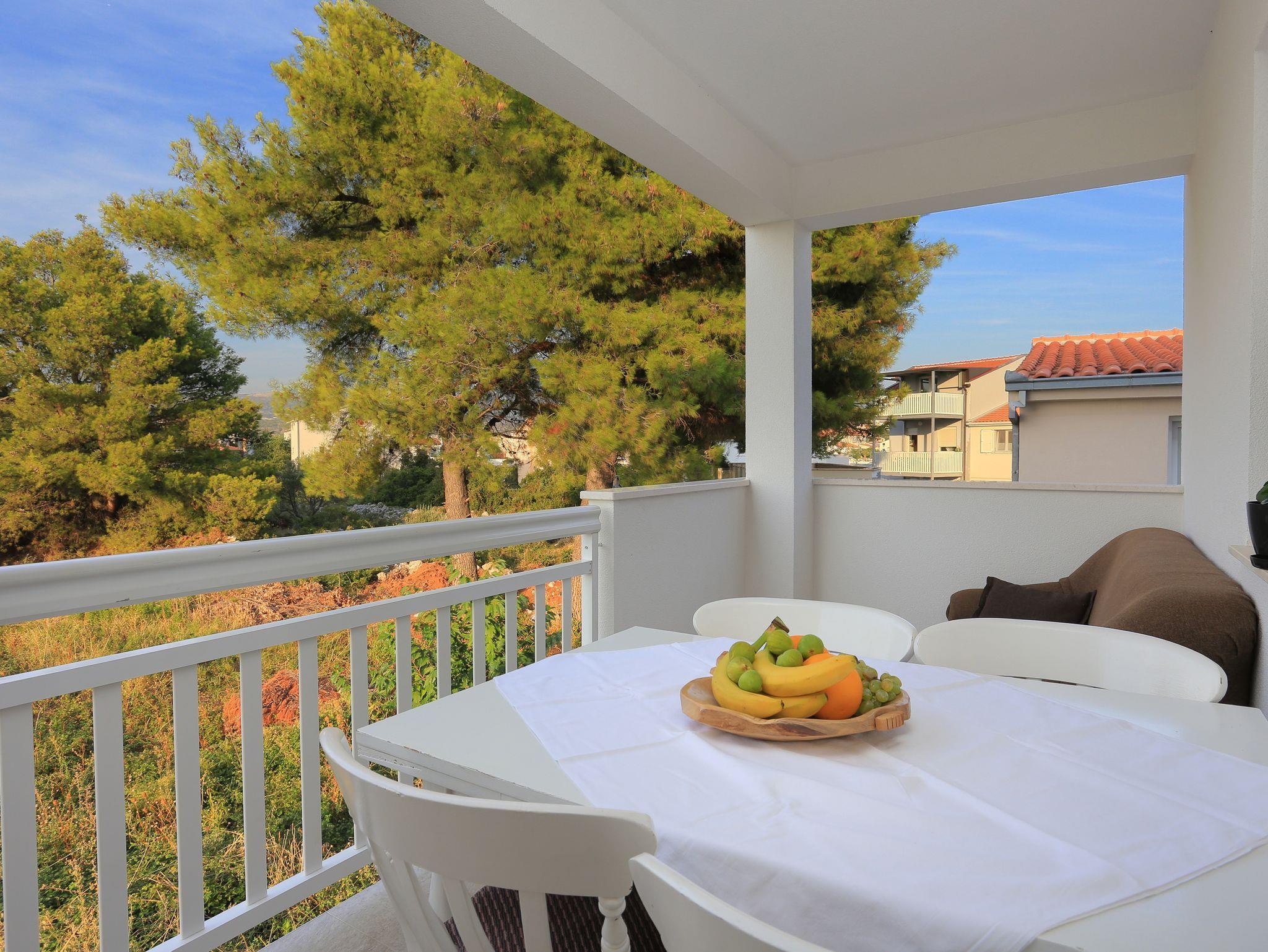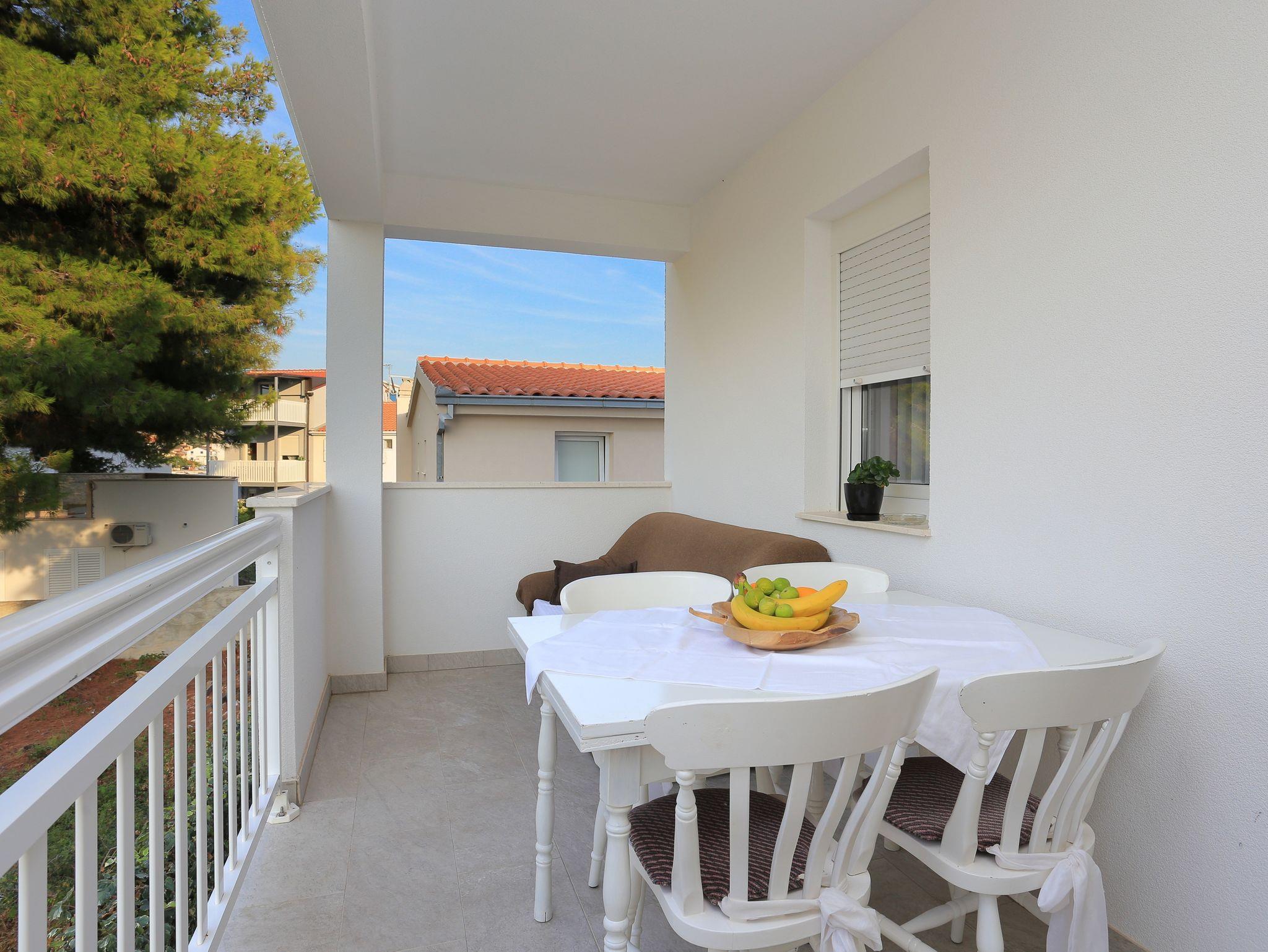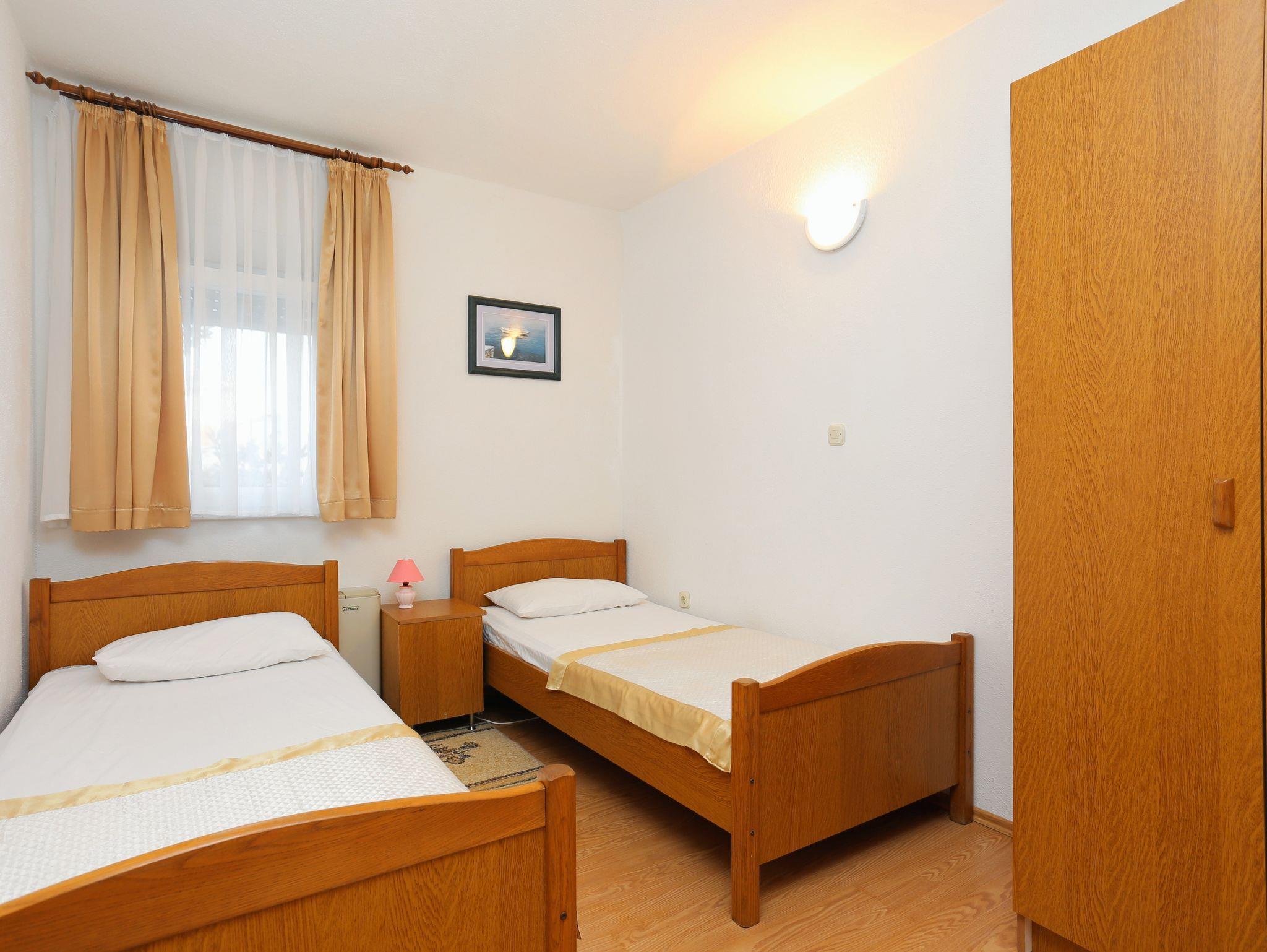 Ferienwohnung bietet Platz für 6 Gäste. Die Betten sind in Schlafzimmern, die es 2 gibt, und in Esszimmer, innerhalb einer Gesamtfläche von 45m2, angeordnet. Die Gäste haben eine eigene Terrasse zur Verfügung, auf der sie in warmen Sommernächten genießen können. Das Apartment bietet Meerblick. Es ist erlaubt, Speisen auf dem Gemeinschafts-Grill vorzubereiten. IM PREIS INBEGRIFFEN: Kurtaxe, Endreinigung, Klimatisierung, Parkplatz, Internet, Kinderbett, Bügeleisen, Bügelbrett. VERBINDLICHE ZUSÄTZLICHE KOSTEN: Aufzahlung für Kurzaufenthalte (prozentualer Zuschlag pro Nächtigungsanzahl: 30% - 1, 20% - 2, 10% - 3). UNVERBINDLICHE ZUSÄTZLICHE KOSTEN: Wäschewaschen (1,00 € Waschen). Die Verfügbarkeit zusätzlicher Dienstleistungen in Ihrem reservierten Termin und die Preise derselben (falls nicht aufgeführt) müssen im Voraus überprüft werden. Zusätzliche Dienstleistungen die in der Zahlungsaufforderung nicht aufgeführt sind werden direkt beim Vermieter bezahlt, angenommen der Gast nutzt auch diese.