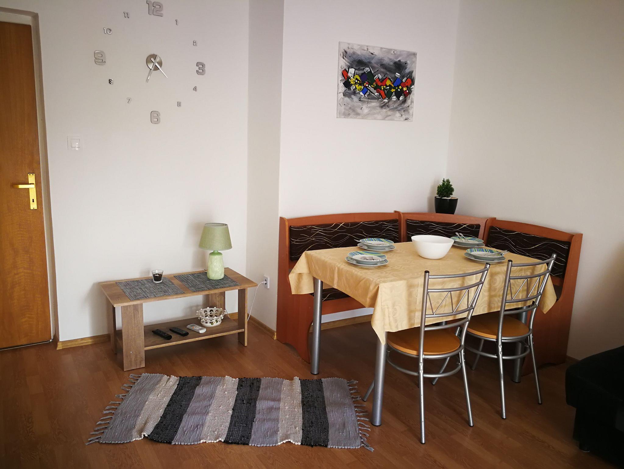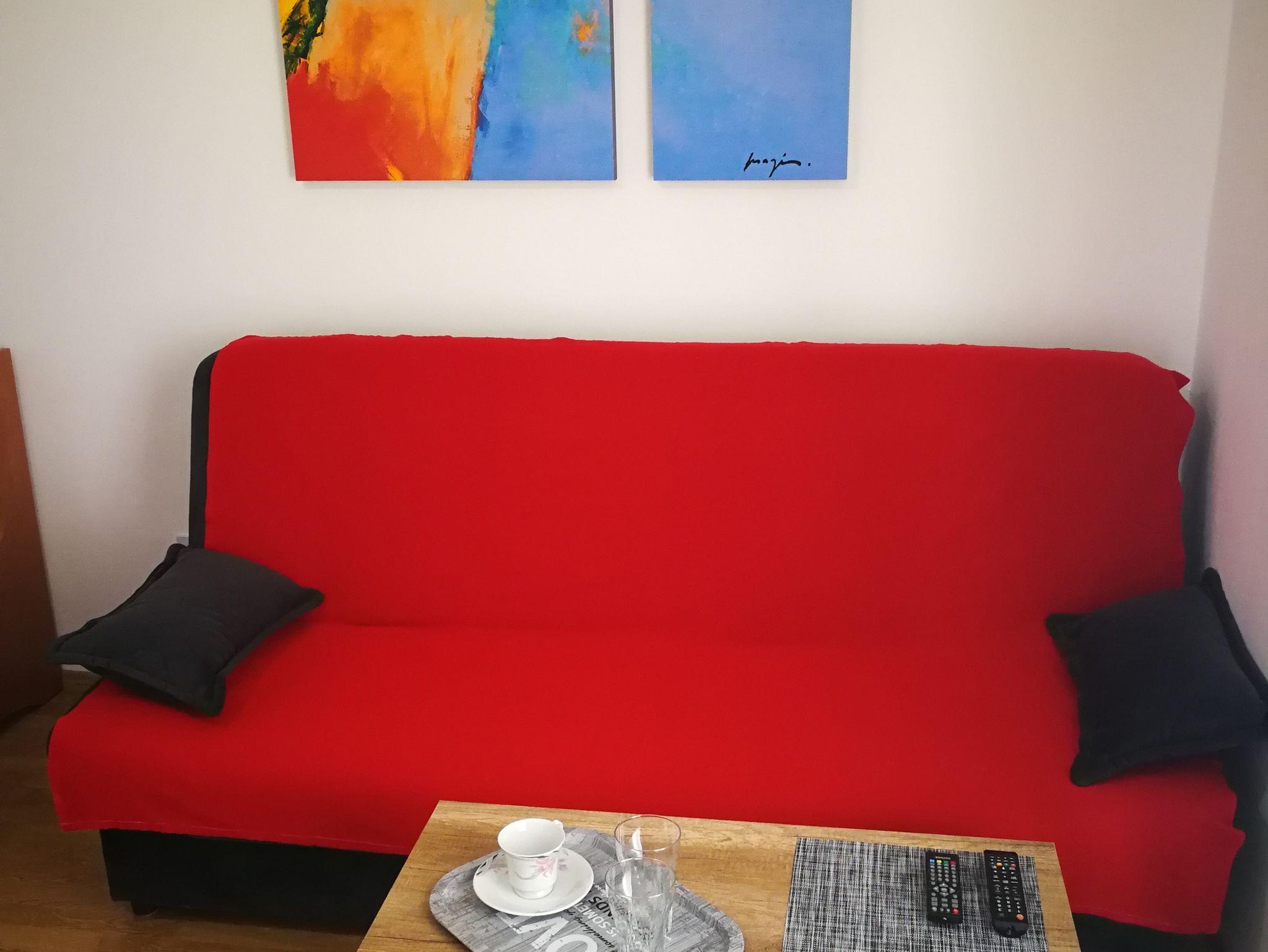Ferienwohnung bietet Platz für 5 Gäste. Die Betten sind in Schlafzimmern, die es 2 gibt, und in Wohnzimmer, innerhalb einer Gesamtfläche von 50m2, angeordnet. Die Gäste haben eine eigene Terrasse zur Verfügung, auf der sie in warmen Sommernächten genießen können. Das Apartment bietet Meerblick. Es ist erlaubt, Speisen auf dem Gemeinschafts-Grill vorzubereiten. IM PREIS INBEGRIFFEN: Kurtaxe, Endreinigung, Klimatisierung, Parkplatz, Internet, Kinderbett, Bügeleisen, Bügelbrett, Föhn. VERBINDLICHE ZUSÄTZLICHE KOSTEN: Aufzahlung für Kurzaufenthalte (prozentualer Zuschlag pro Nächtigungsanzahl: 30% - 1, 20% - 2, 10% - 3). Die Verfügbarkeit zusätzlicher Dienstleistungen in Ihrem reservierten Termin und die Preise derselben (falls nicht aufgeführt) müssen im Voraus überprüft werden. Zusätzliche Dienstleistungen die in der Zahlungsaufforderung nicht aufgeführt sind werden direkt beim Vermieter bezahlt, angenommen der Gast nutzt auch diese. Ermäßigung auf den Grundpreis: Gratistag 14=13 (bei einem Aufenthalt von 14 Tagen oder mehr erhalten Sie einen Gratistag für den Aufenthalt bis 31.12.26).
