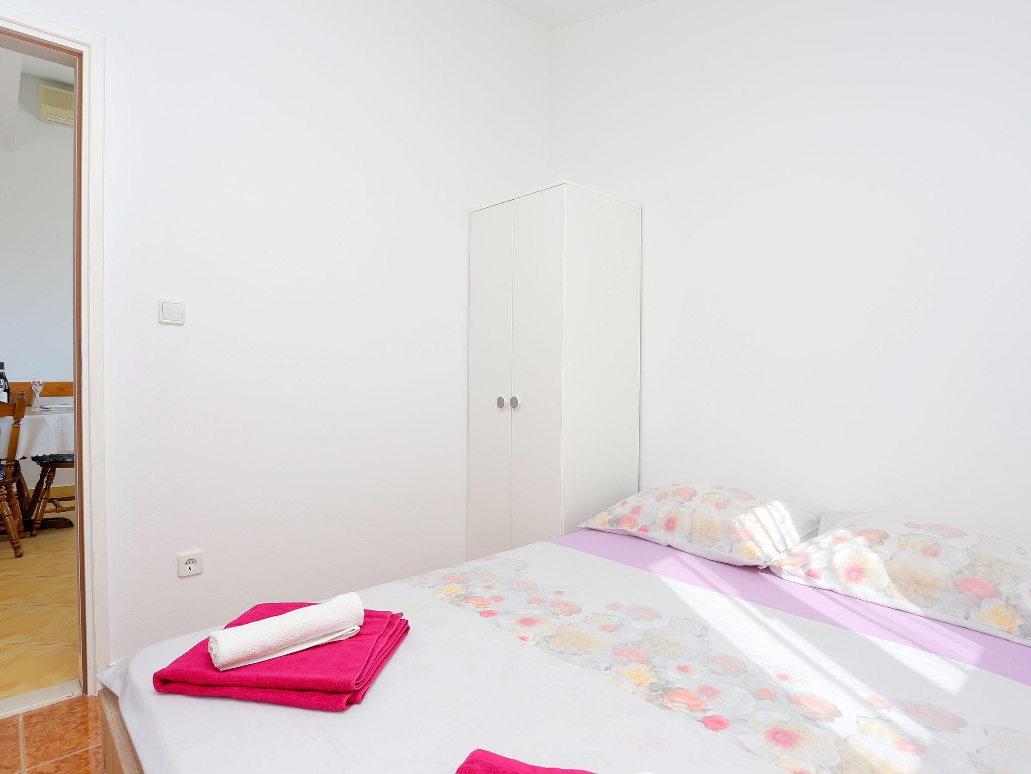 Ferienwohnung bietet Platz für 5 Gäste. Die Betten sind in Schlafzimmern, die es 2 gibt, und in Wohnzimmer, innerhalb einer Gesamtfläche von 36m2, angeordnet. Die Gäste haben eine eigene Terrasse zur Verfügung, auf der sie in warmen Sommernächten genießen können. Das Apartment bietet Meerblick. Es ist erlaubt, Speisen auf dem Gemeinschafts-Grill vorzubereiten. IM PREIS INBEGRIFFEN: Kurtaxe, Endreinigung, Klimatisierung, Parkplatz, Internet, Kinderbett, Bügeleisen, Föhn. VERBINDLICHE ZUSÄTZLICHE KOSTEN: Aufzahlung für Kurzaufenthalte (prozentualer Zuschlag pro Nächtigungsanzahl: 30% - 1, 20% - 2, 10% - 3). UNVERBINDLICHE ZUSÄTZLICHE KOSTEN: Wäschewaschen (5,00 € Waschen). Die Verfügbarkeit zusätzlicher Dienstleistungen in Ihrem reservierten Termin und die Preise derselben (falls nicht aufgeführt) müssen im Voraus überprüft werden. Zusätzliche Dienstleistungen die in der Zahlungsaufforderung nicht aufgeführt sind werden direkt beim Vermieter bezahlt, angenommen der Gast nutzt auch diese. Ermäßigung auf den Grundpreis: Gratistag 21=19 (bei einem Aufenthalt von 21 Tagen oder mehr erhalten Sie 2 Gratistage für den Aufenthalt bis 31.12.26).