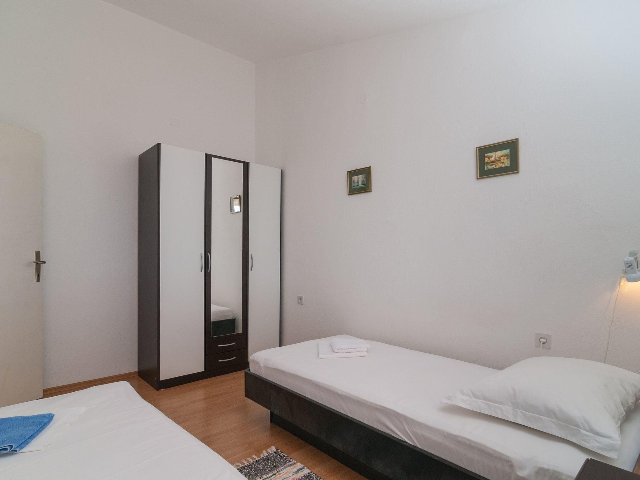 Ferienwohnung bietet Platz für 4 Gäste. Die Betten sind in Schlafzimmern, die es 2 gibt, innerhalb einer Gesamtfläche von 44m2, angeordnet. Die Gäste haben eine eigene Terrasse zur Verfügung, auf der sie in warmen Sommernächten genießen können. Das Apartment bietet Meerblick. Es ist erlaubt, Speisen auf dem Gemeinschafts-Grill vorzubereiten. In der Unterkunftseinheit besteht die Möglichkeit des Mitbringens von Haustieren gegen Aufpreis. IM PREIS INBEGRIFFEN: Kurtaxe, Endreinigung, Parkplatz, Internet, Bootsanlegeplatz, Kinderbett, Bügeleisen, Bügelbrett, Föhn. UNVERBINDLICHE ZUSÄTZLICHE KOSTEN: Klimatisierung (5,00 € pro Nacht), Wäschewaschen (5,00 € Waschen), Haustiere (5,00 € pro Nacht). Die Verfügbarkeit zusätzlicher Dienstleistungen in Ihrem reservierten Termin und die Preise derselben (falls nicht aufgeführt) müssen im Voraus überprüft werden. Zusätzliche Dienstleistungen die in der Zahlungsaufforderung nicht aufgeführt sind werden direkt beim Vermieter bezahlt, angenommen der Gast nutzt auch diese. Ermäßigung auf den Grundpreis: Gratistag 14=13 (bei einem Aufenthalt von 14 Tagen oder mehr erhalten Sie einen Gratistag für den Aufenthalt bis 31.12.26).